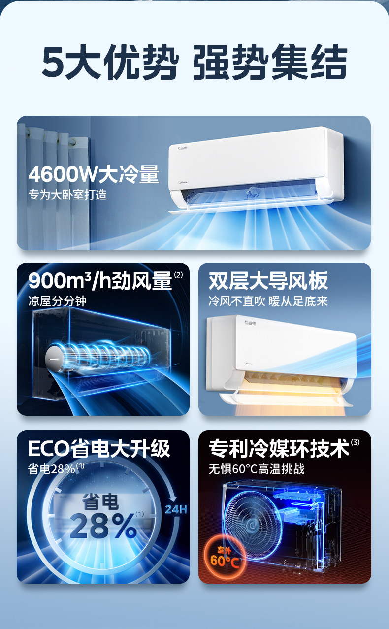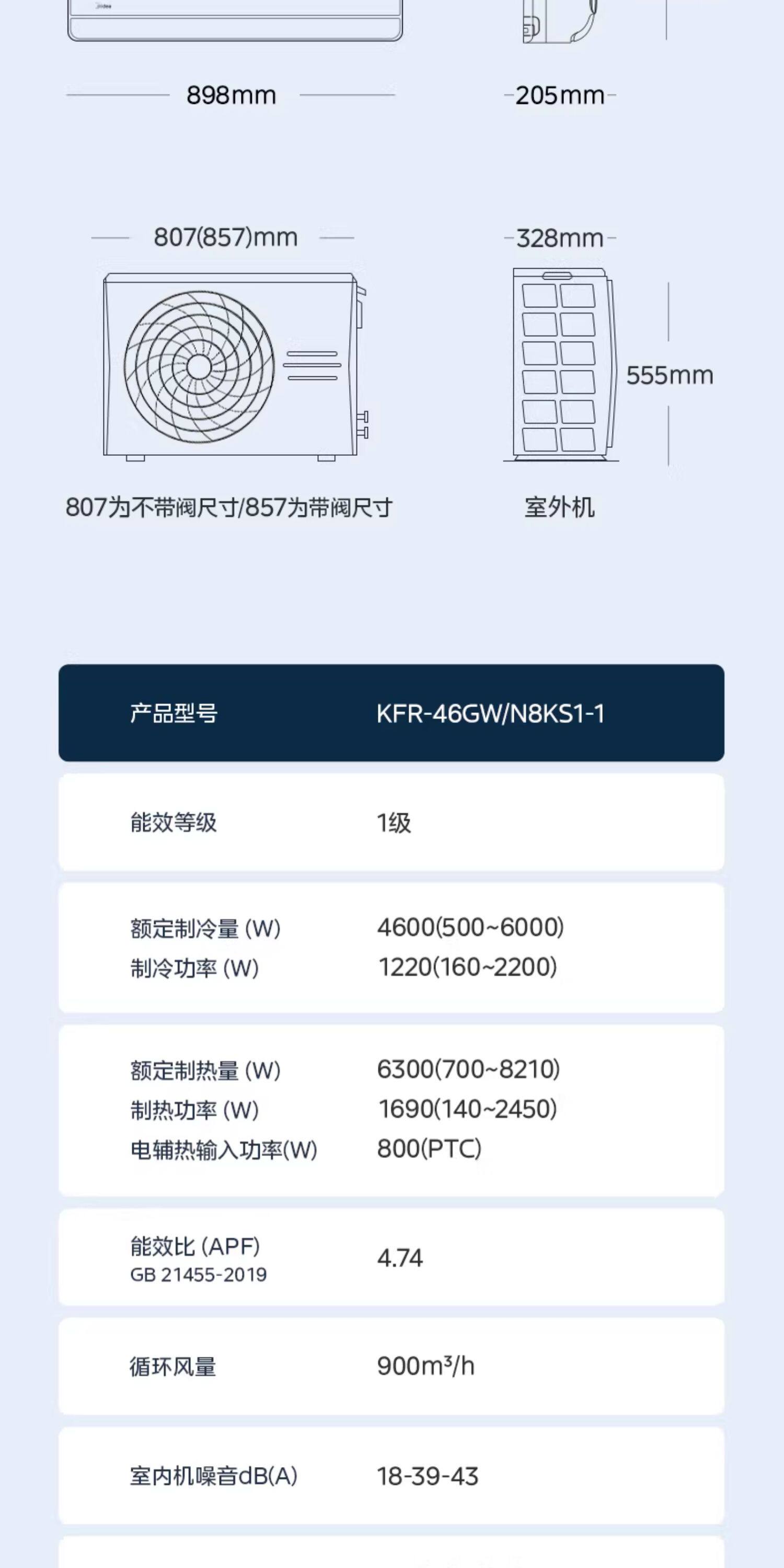 美的空调挂机2匹一级变频冷暖家用大风量酷省电KFR-46GW/N8KS1-1