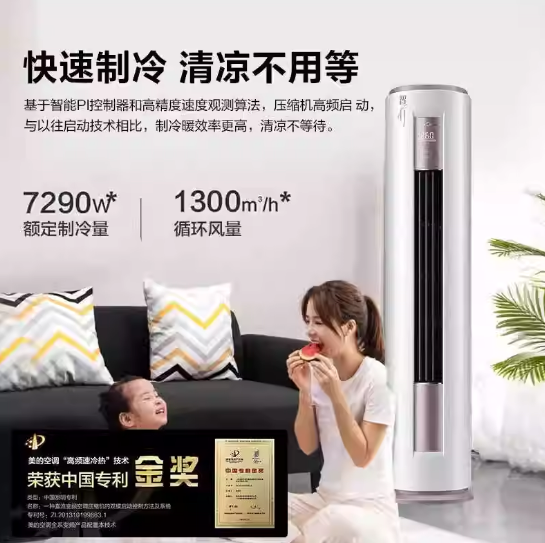 美的智行一级变频大3匹立式柜机空调KFR-72LW/BDN8Y-YH200(1)A