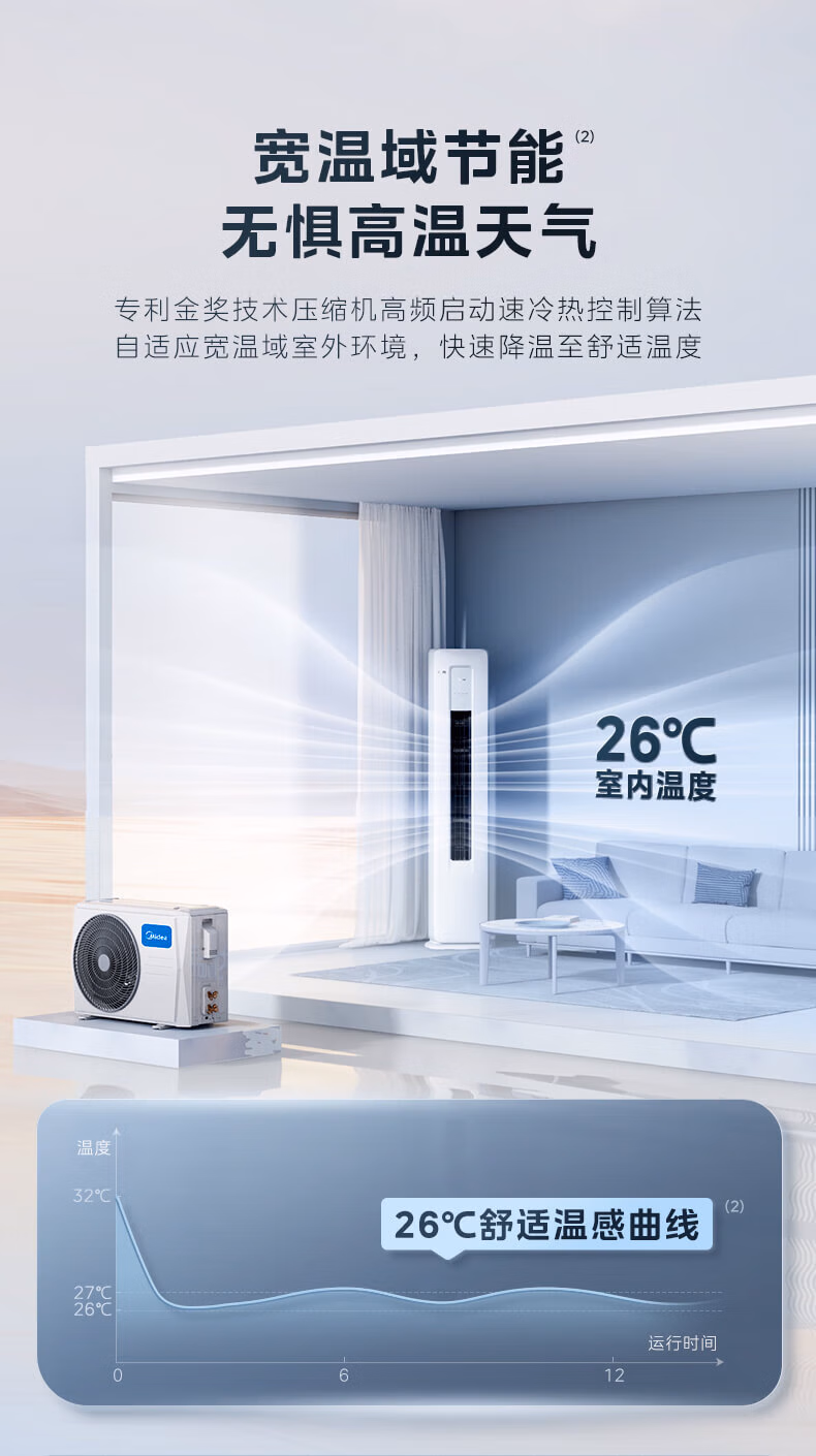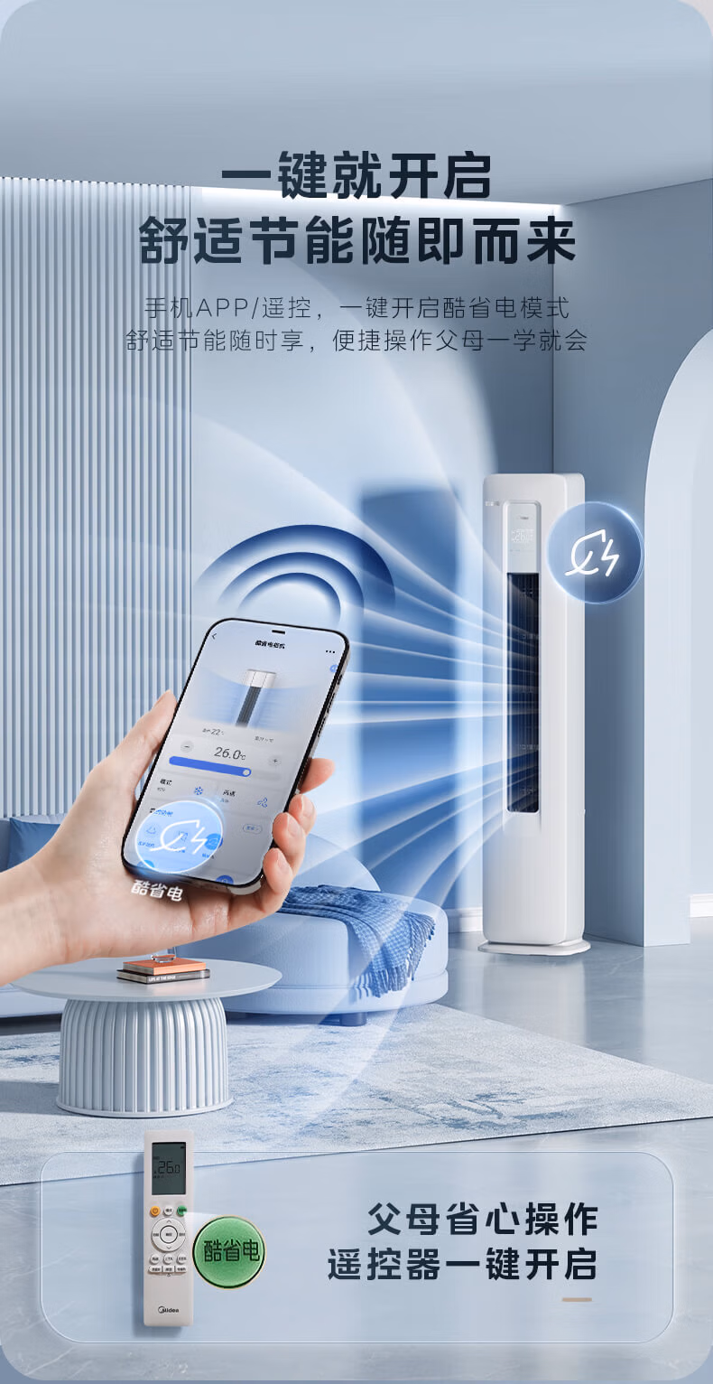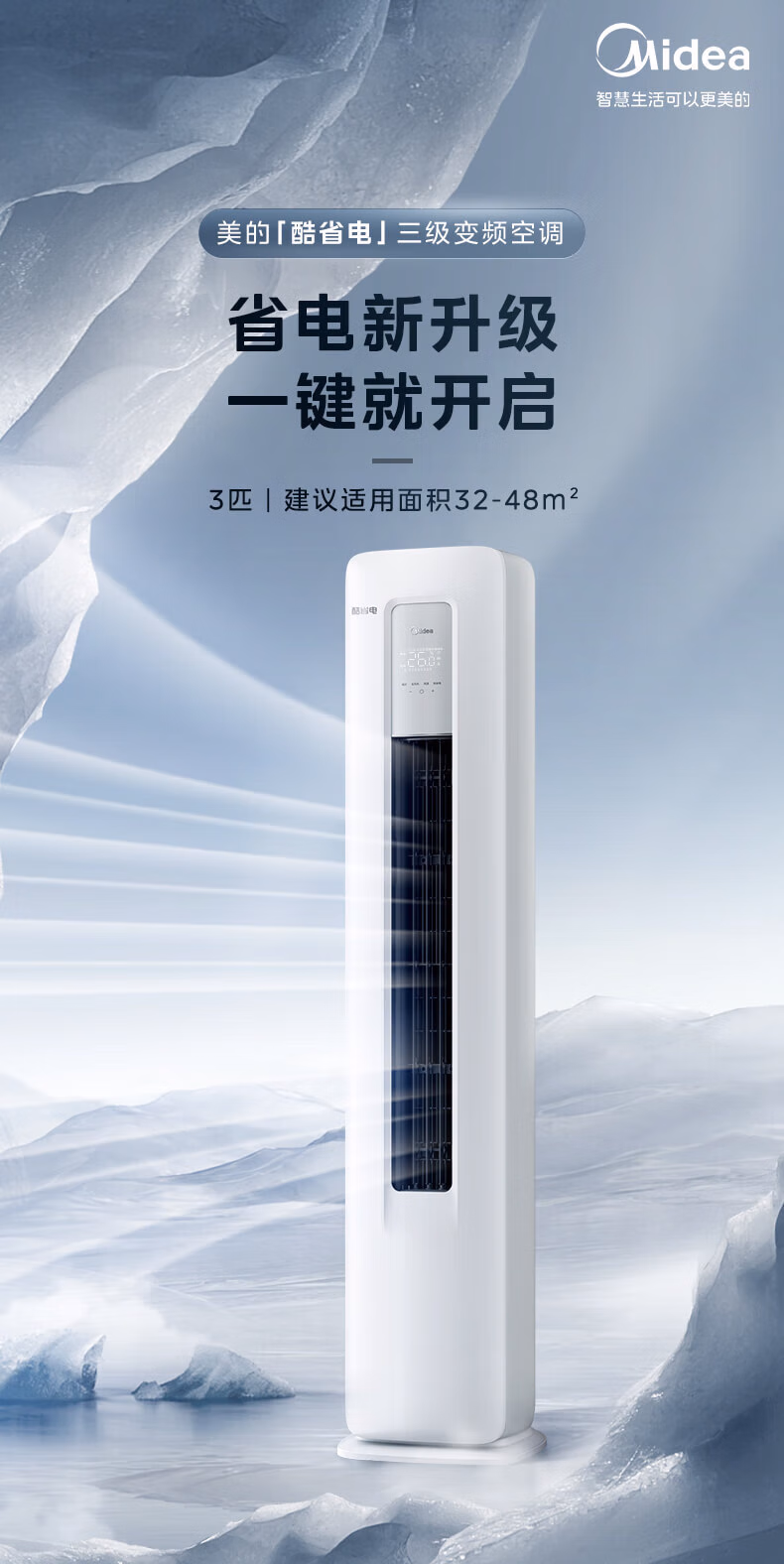 美的(Midea)空调酷省电柜机立柜式 新能效变频冷两用落地空调大风量51客圆柱线下同款以旧换新 大2匹 三级能效 51LW/N8KS1-3P