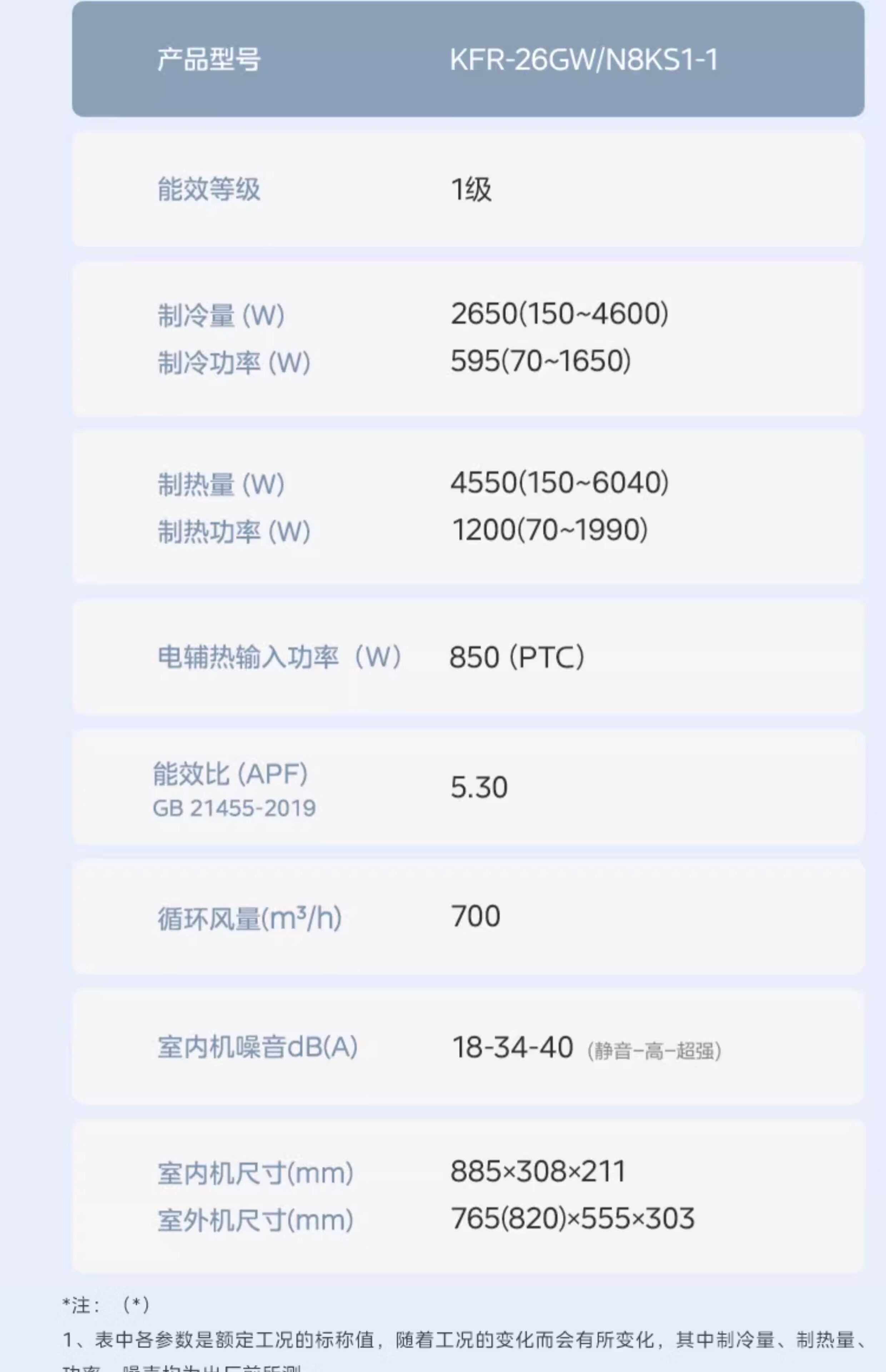 美的酷省电大1匹挂机KFR-26GW/N8KS1-1
