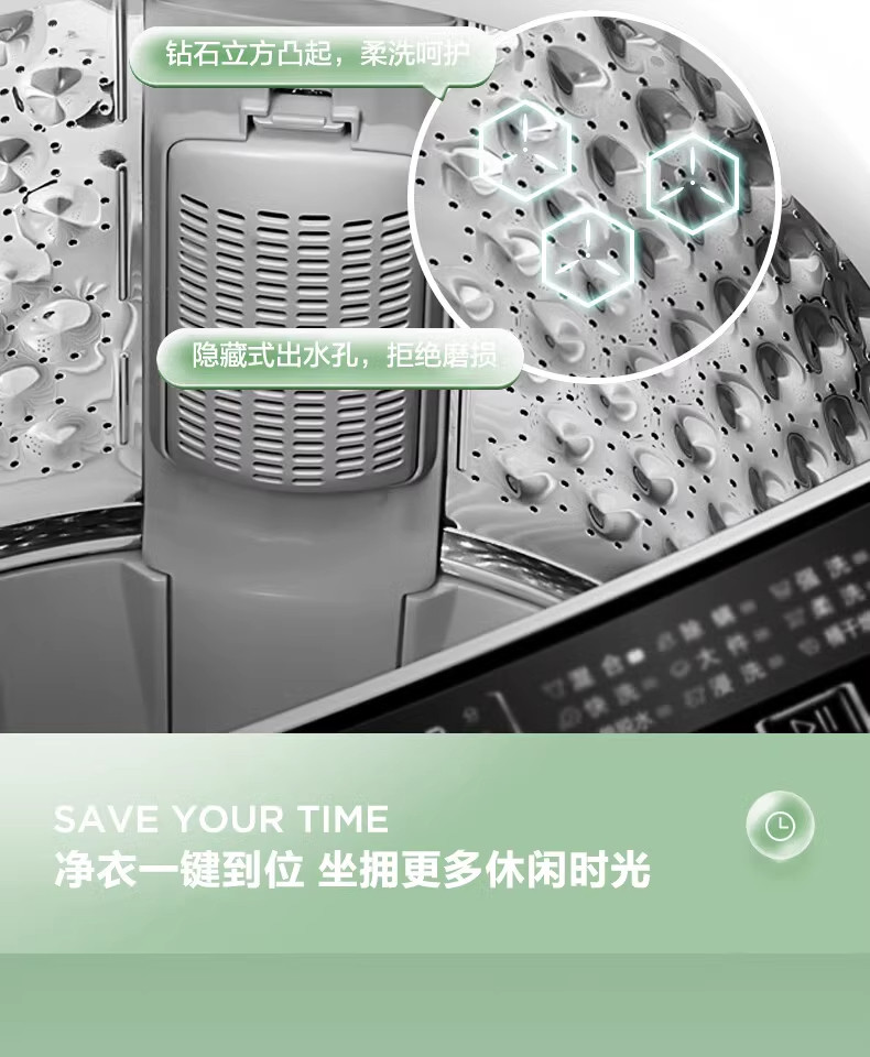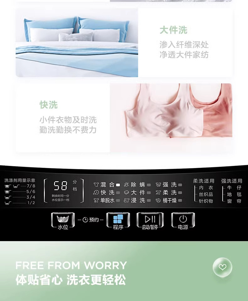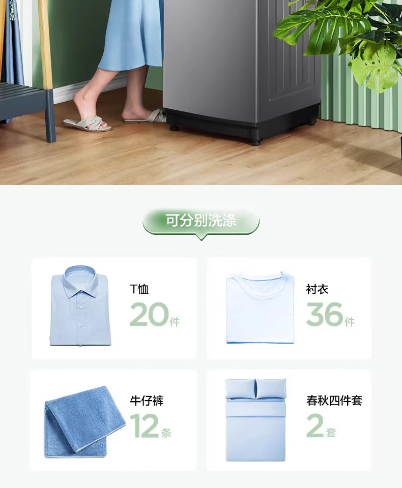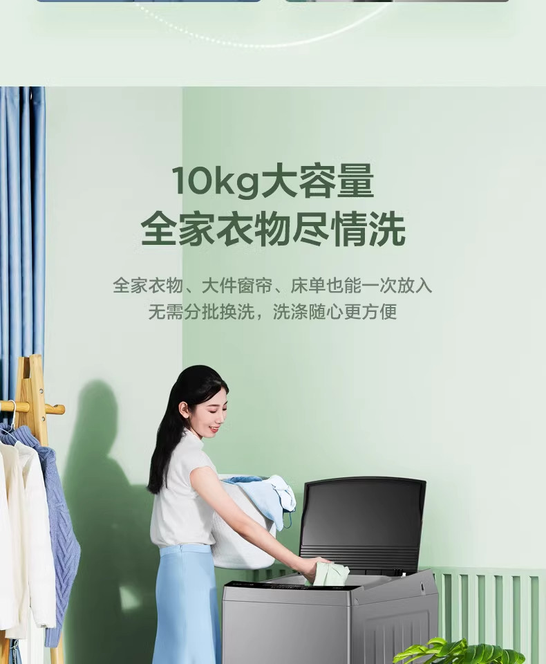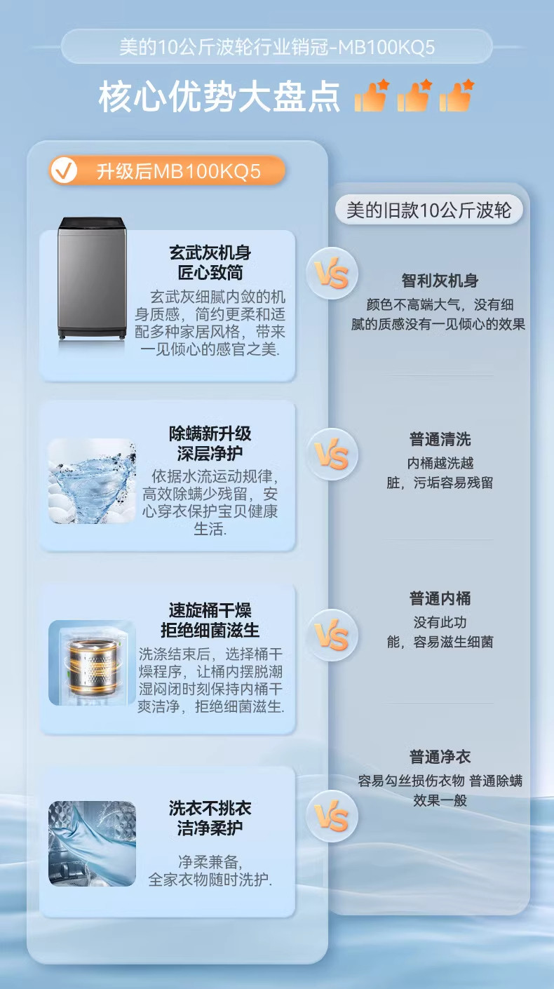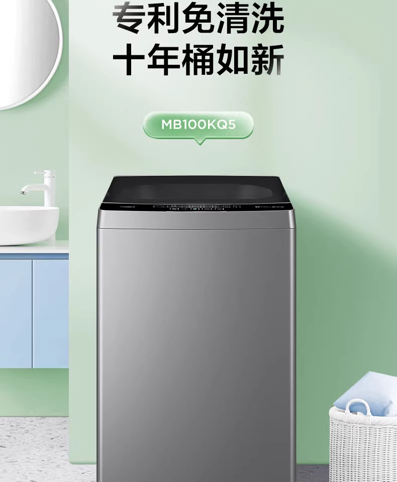 Midea/美的 MB100KQ5洗衣机全自动波轮大容量家用租房免清洗除螨