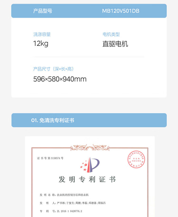 Midea/美的MB120V501DB洗衣机全自动波轮直驱变频12公斤