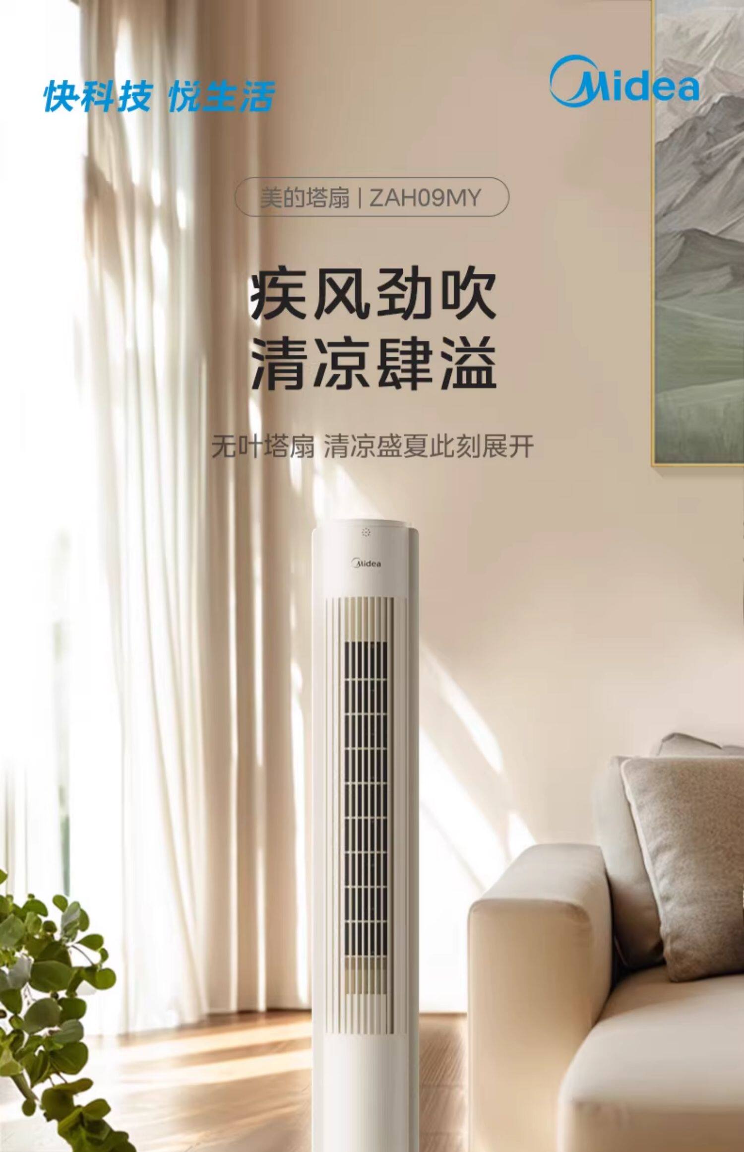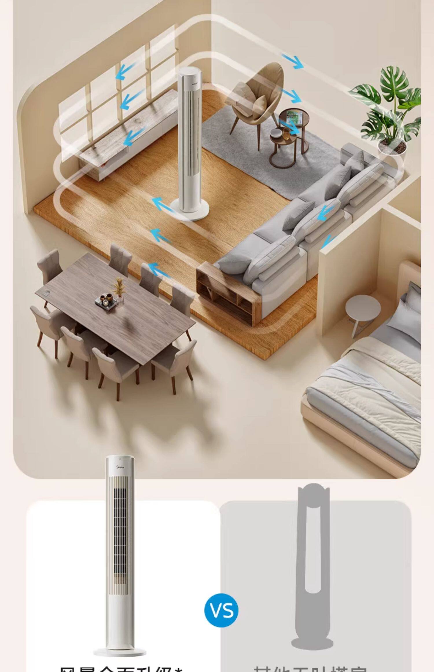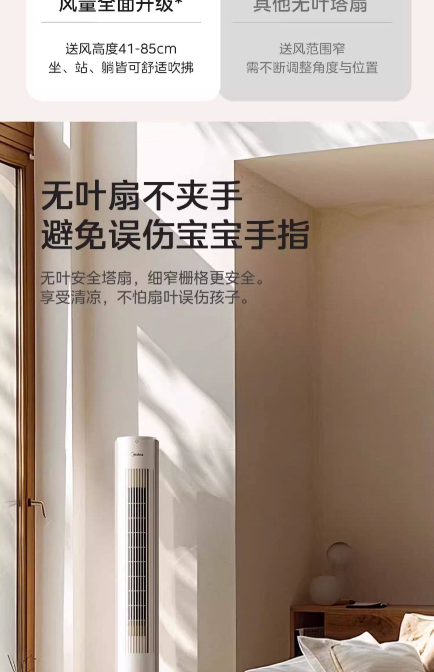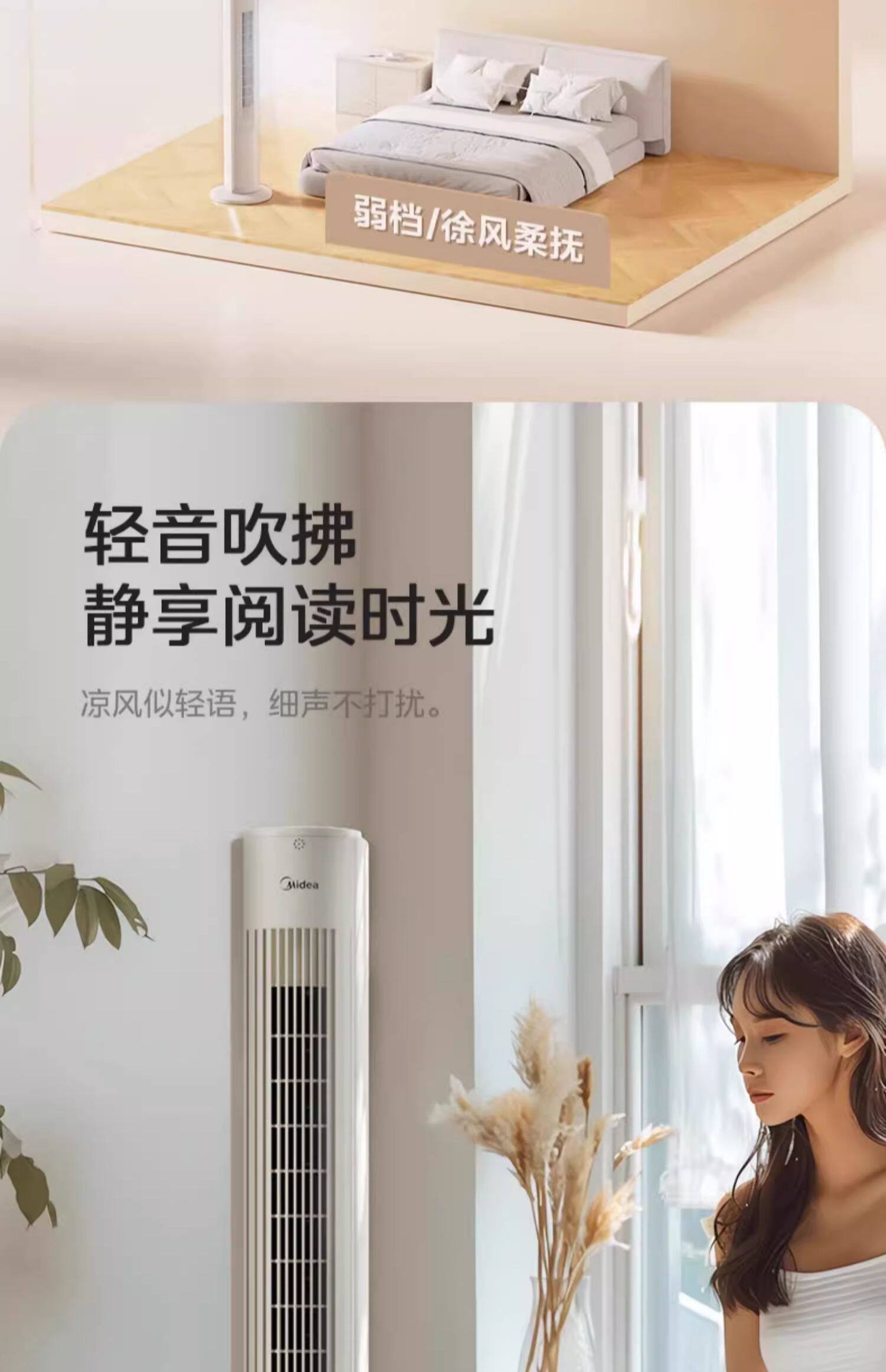 美的塔扇电风扇无叶音静遥控家用客厅落地扇定时摇头扇ZAH09MY