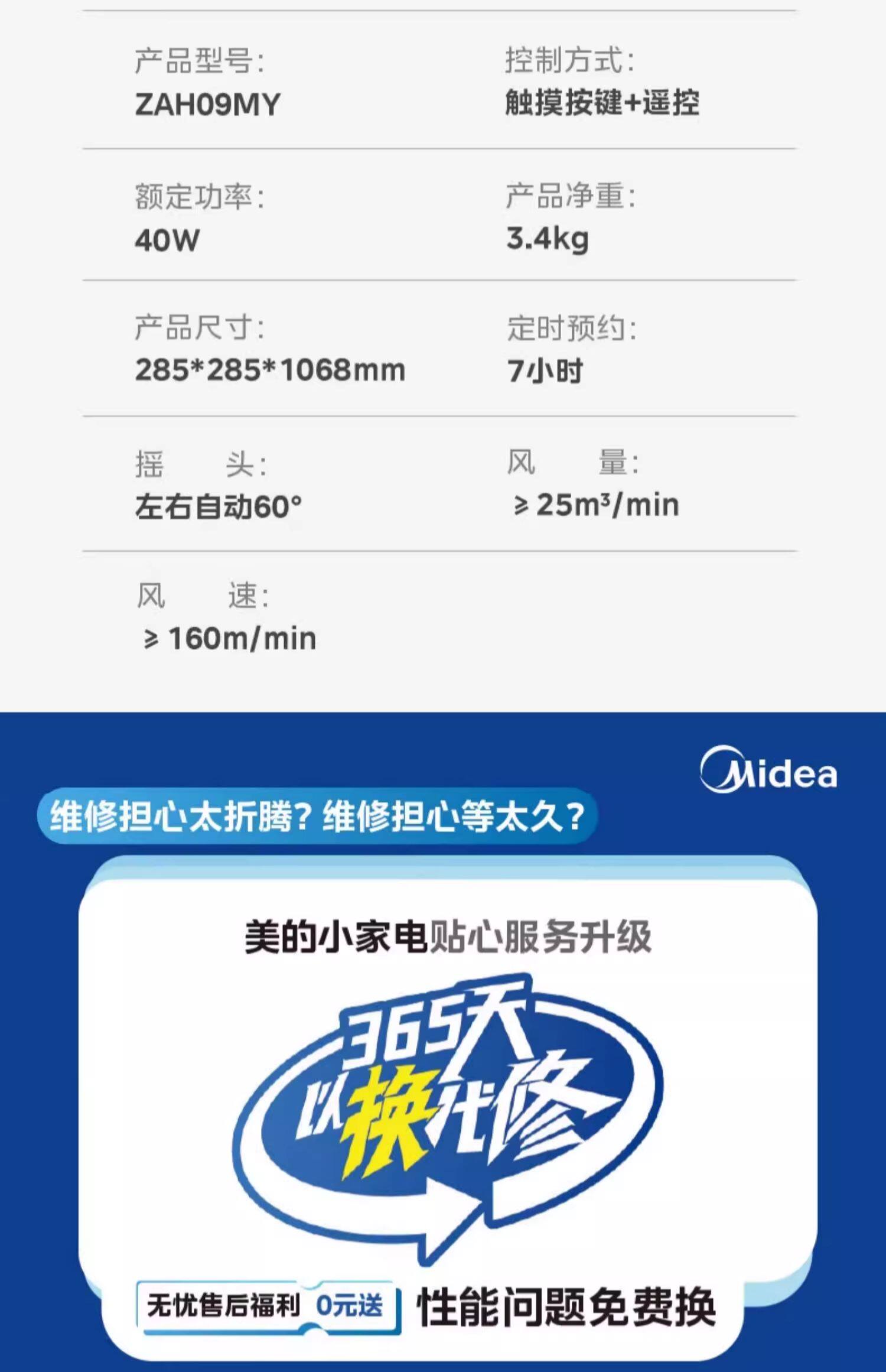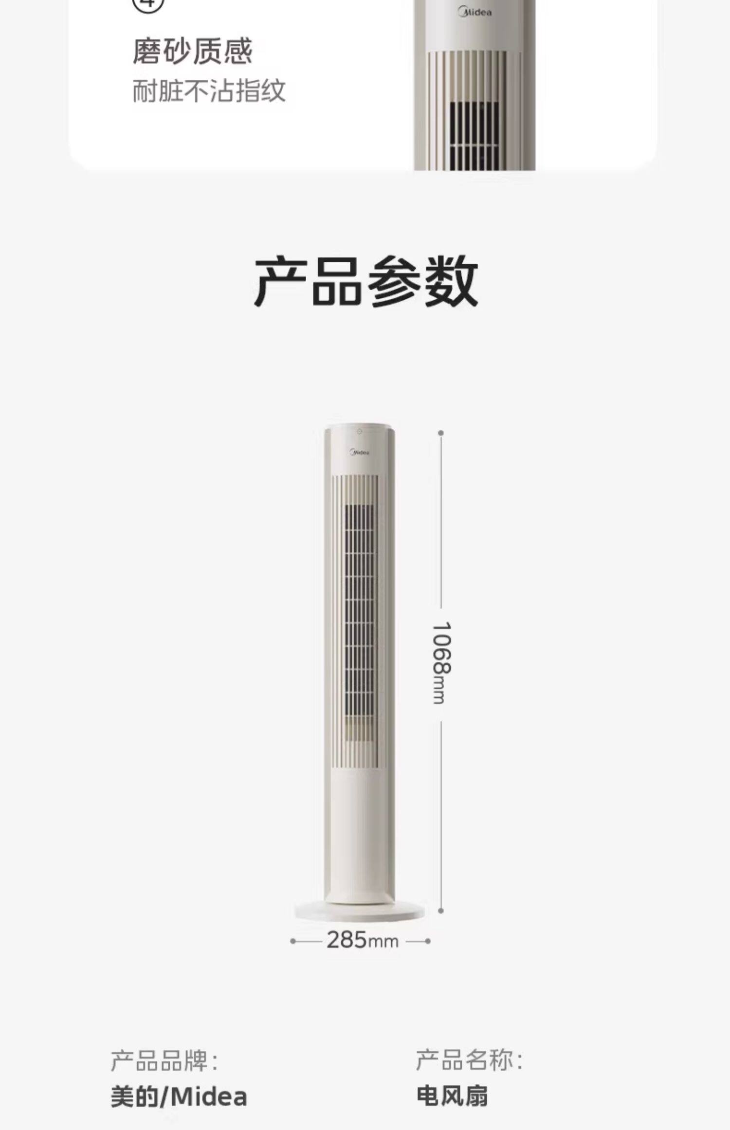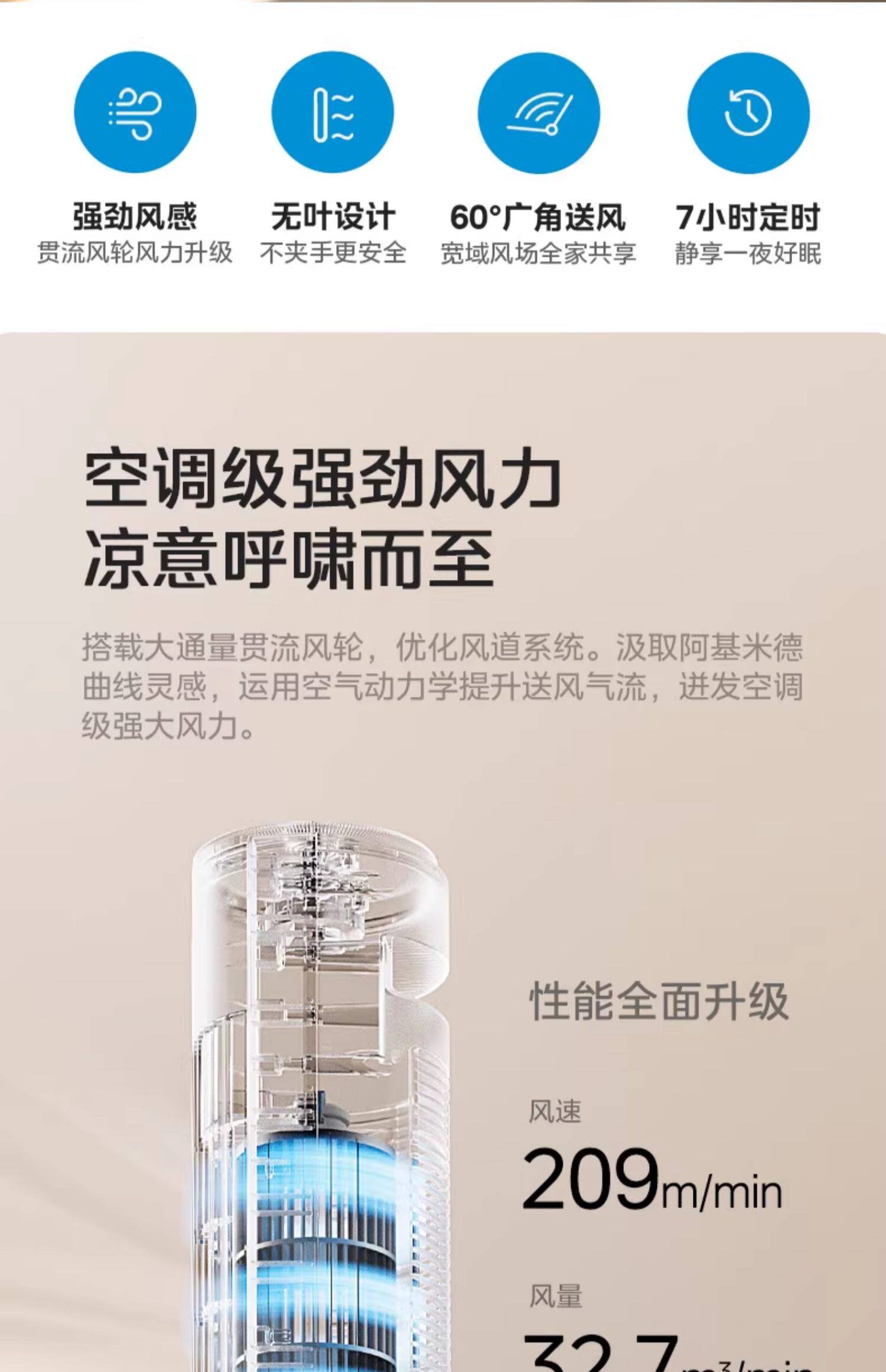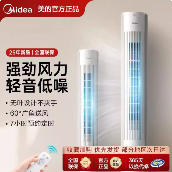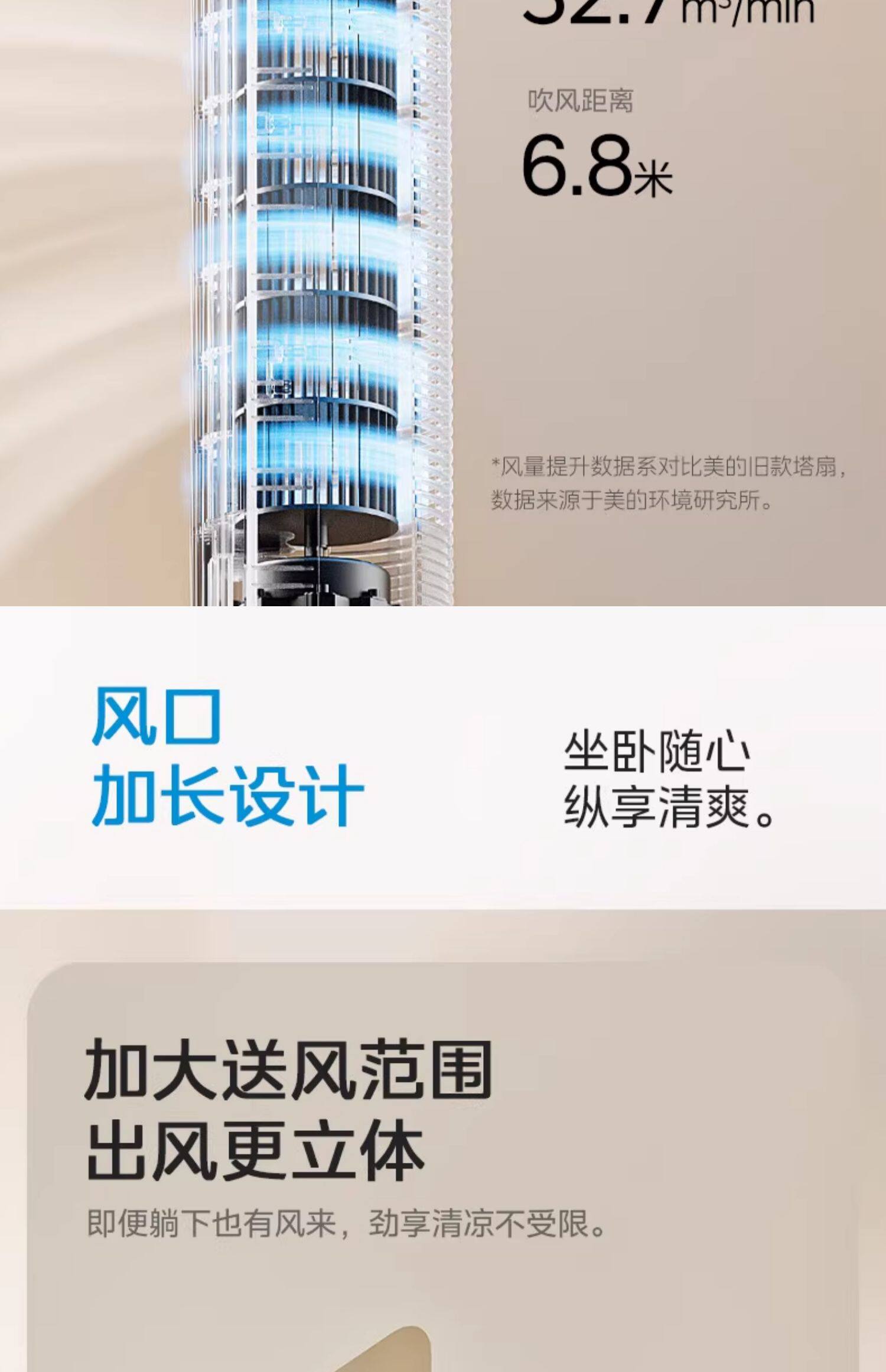 美的塔扇电风扇无叶音静遥控家用客厅落地扇定时摇头扇ZAH09MY