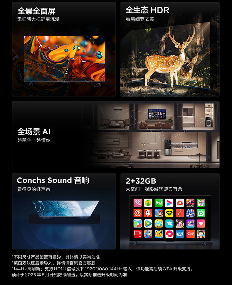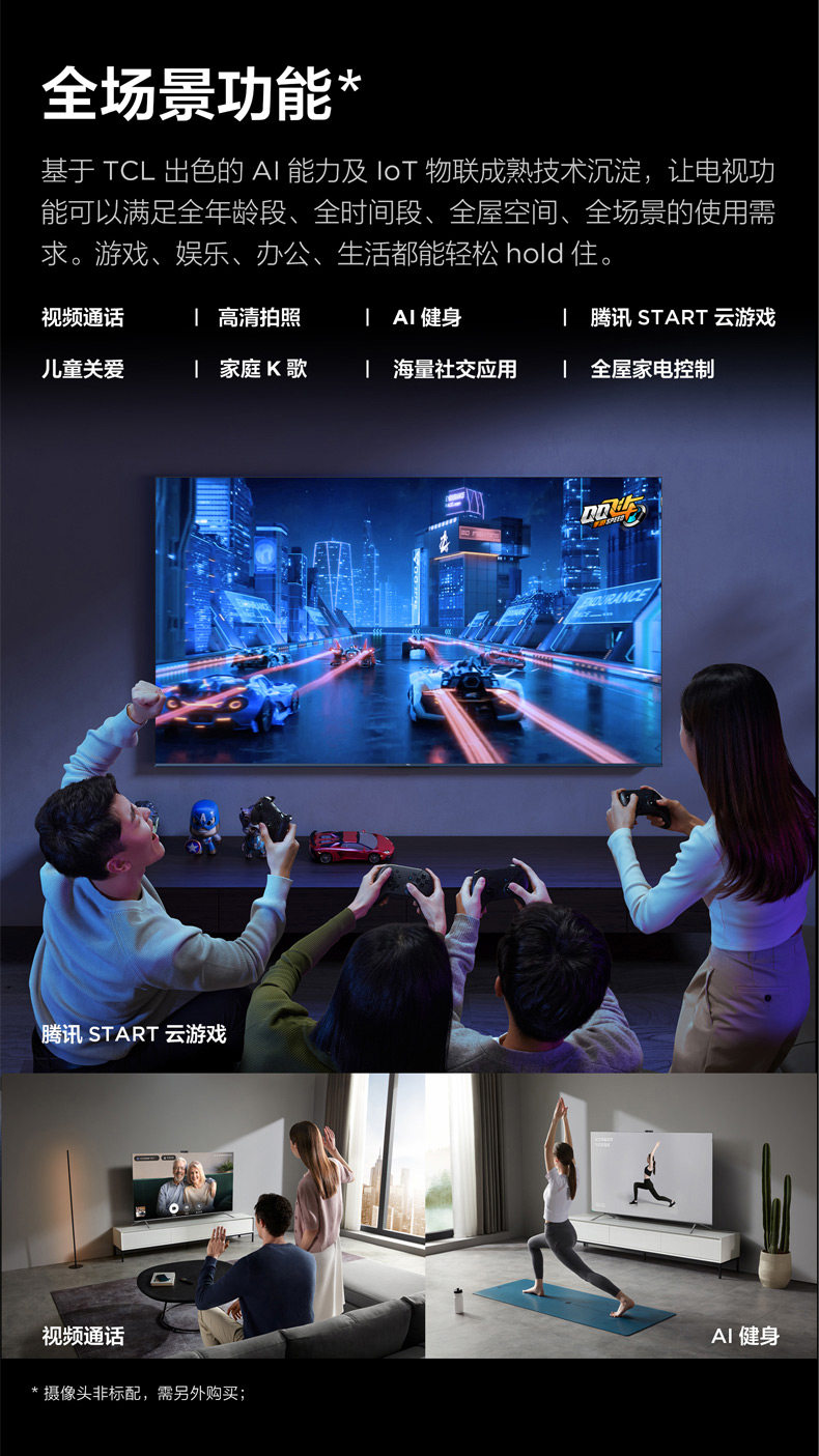 TCL 65S11-JN 65寸144Hz高刷新 2+32GB 四重护眼技术全场景AI电视