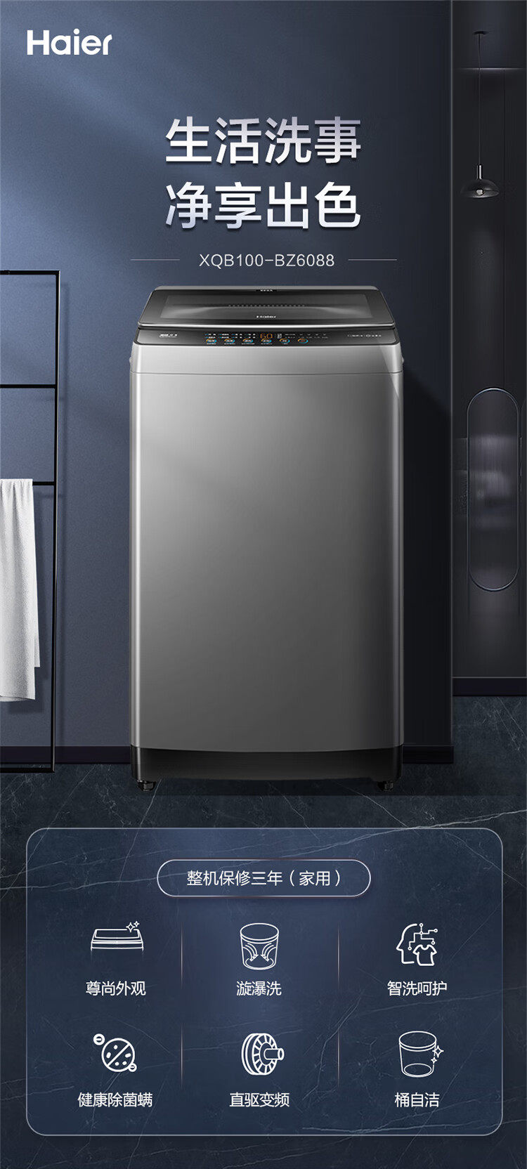 Haier/海尔 XQB100-BZ6088波轮洗衣机10公斤全自动直驱变频