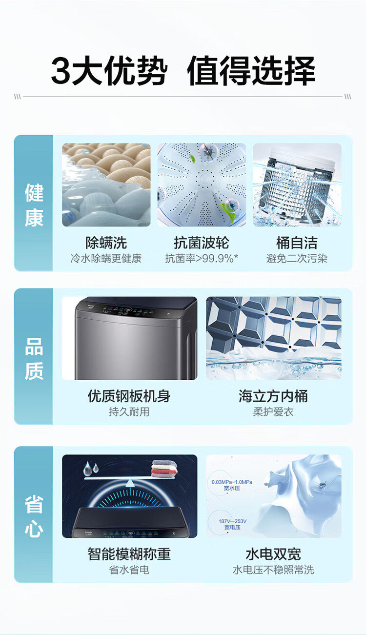 Haier/海尔 EB100M32Mate1家用全自动10K波轮洗衣机蝶形水流除螨