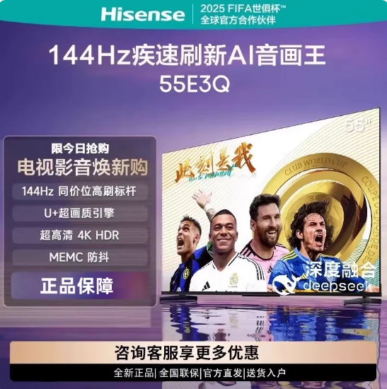 海信55英寸电视机144Hz高刷 U+超画质引擎 AI智能语音4k液晶55E3Q