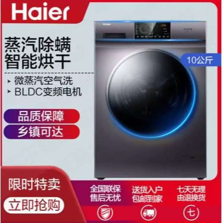 海尔(Haier)/EG100HMAX2S变频10公斤全自动家用滚筒洗烘一体洗衣机 星蕴银色 一级变频 旋钮款