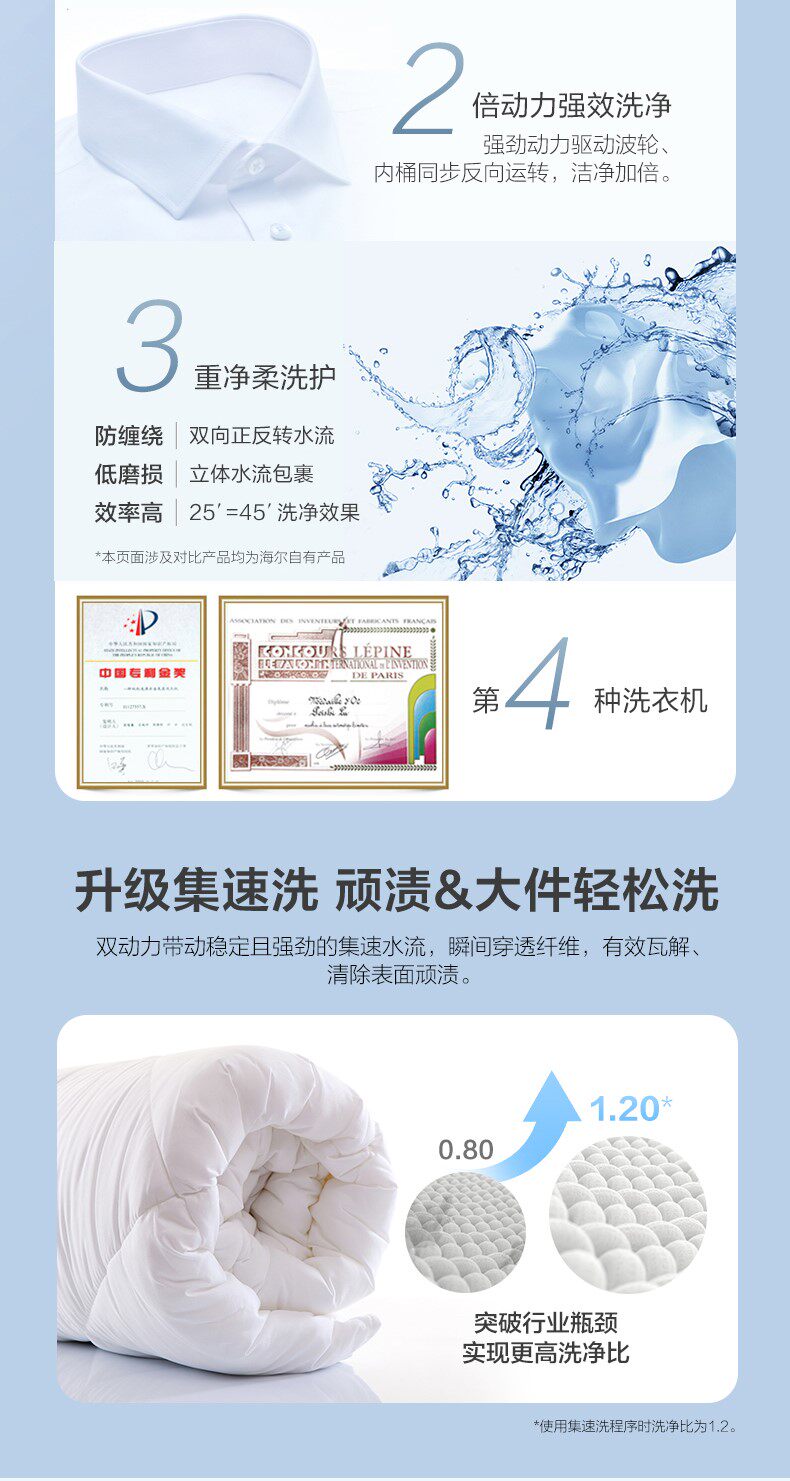 Haier/海尔XQS100-BZ226 10公斤波轮洗衣机 直驱变频双动力系列