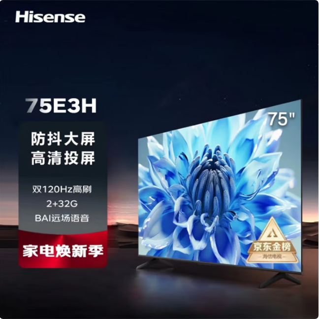 海信电视 75E3H 75英寸120Hz远场语音MEMC防抖大屏2+32GB智慧屏智能液晶电视