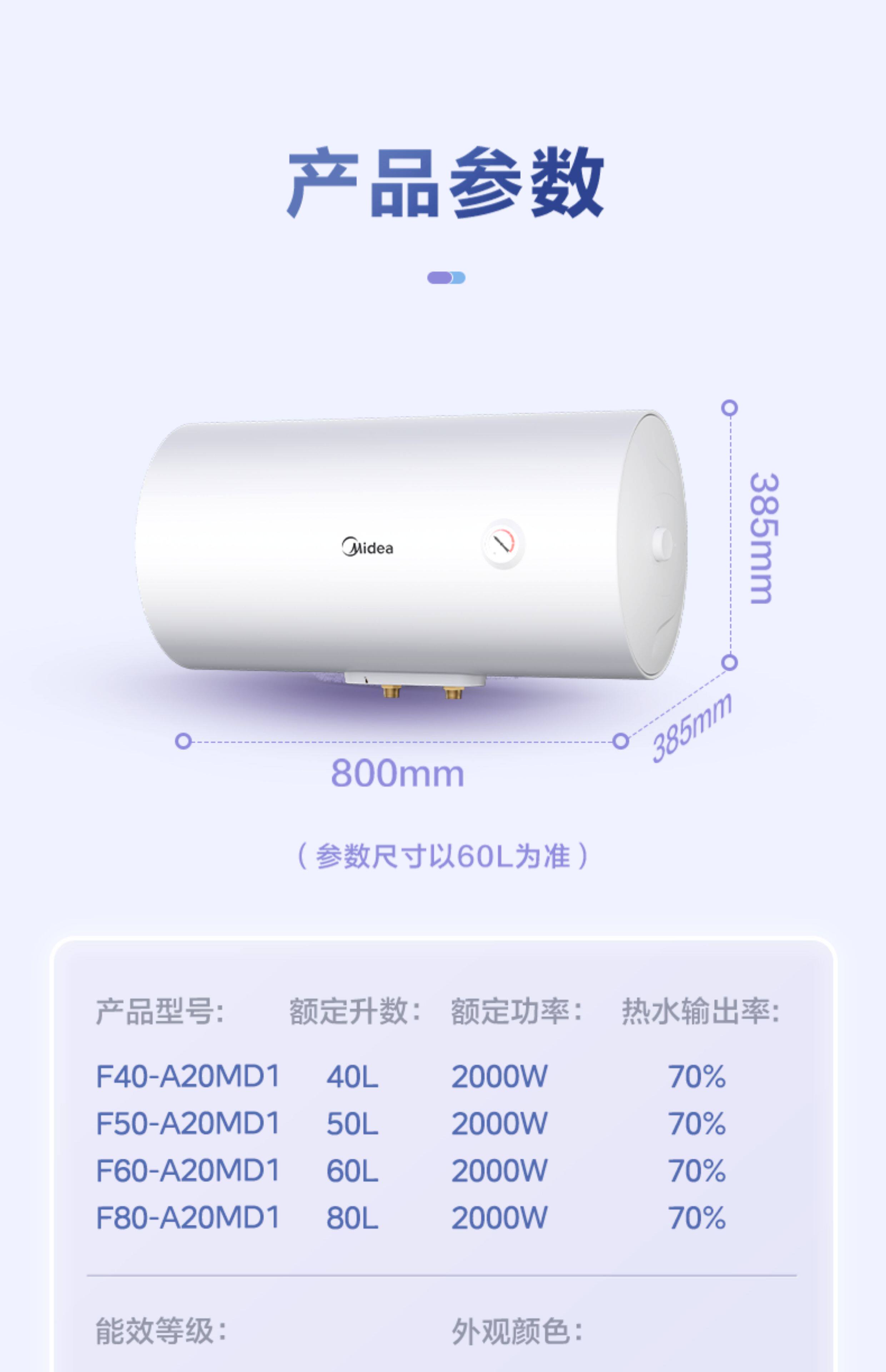 美的电热水器60升速热抑菌节能电热水器F60-A20MD1(HI)样机