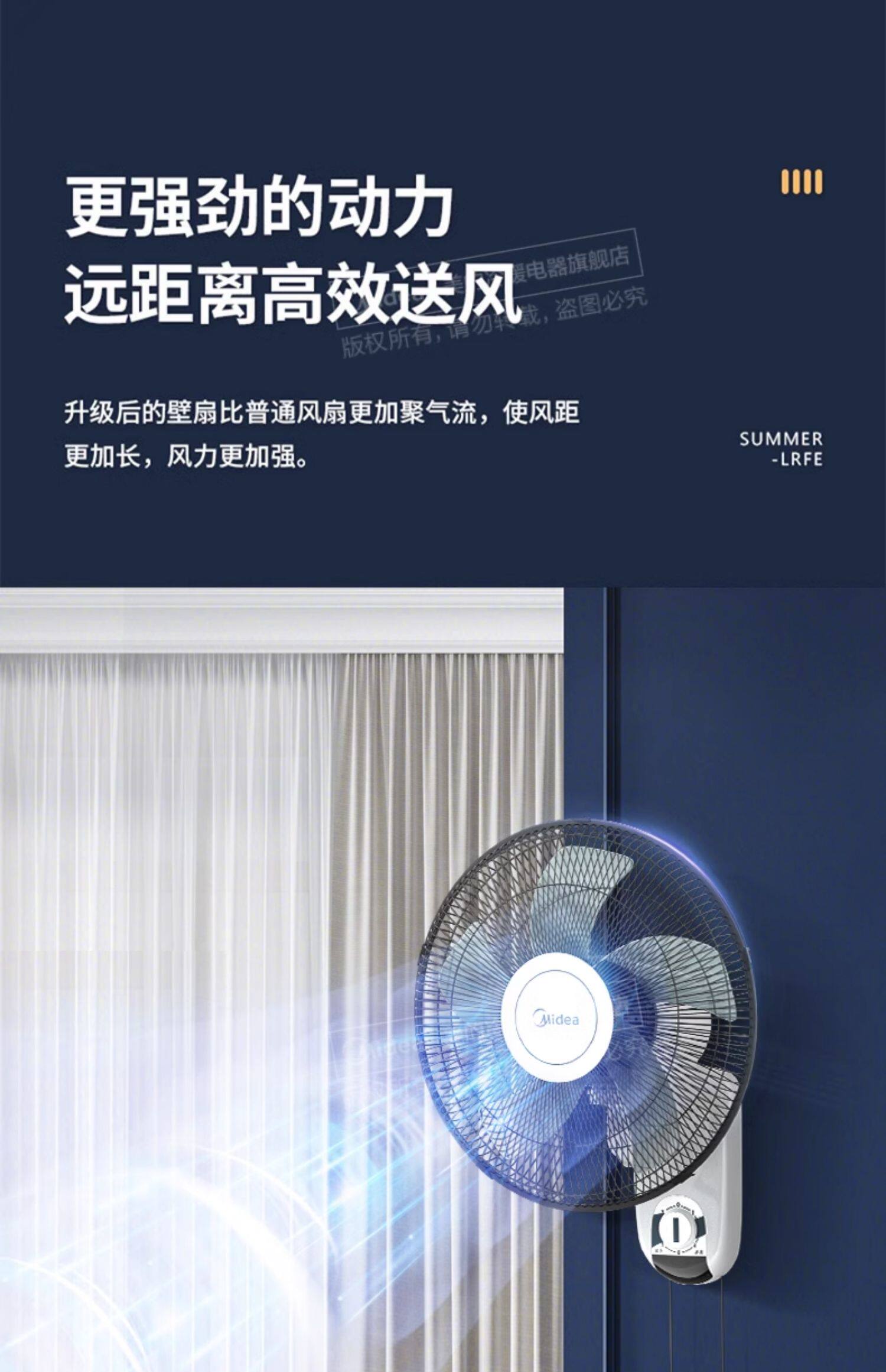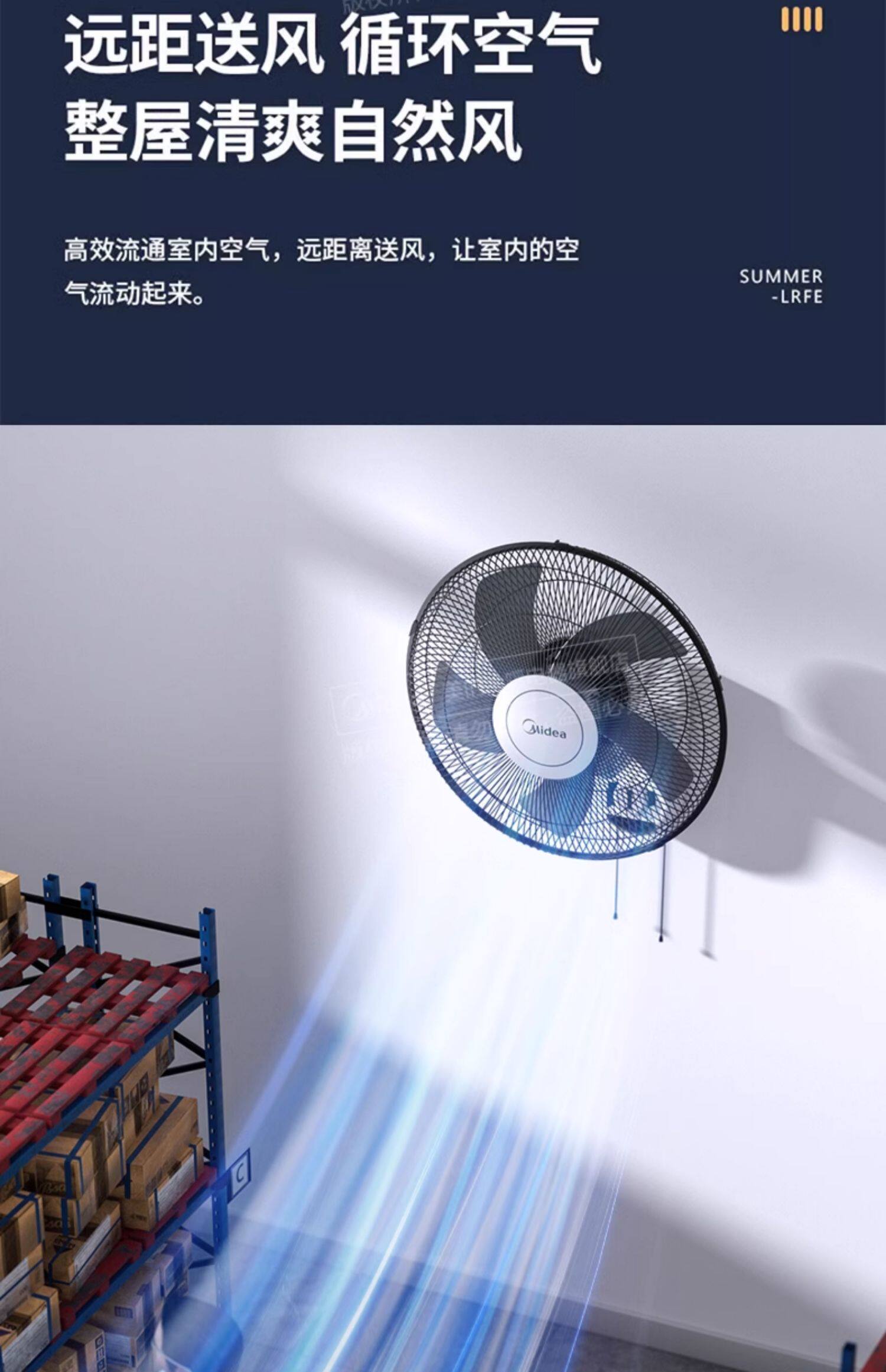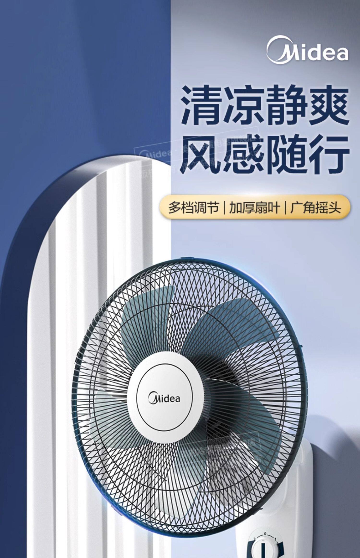 美的壁扇壁挂式摇头风扇贴壁墙扇家用餐厅工业壁扇FWA40YA