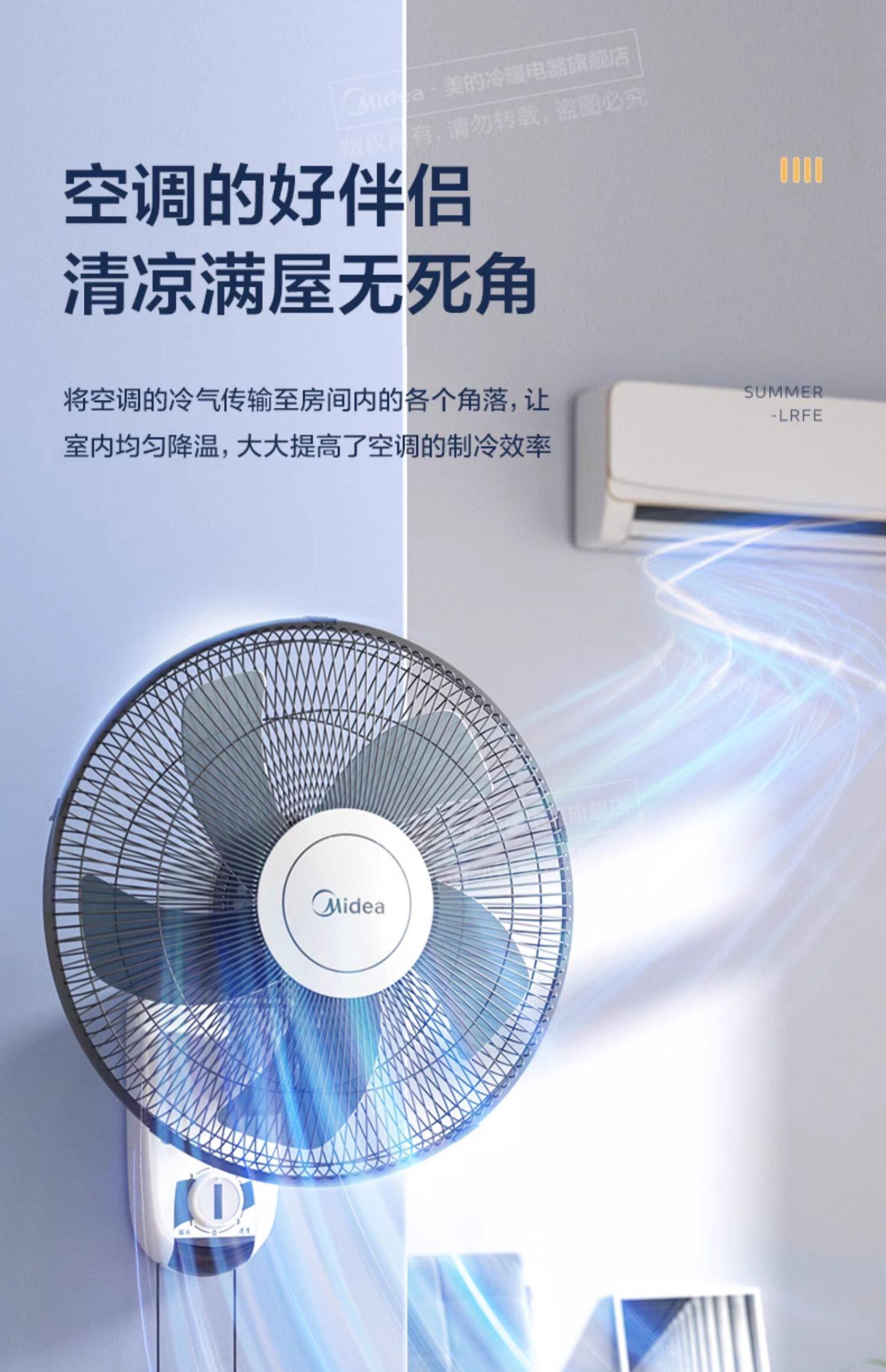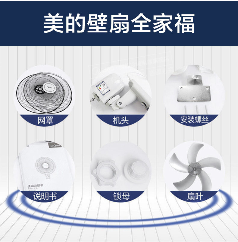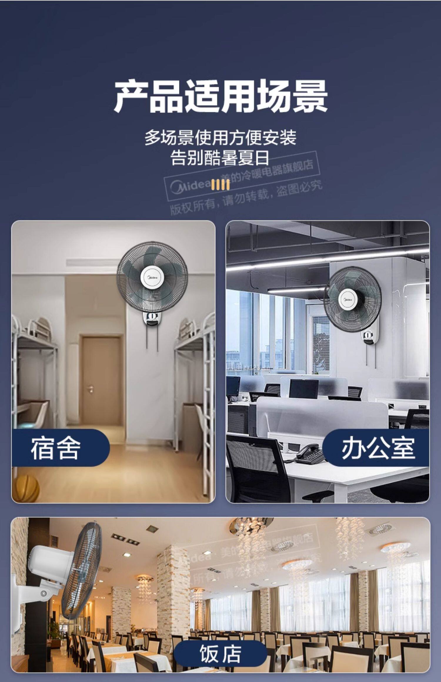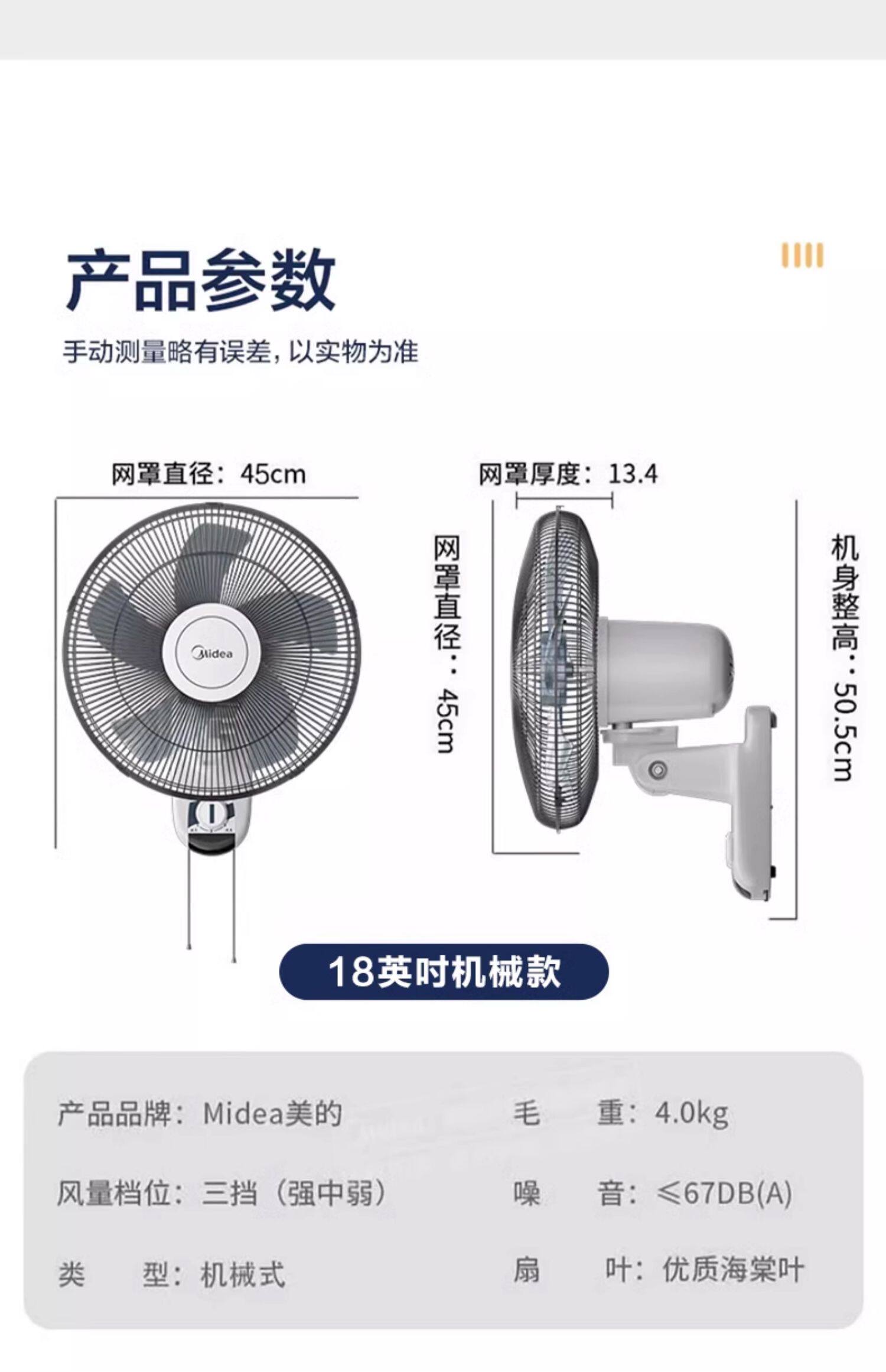 美的壁扇壁挂式摇头风扇贴壁墙扇家用餐厅工业壁扇FWA40YA