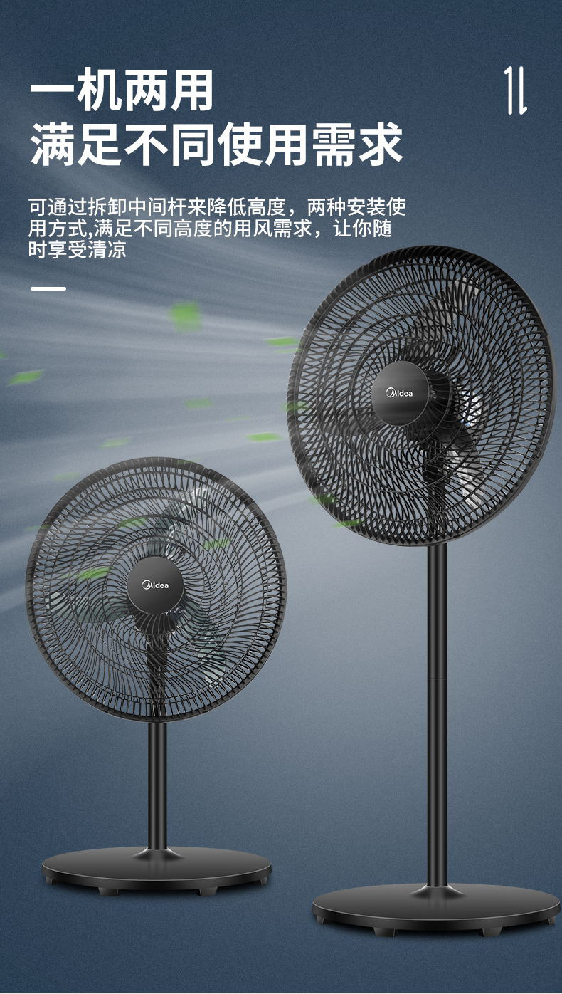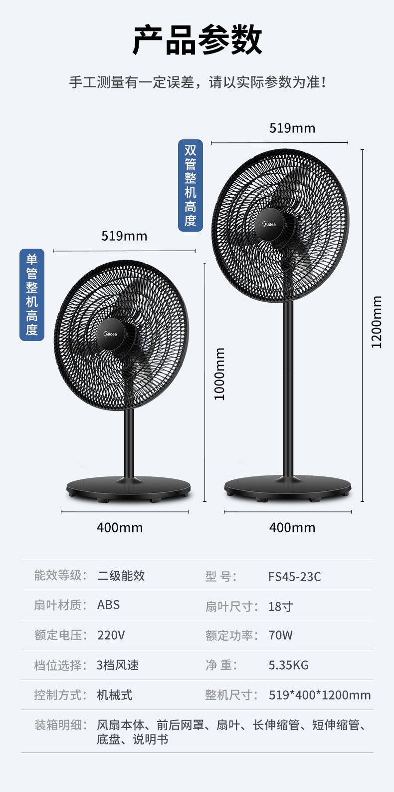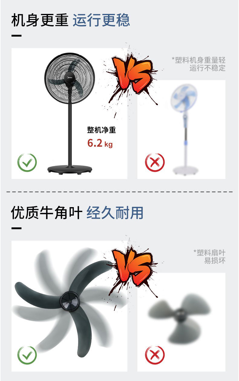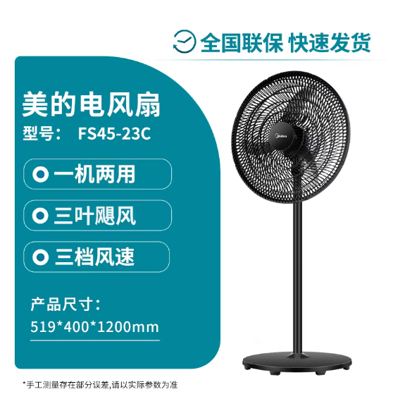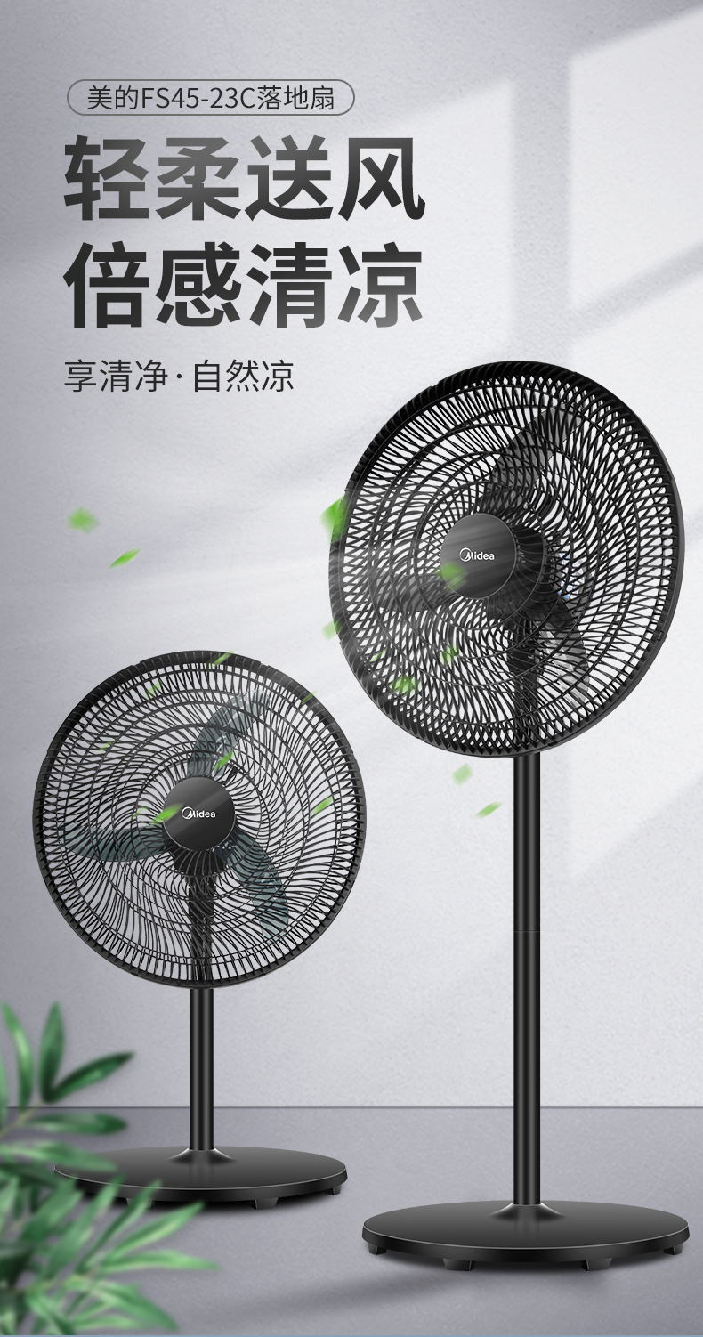 美的落地扇FS45-23C大风18寸立式电风扇家用机械式摇头客厅工业扇