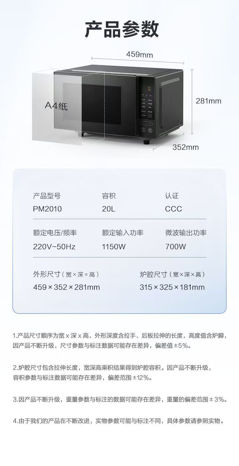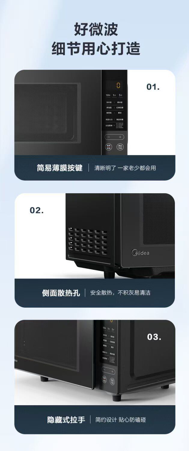 美的 PM2010微波炉家用20L智能大平板速热解冻全新升级款