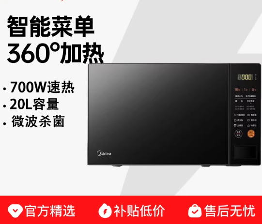 美的微波炉家用20L转盘加热一键解冻700W大火力智能菜单多功能M21