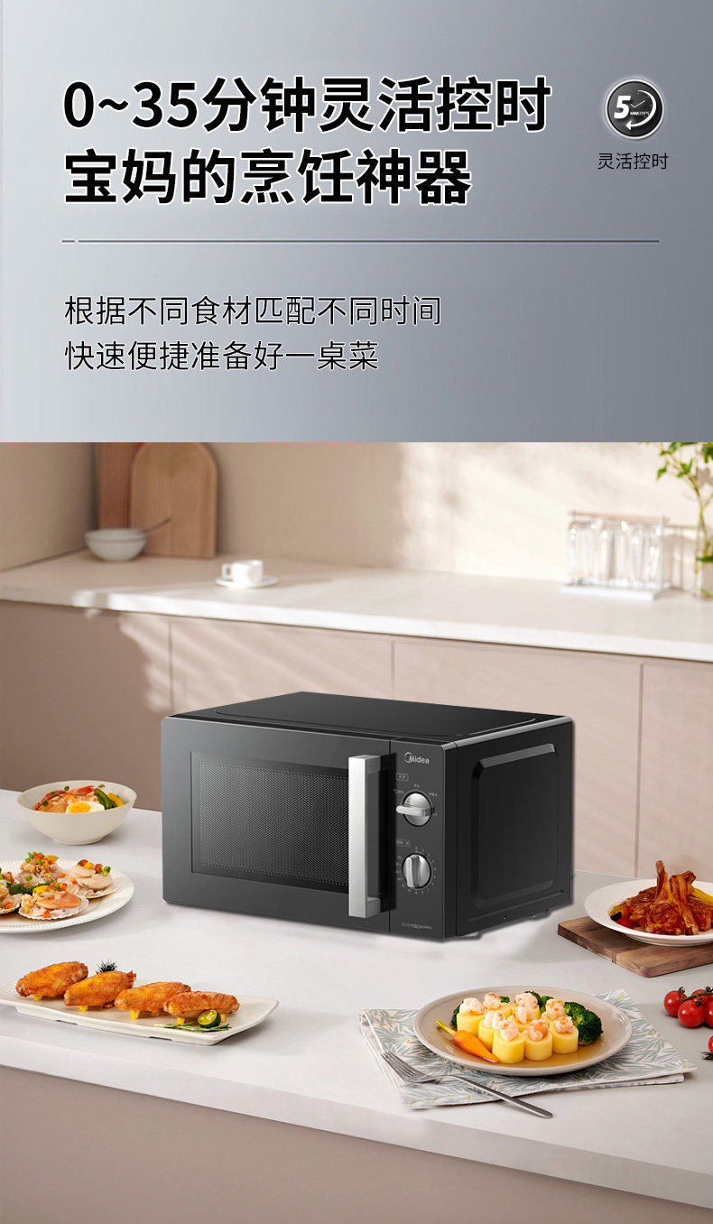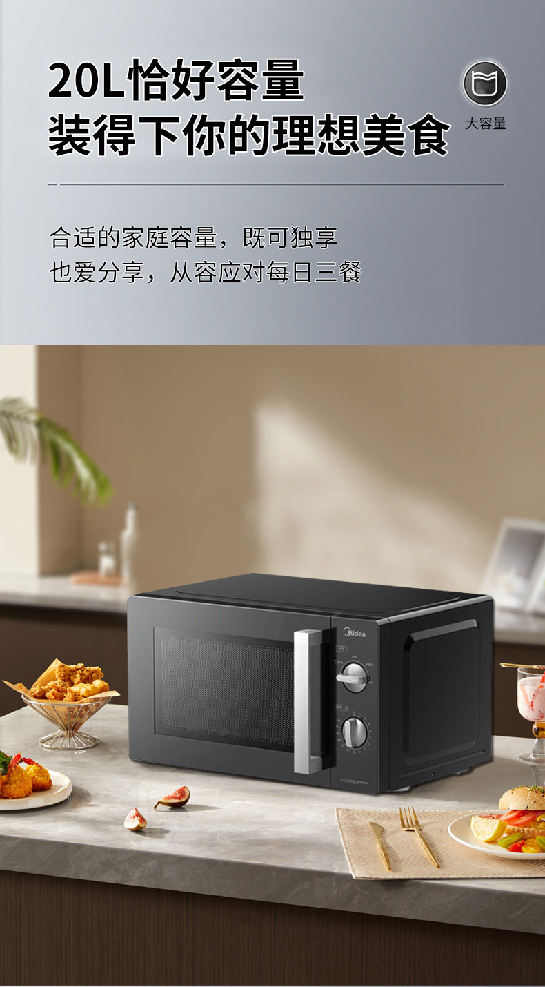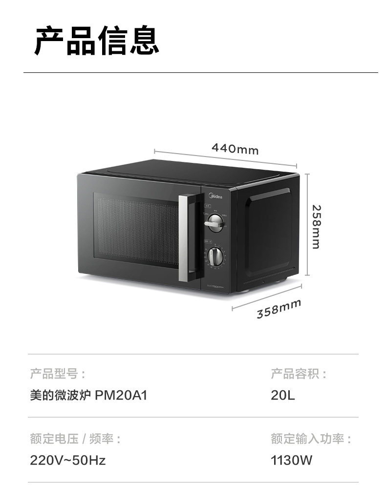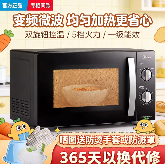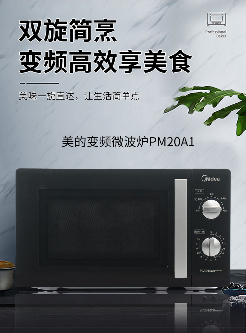 美的 PM20A1变频微波炉家用20L双旋钮机械一级能效官方正品