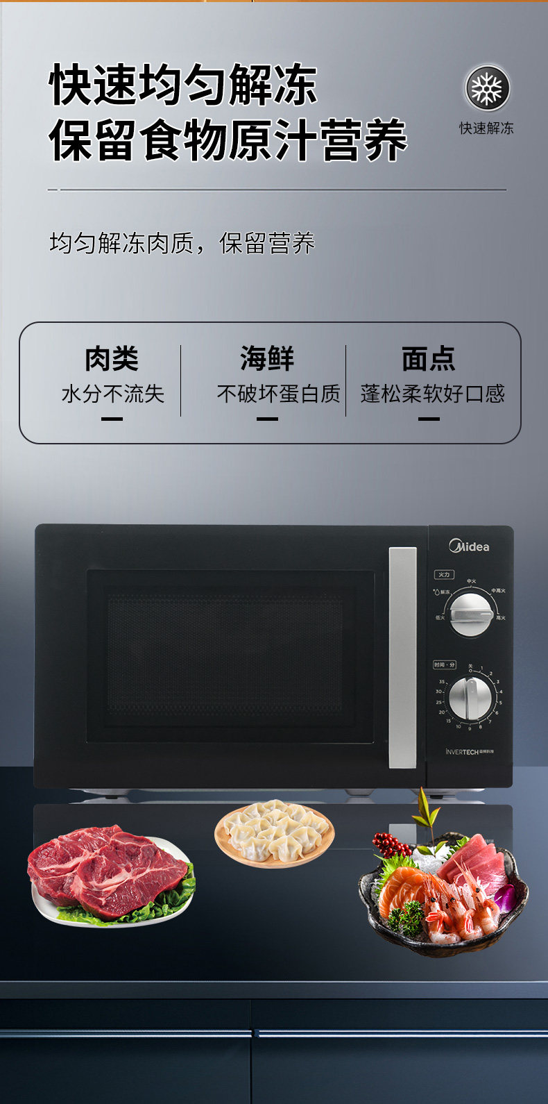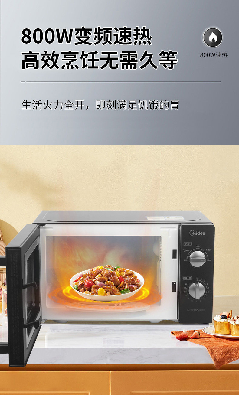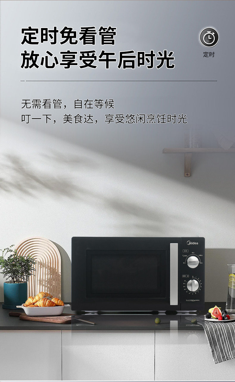美的 PM20A1变频微波炉家用20L双旋钮机械一级能效官方正品