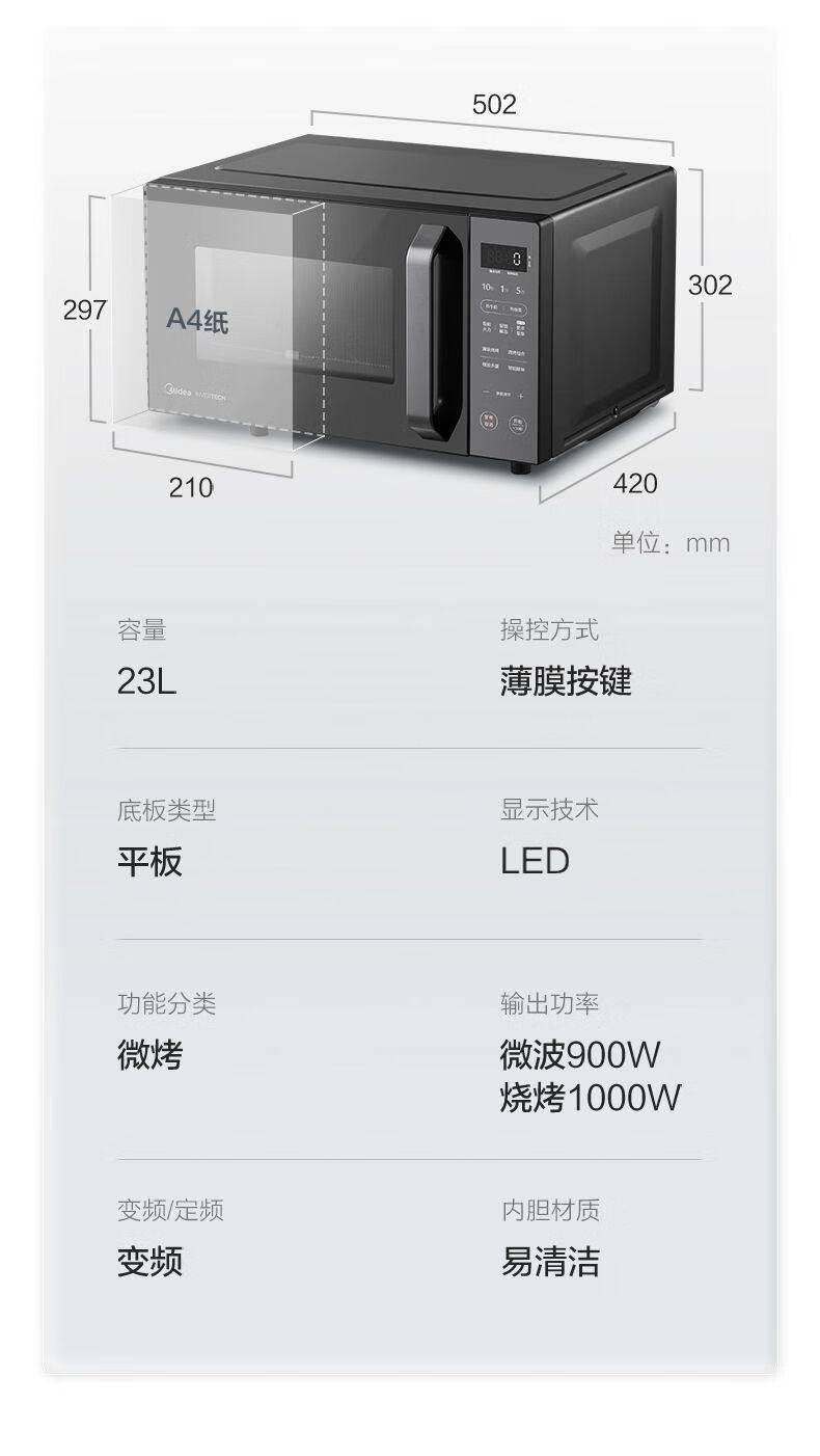美的 PC2331家用商用平板23升900瓦微光一体微波炉快餐