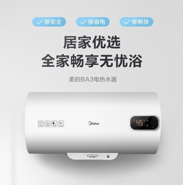 美的(Midea)80升储水式电热水器速热节能省电免清洗安全防电墙防漏电小型家用商用热水器 80L 2200W F80-22BA3(H)