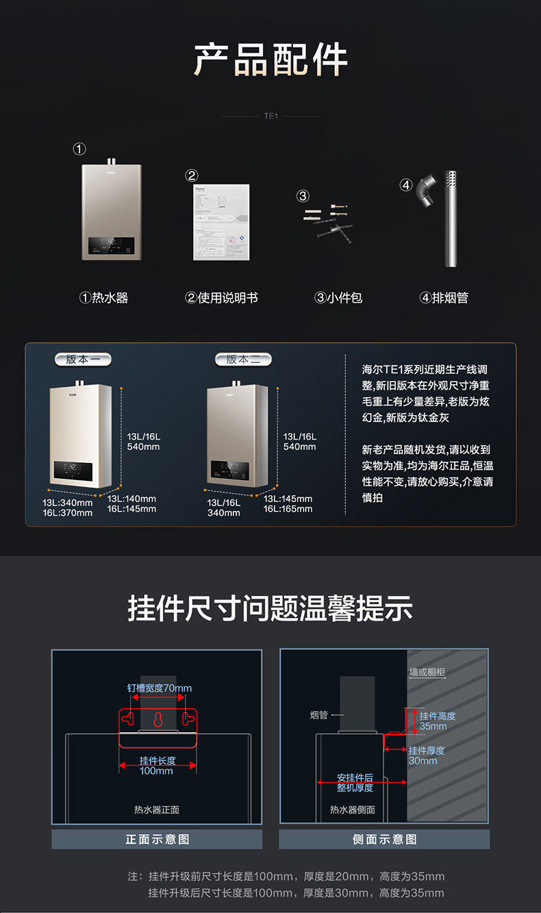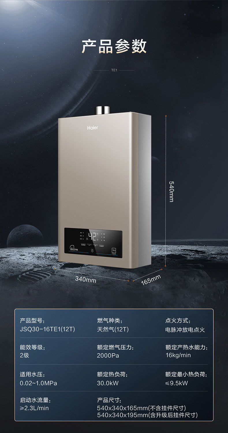Haier/海尔 JSQ30-16TE1(12T) 燃气热水器16L水气双调精控恒温