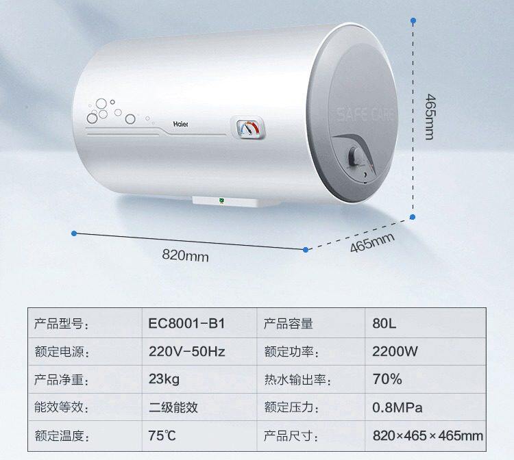 Haier/海尔 EC8001-B1电热水器家用租房二级能效速热节能80升正品