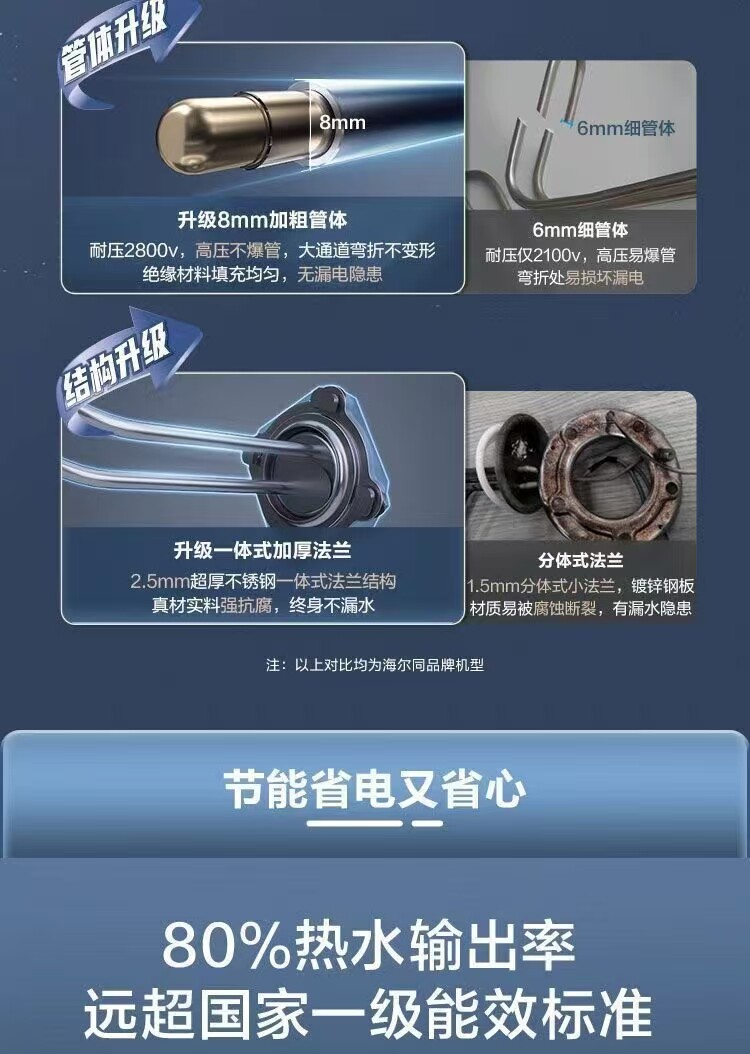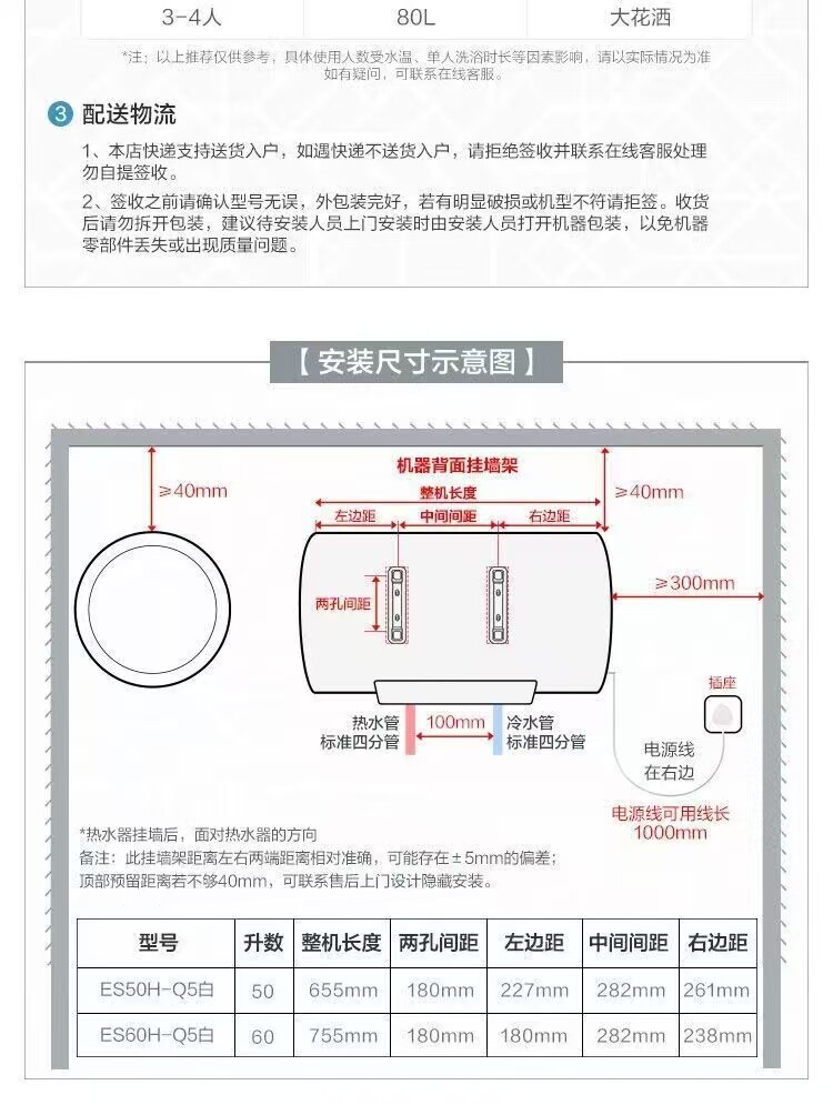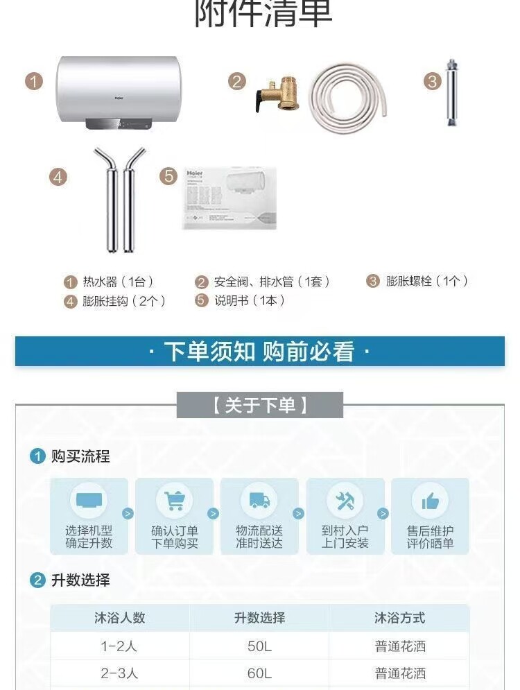 海尔 电热水器ES60H-Q5白速热 2200W 1级能效大水量高温抑菌60L