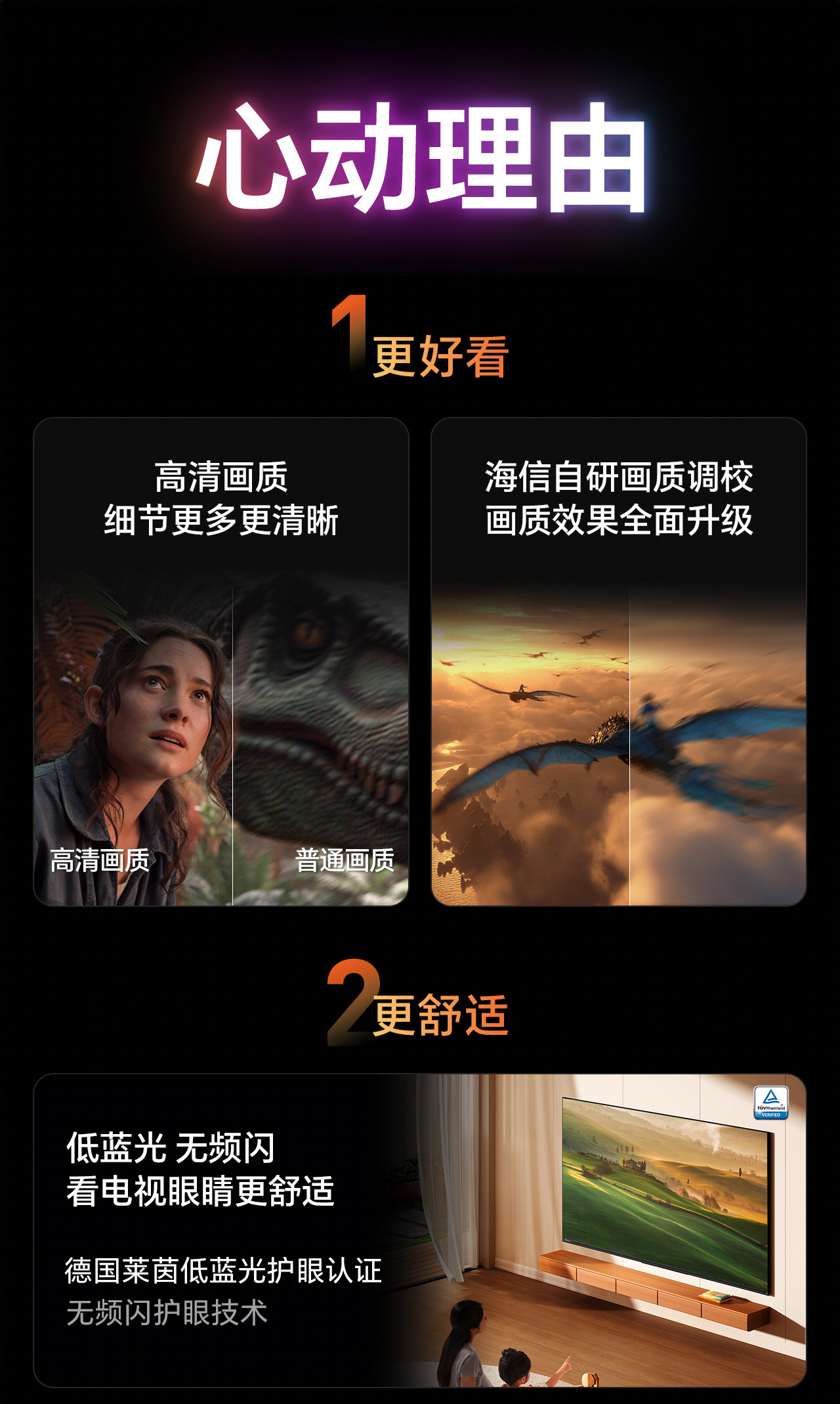 海信电视D30QD 50英寸 高清画质低蓝光无屏闪一级能效节能省电2*12W大功率音响家用大屏平板电视机 50英寸