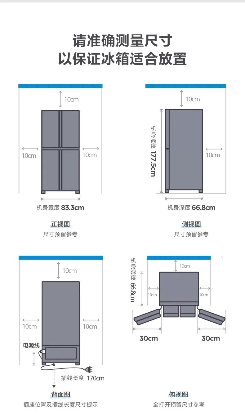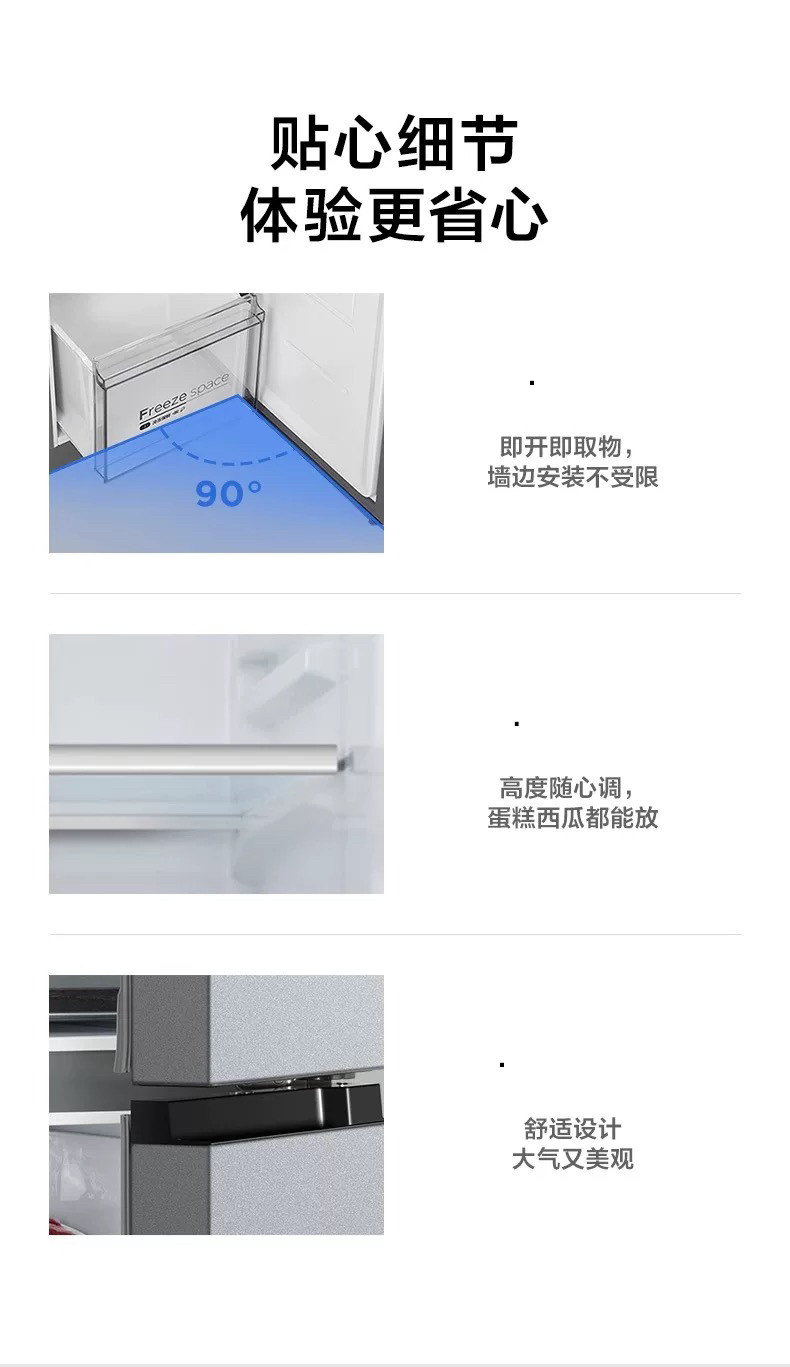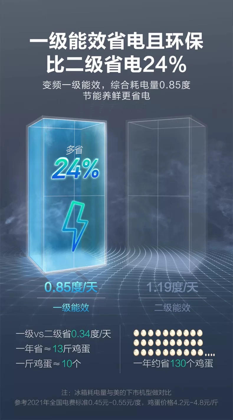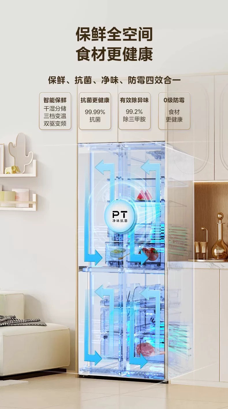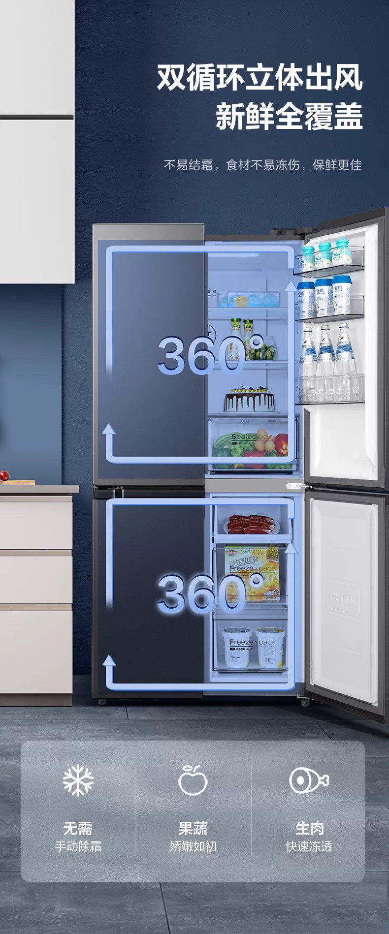 美的480升冰箱十字四开门变频一级超薄大容量风冷BCD-480WSPZM(E)