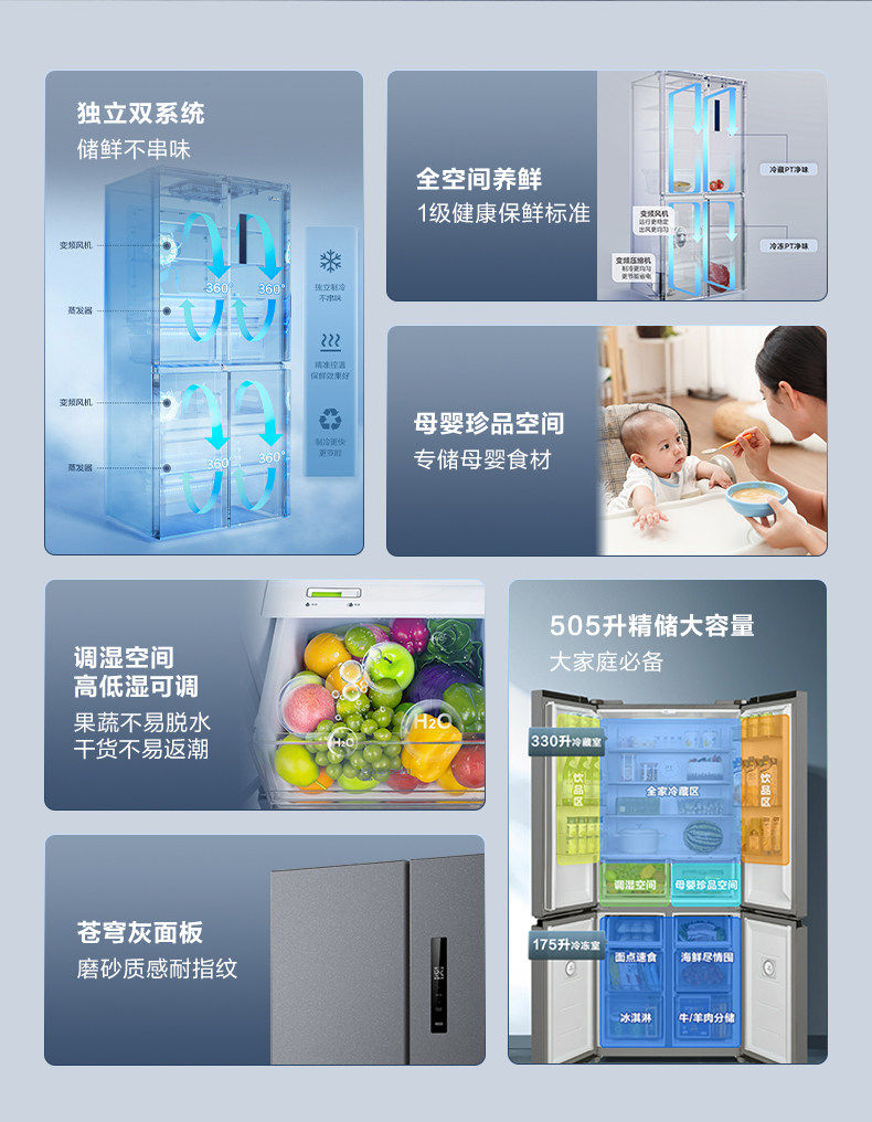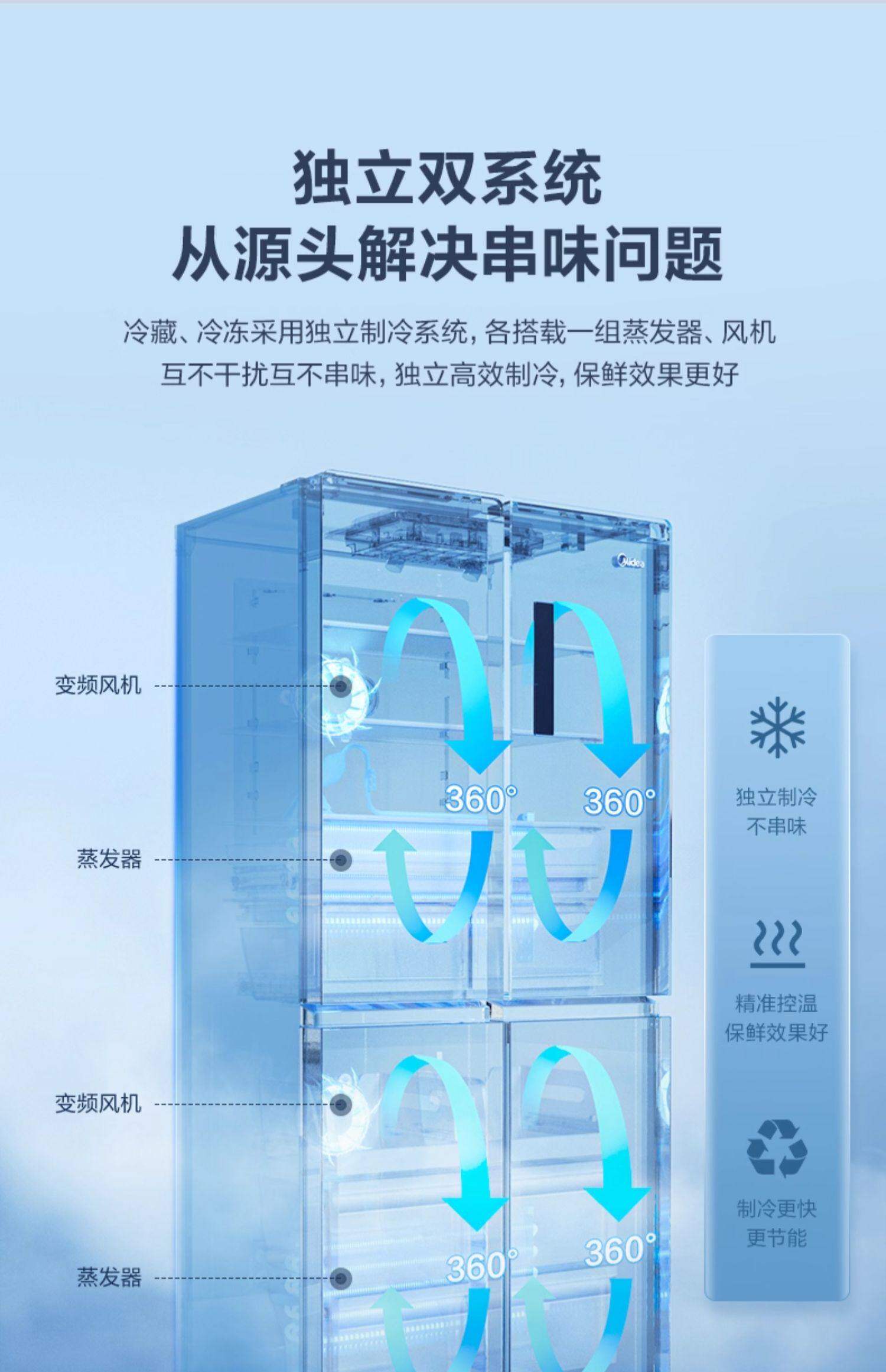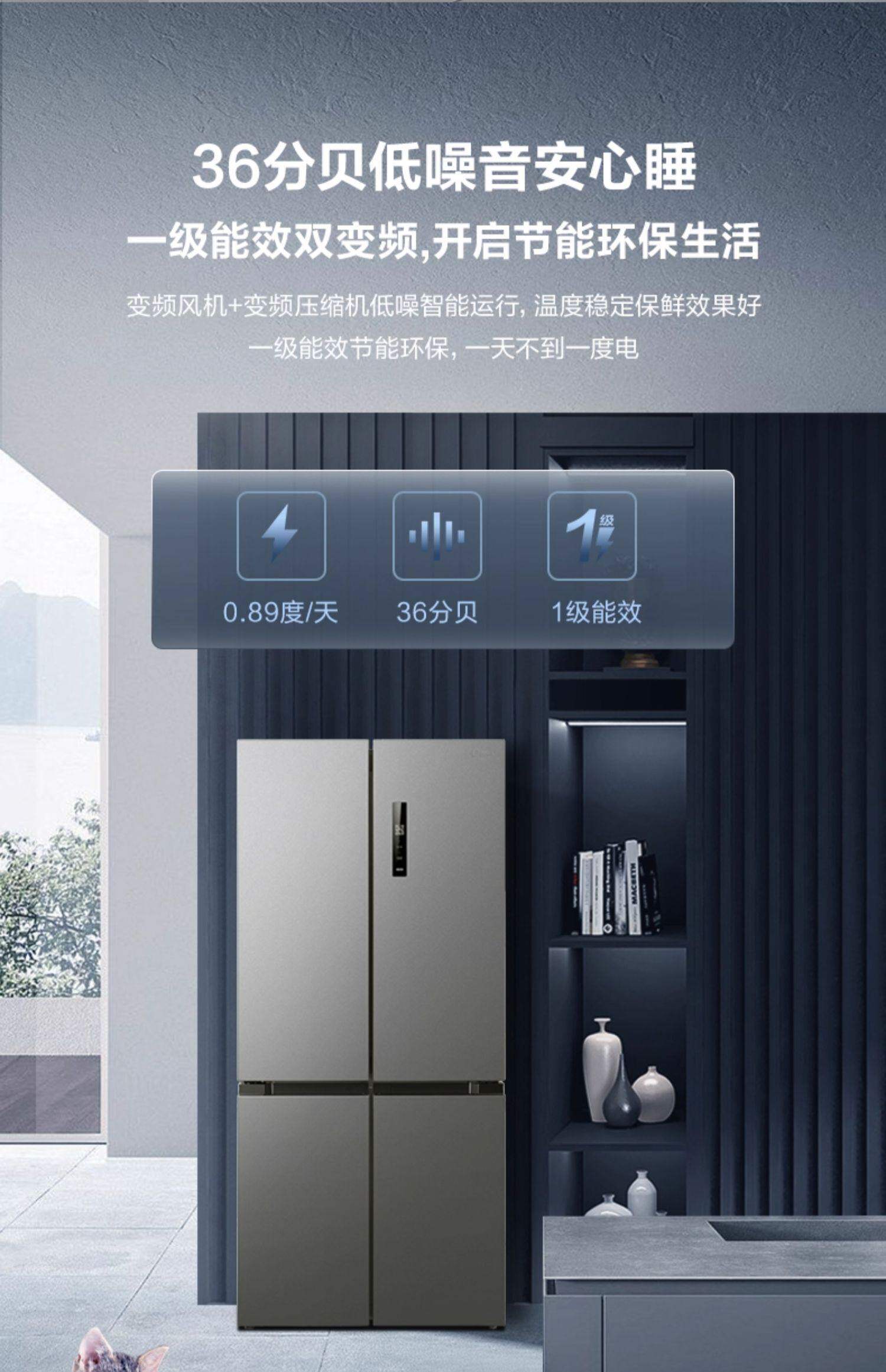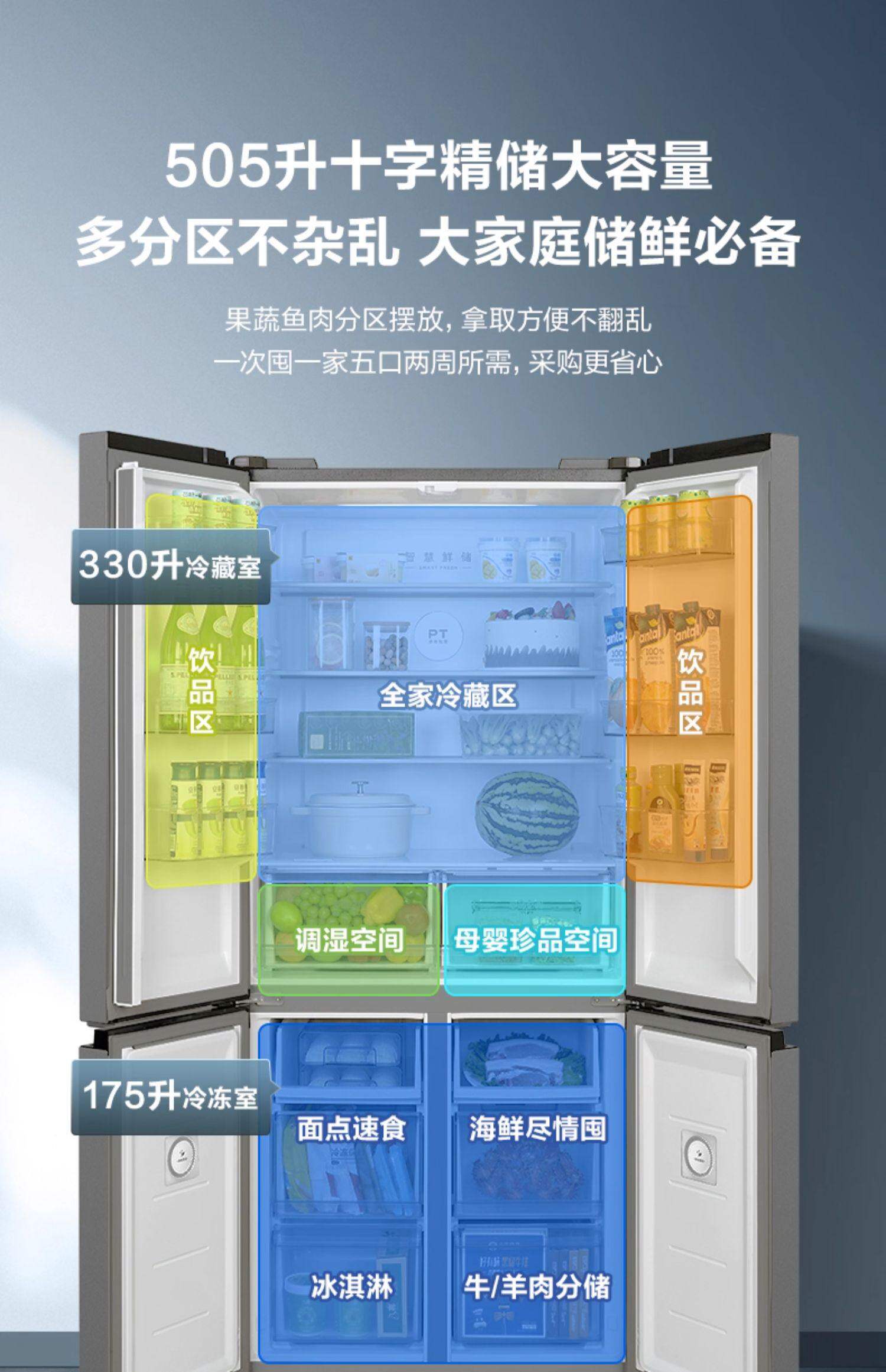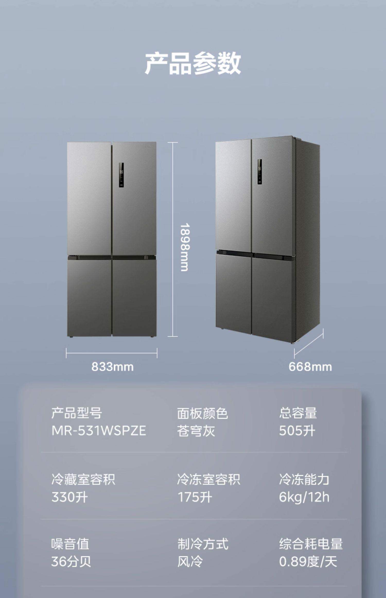 美的十字对开四开门505双系统一级大容量家用省电冰箱MR-531WSPZE