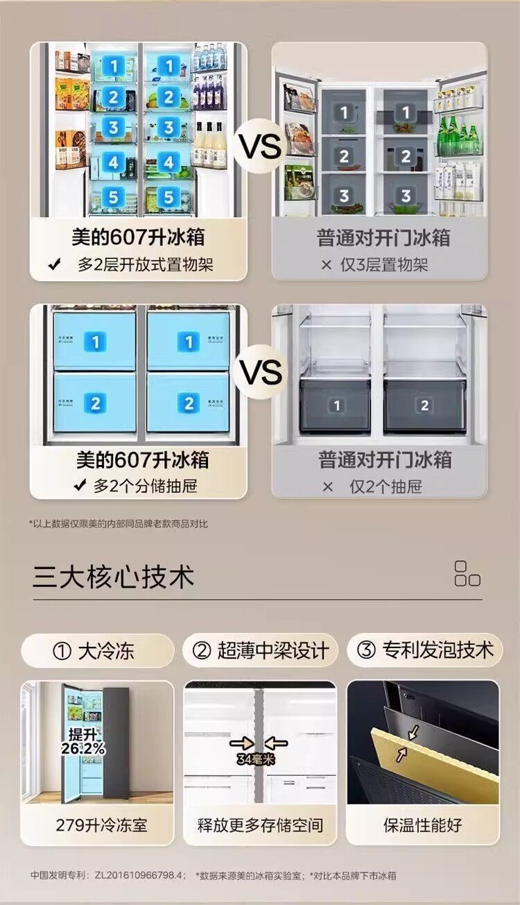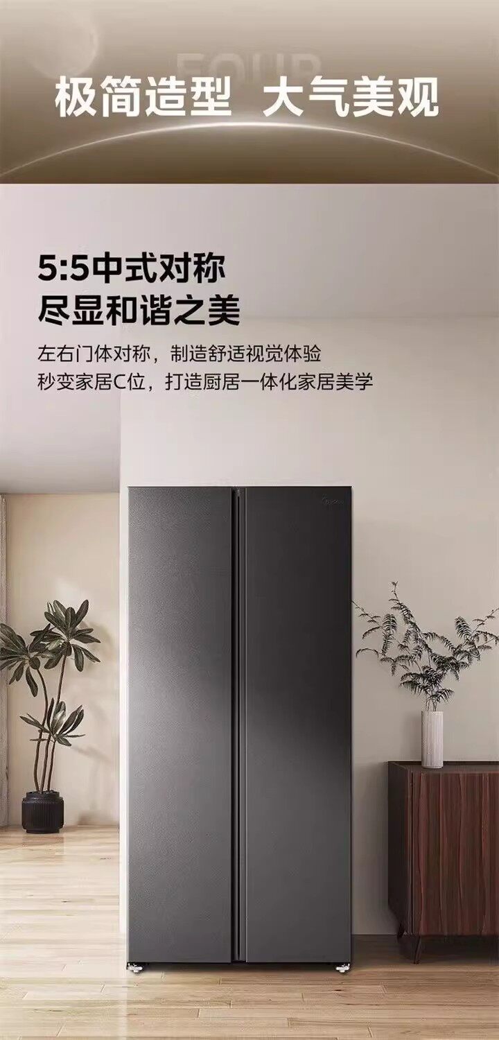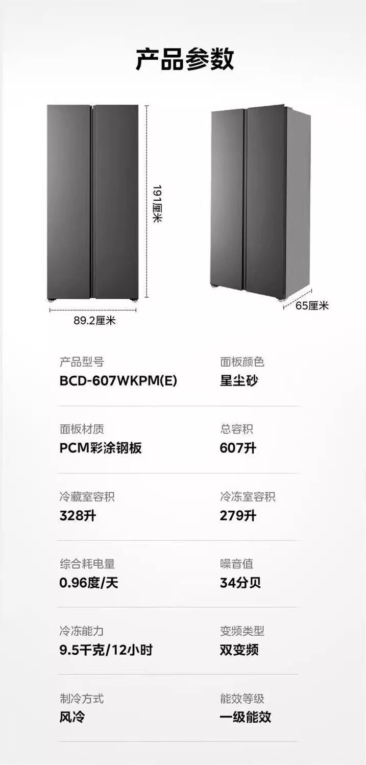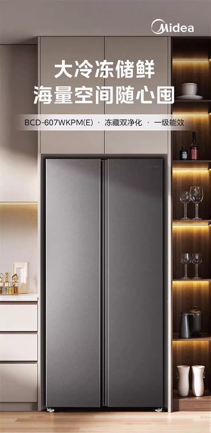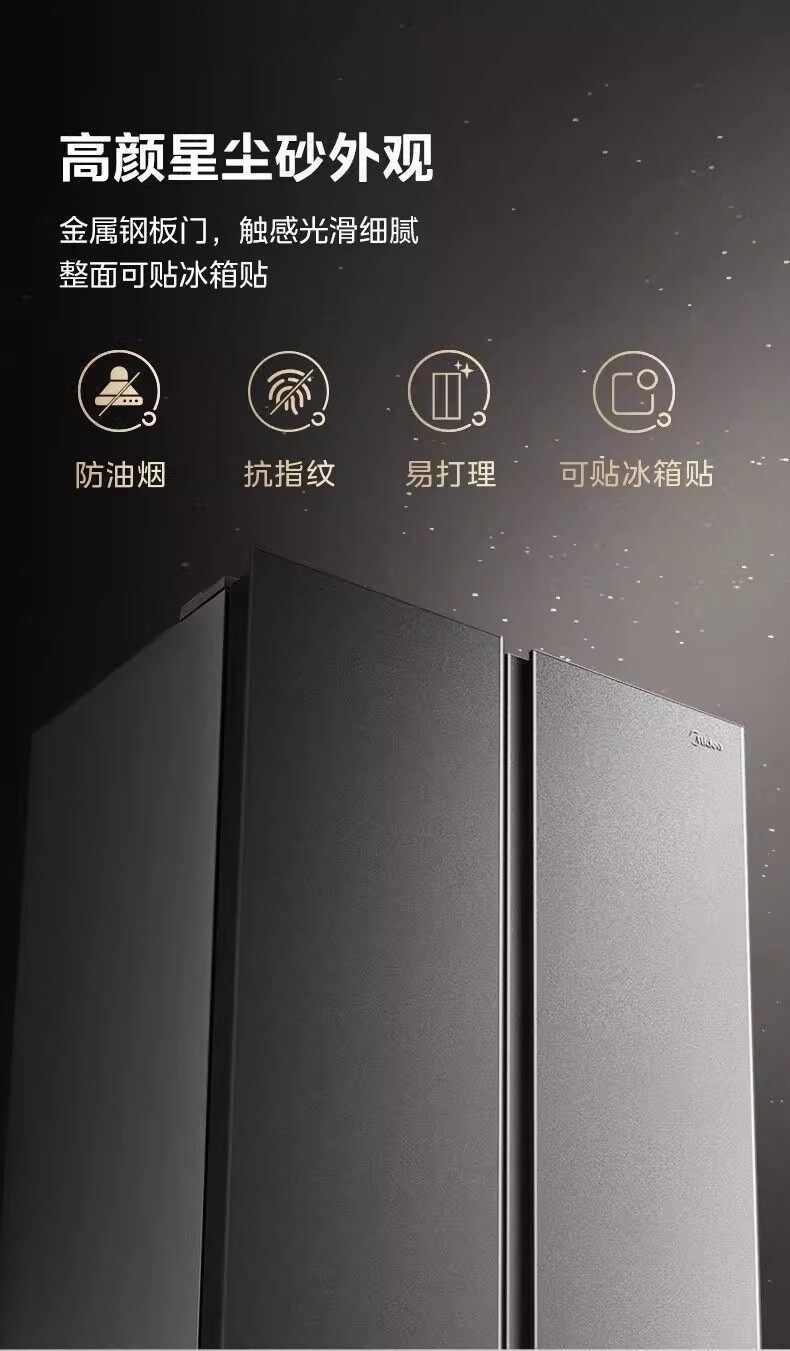 美的BCD-607WKPM(E)星尘砂双开门家用冰箱大容量风冷无霜一级能效