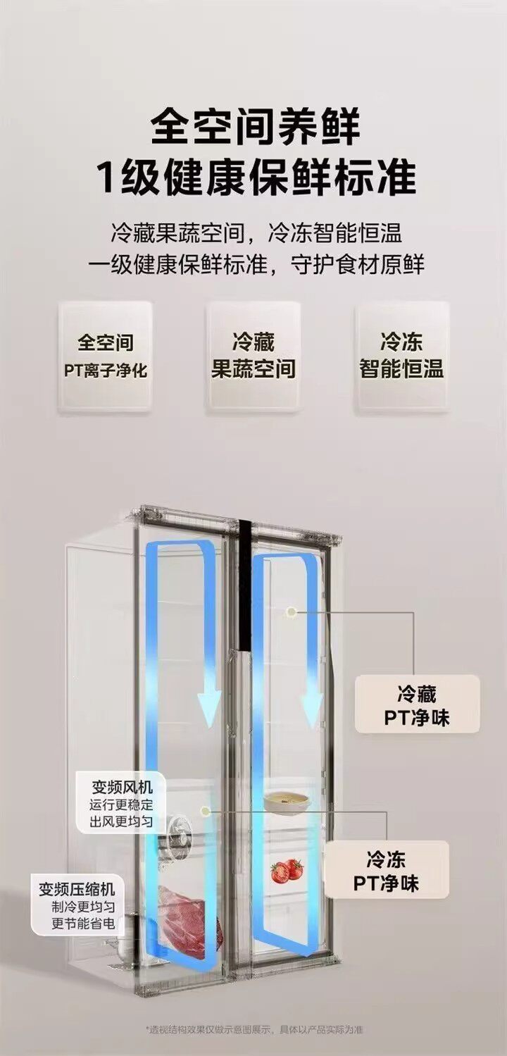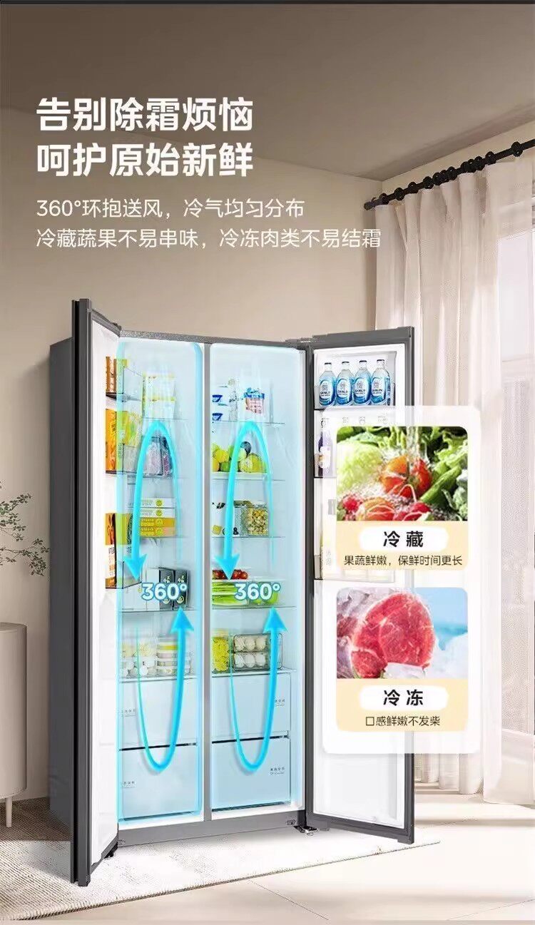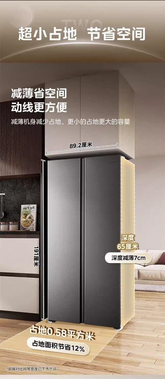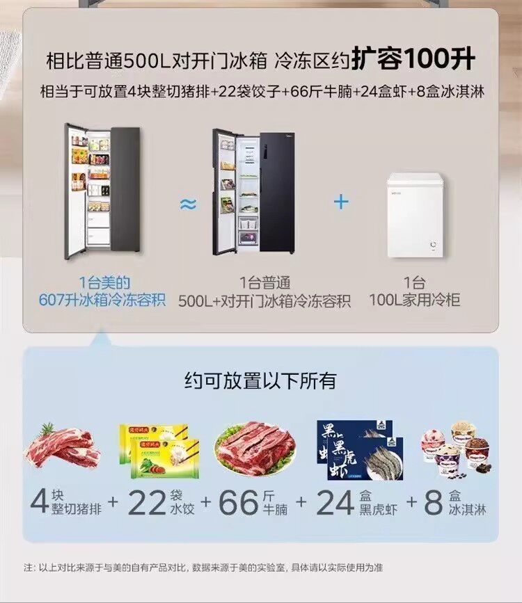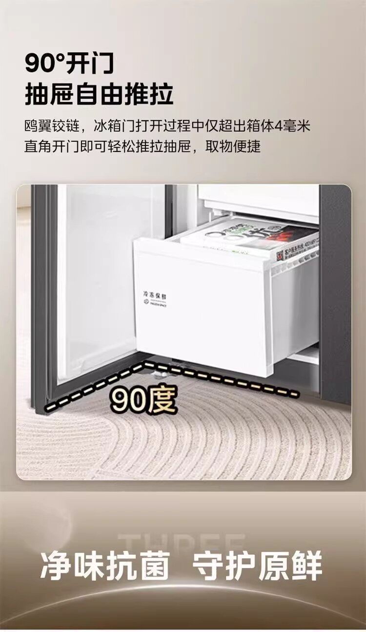 美的BCD-607WKPM(E)星尘砂双开门家用冰箱大容量风冷无霜一级能效