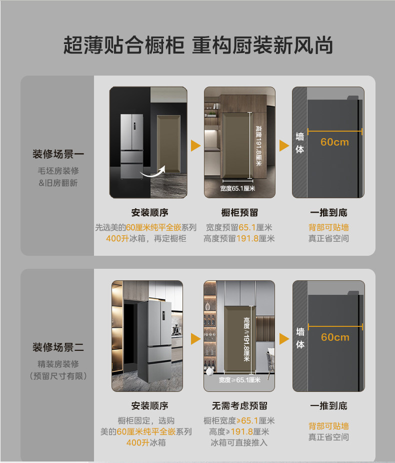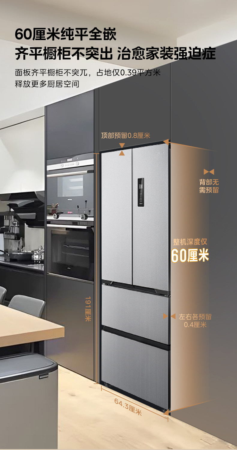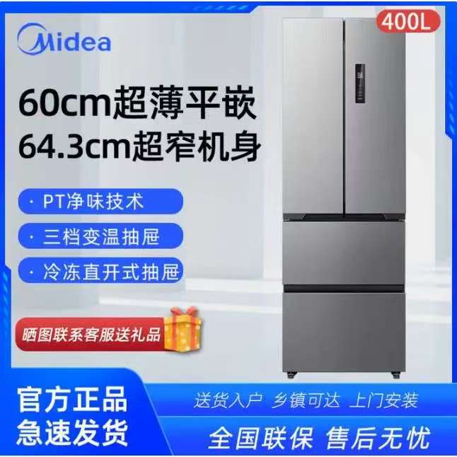 美的超薄417冰箱法式多门双开四门家用嵌入式一级能效MR-417WFPE