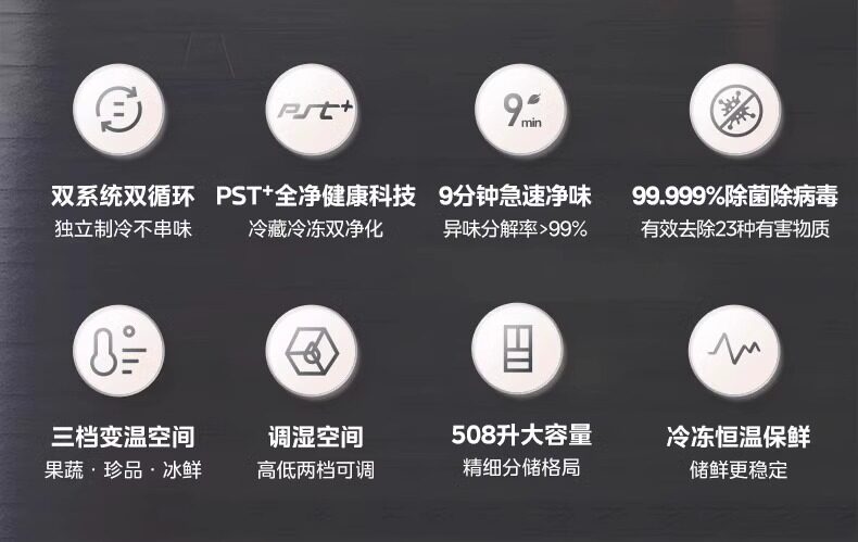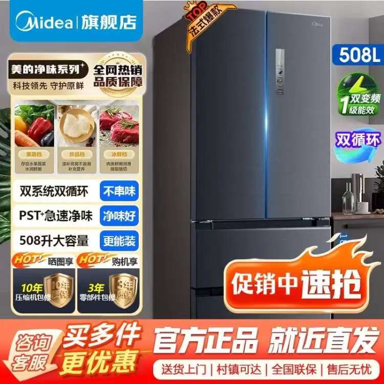 美的508L法式多门双系统双循环一级大容量冰箱 BCD-508WTPZM(E)