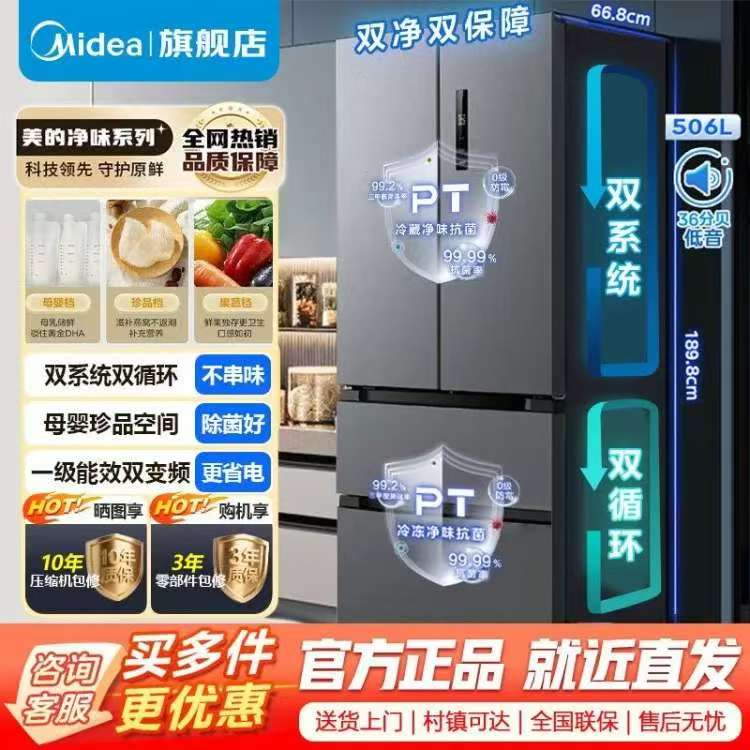 美的冰箱532法式多门四门冰箱变频一级家用无霜双系统MR-532WFPZE
