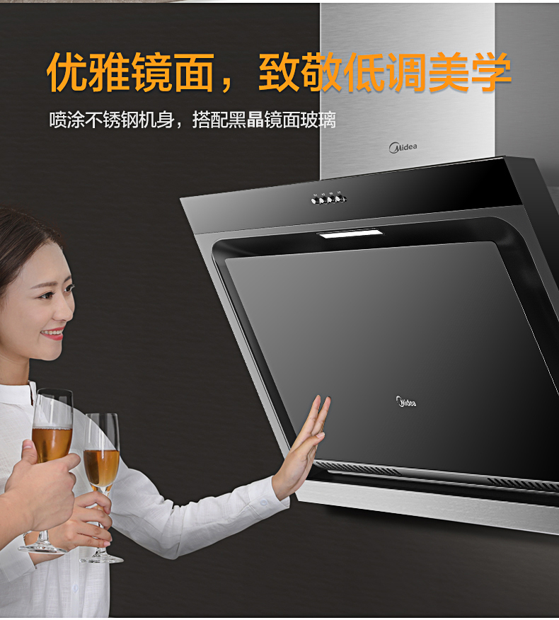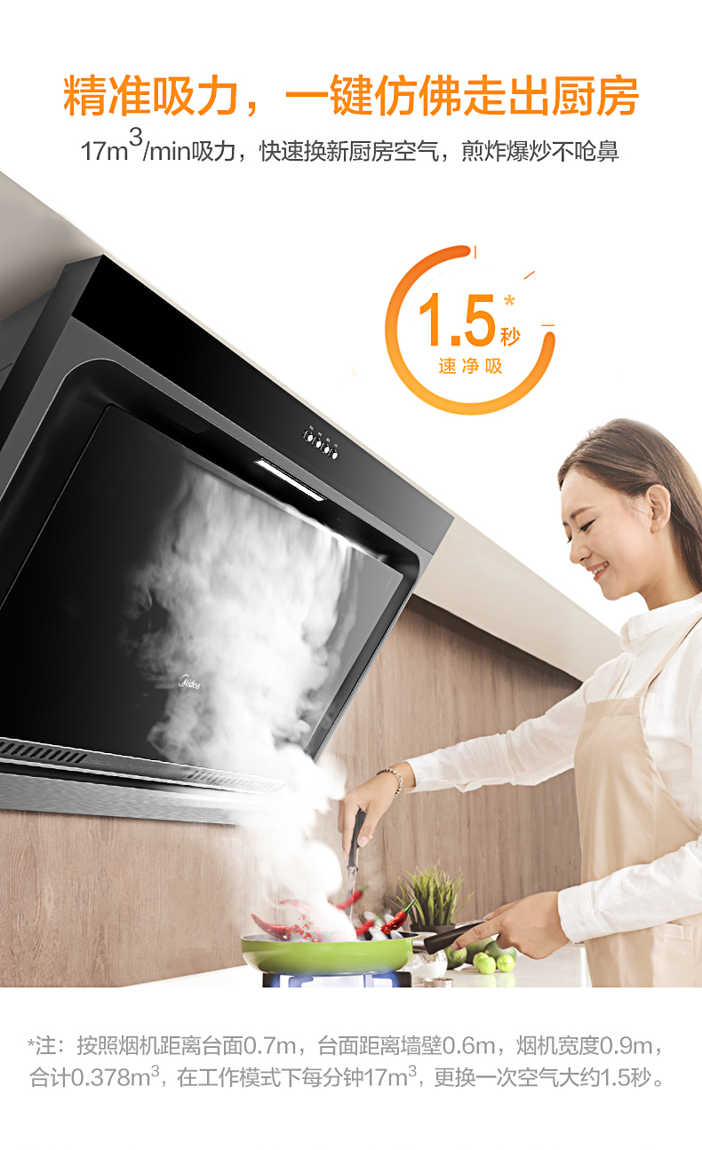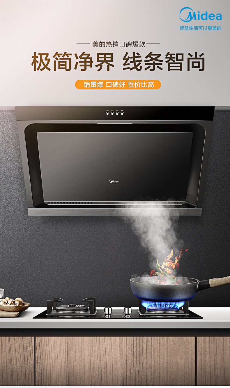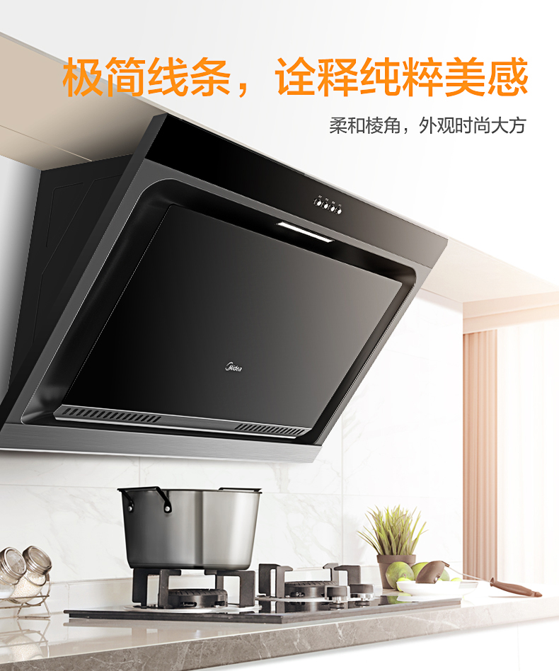 美的(Midea)抽油烟机CXW-200-J15 侧吸式17m³大吸力油烟机单机 家用厨房易清洁面板抽烟机