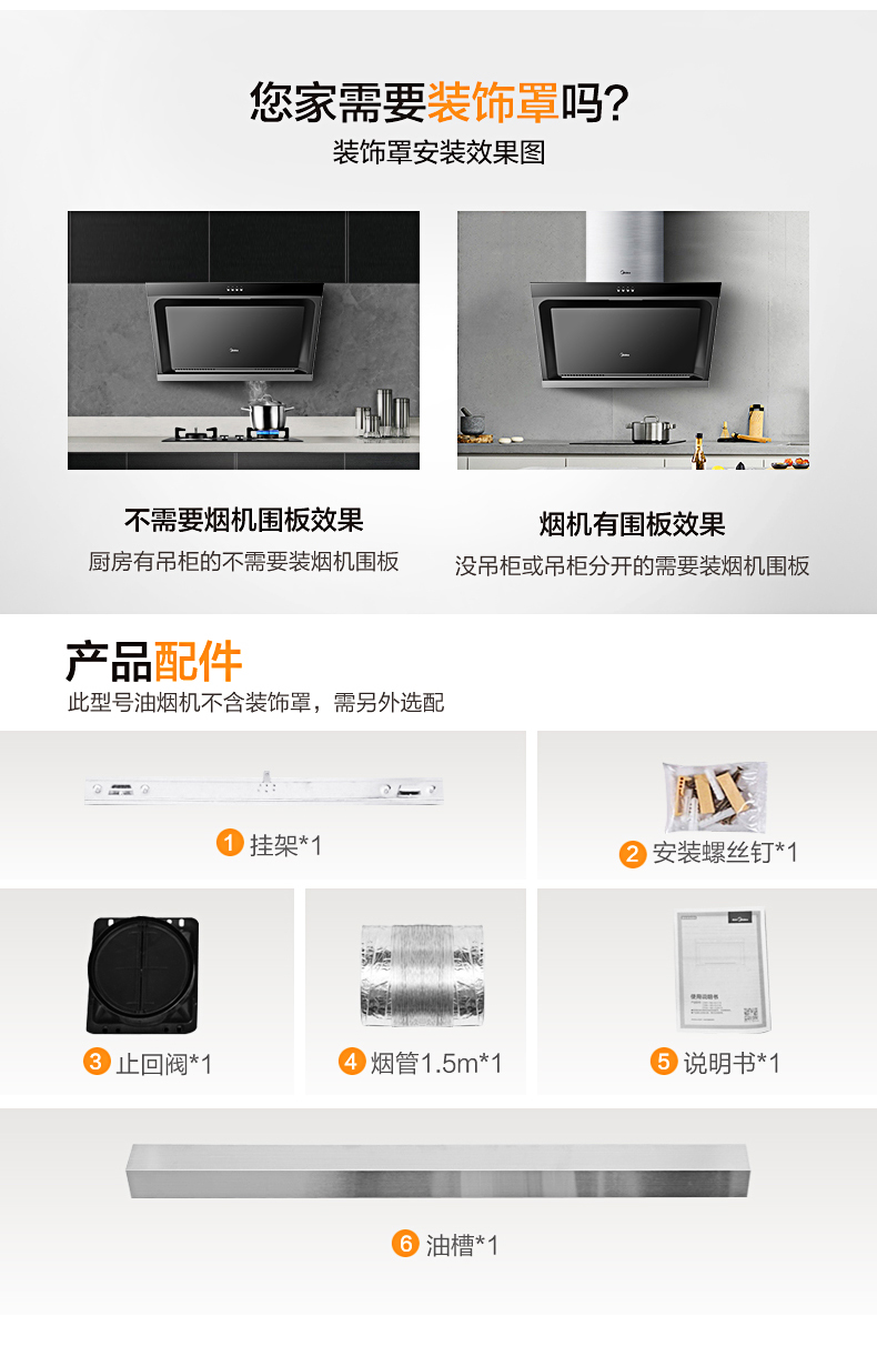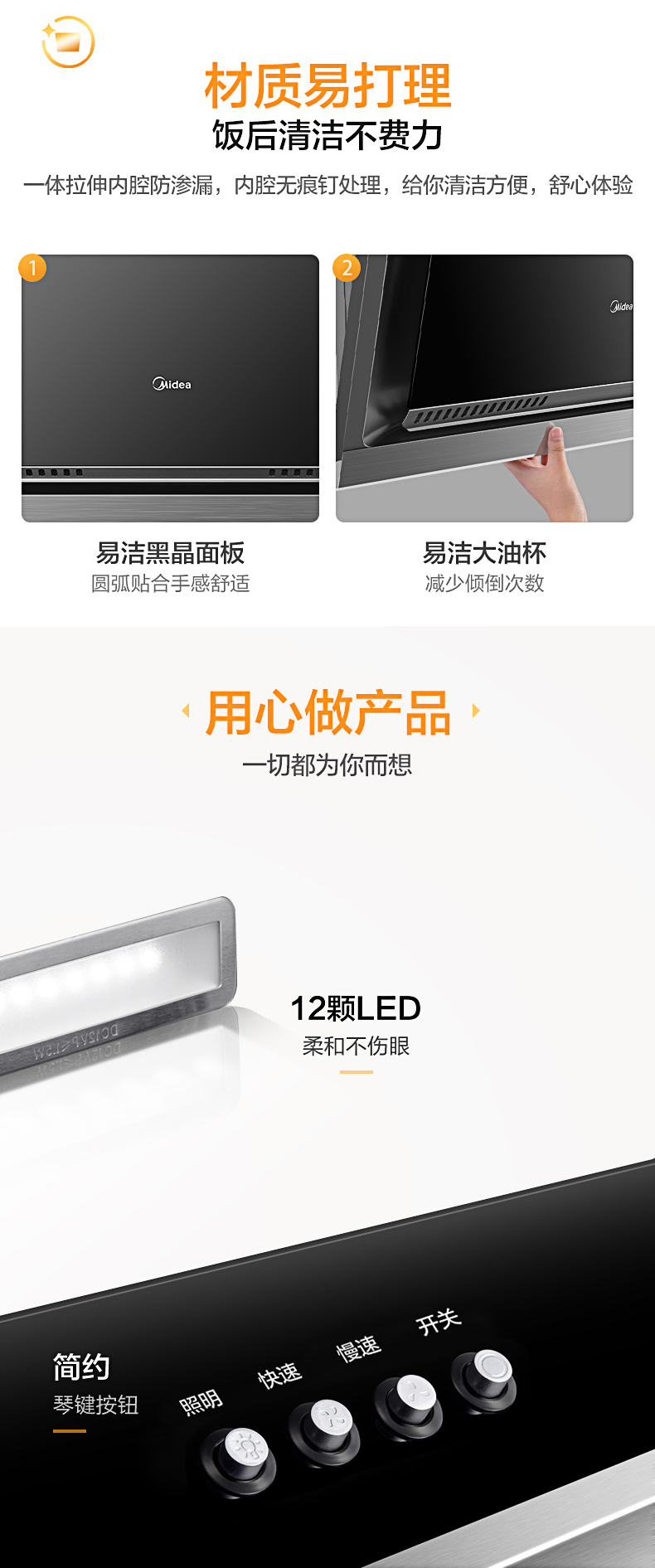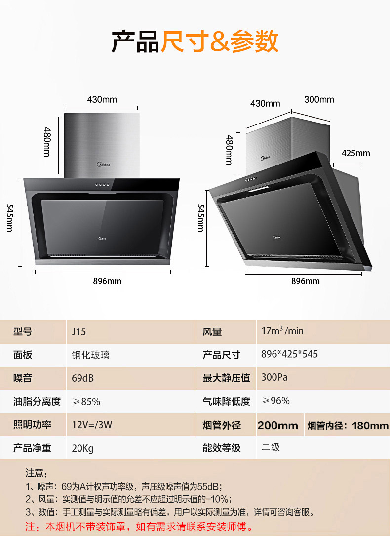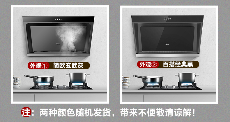 美的(Midea)抽油烟机CXW-200-J15 侧吸式17m³大吸力油烟机单机 家用厨房易清洁面板抽烟机
