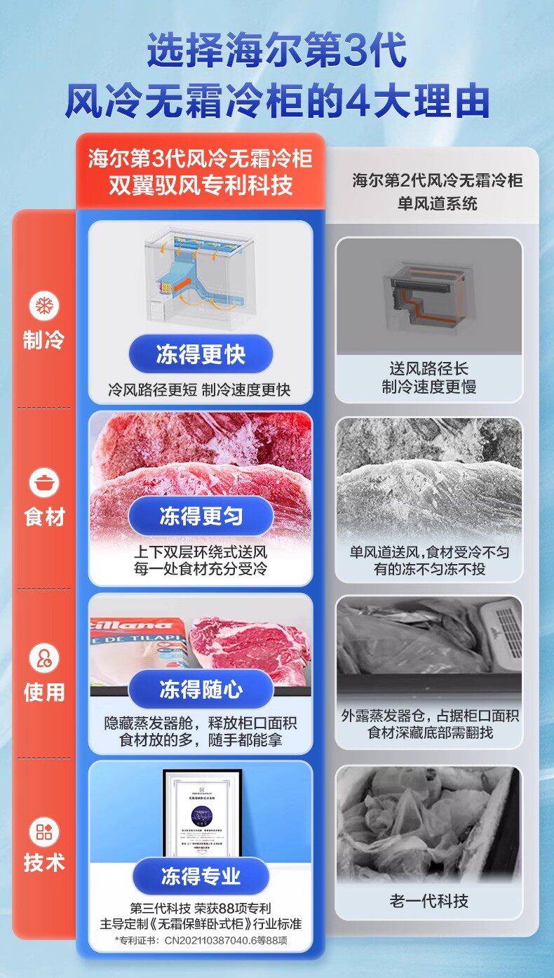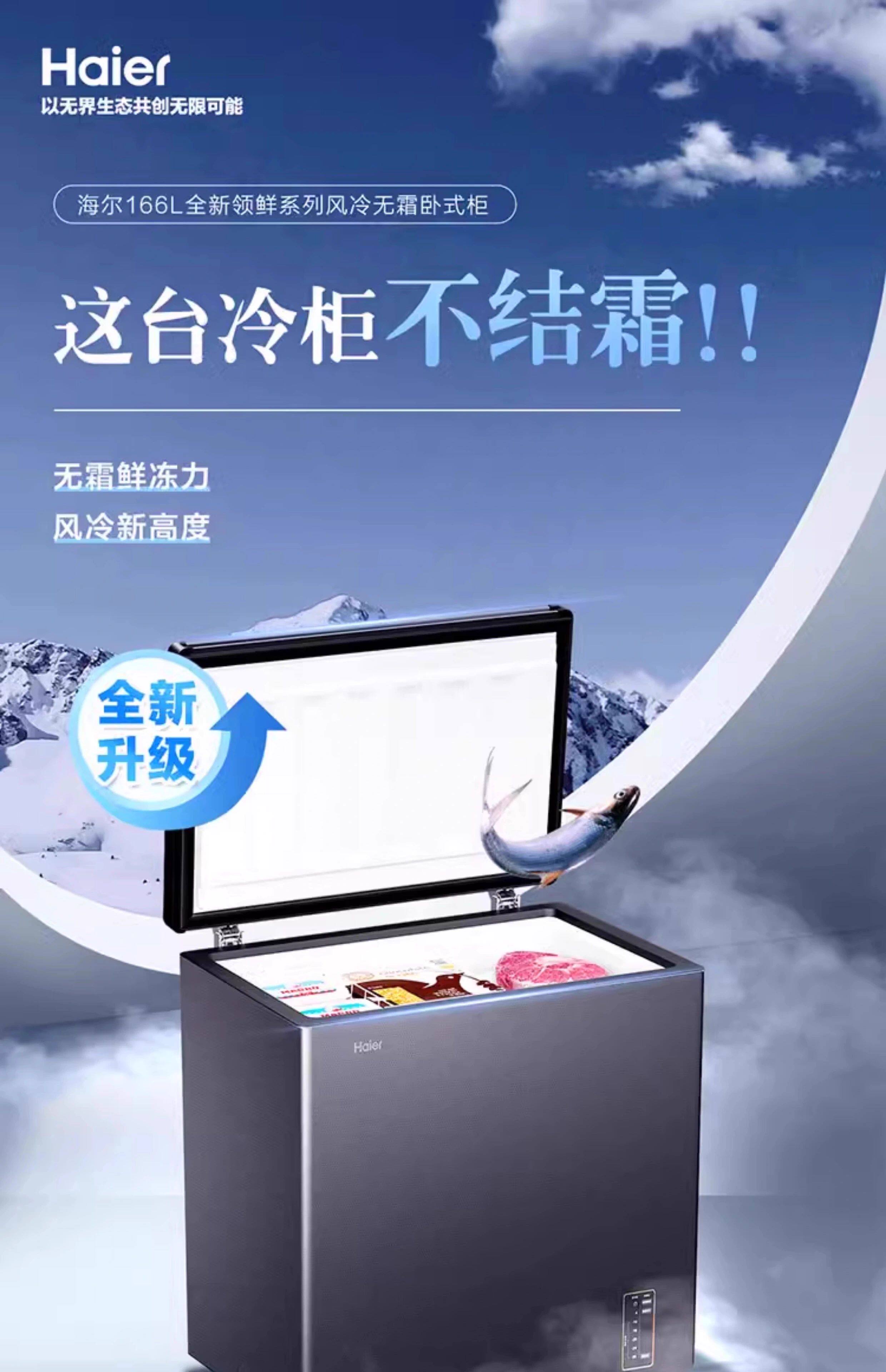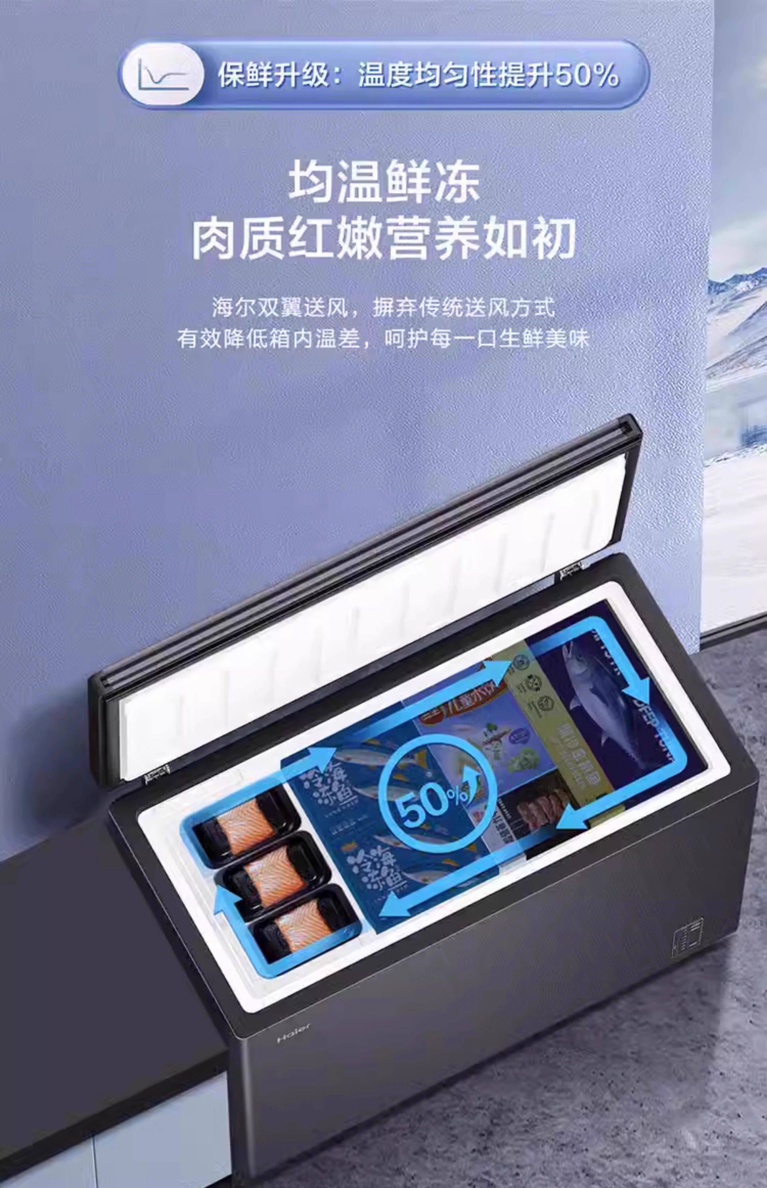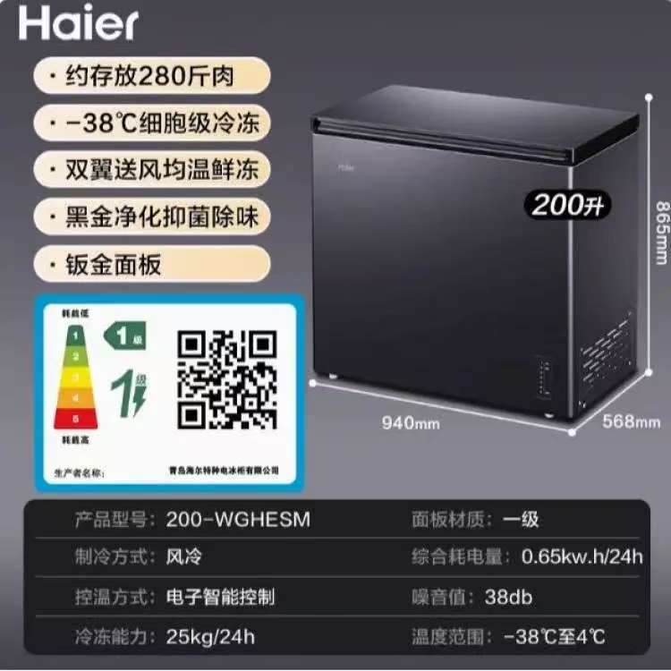 海尔冰柜家用小型风冷无霜超低温全冷冻柜200升一级能效卧式冰箱
