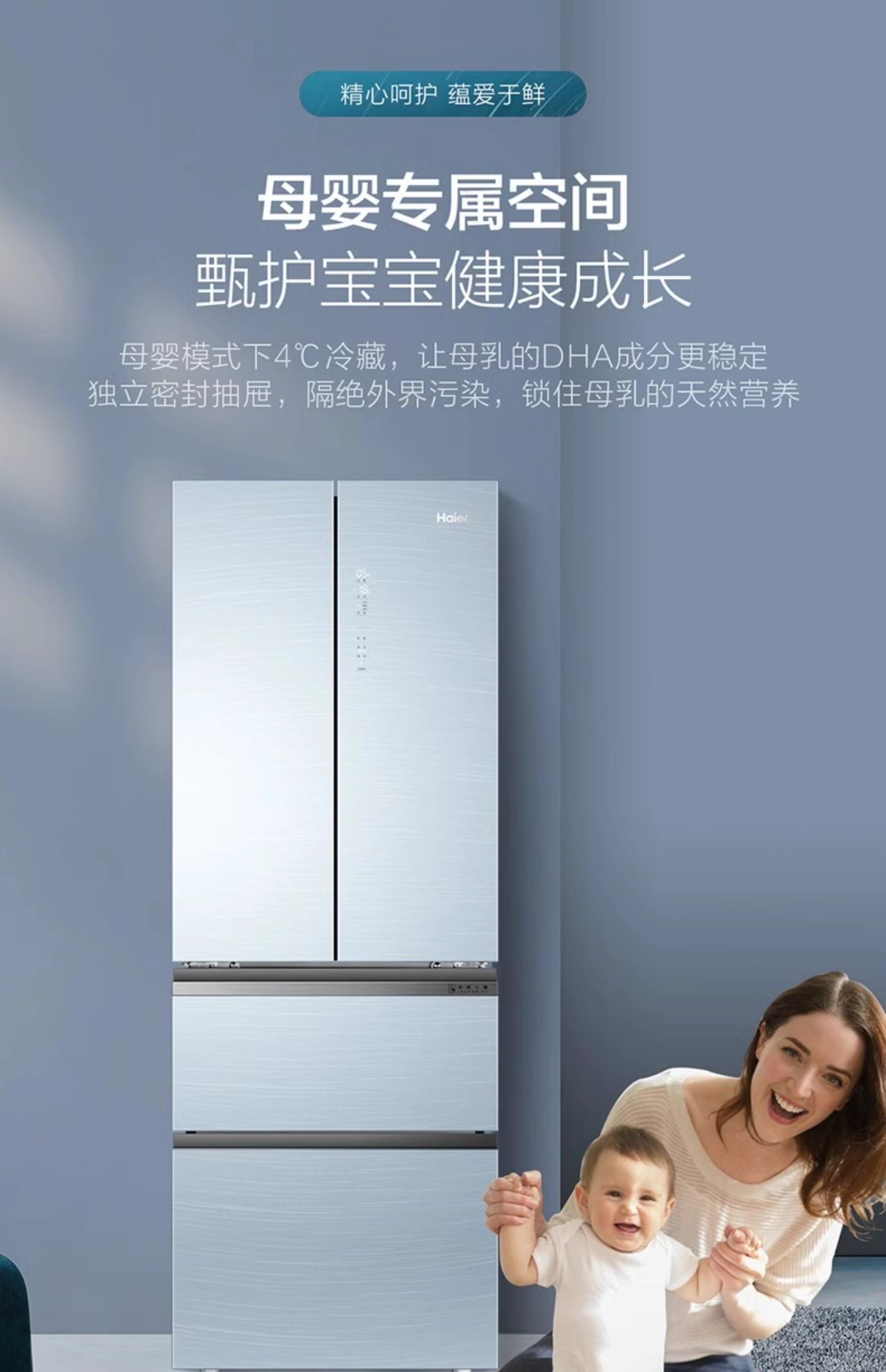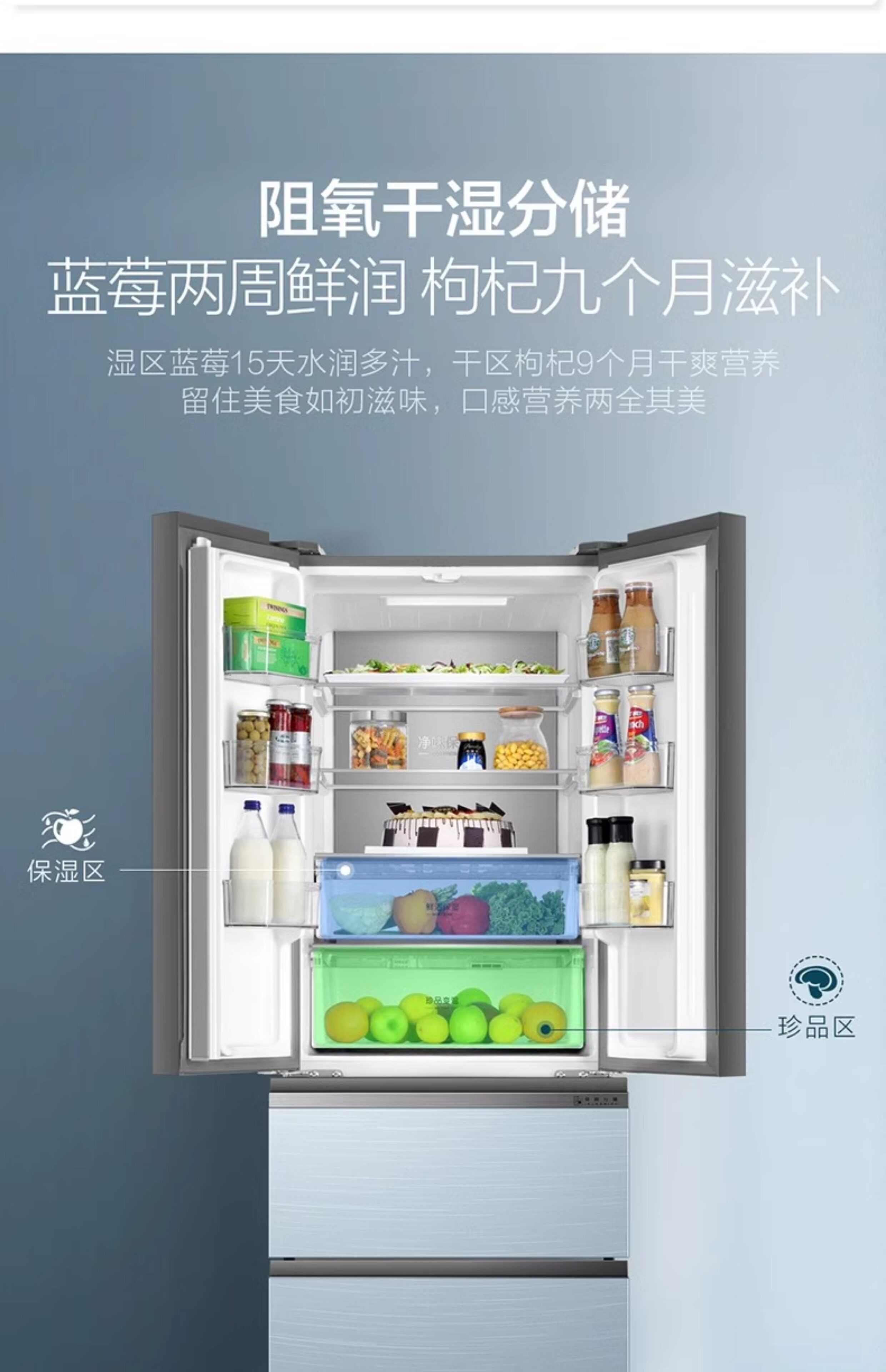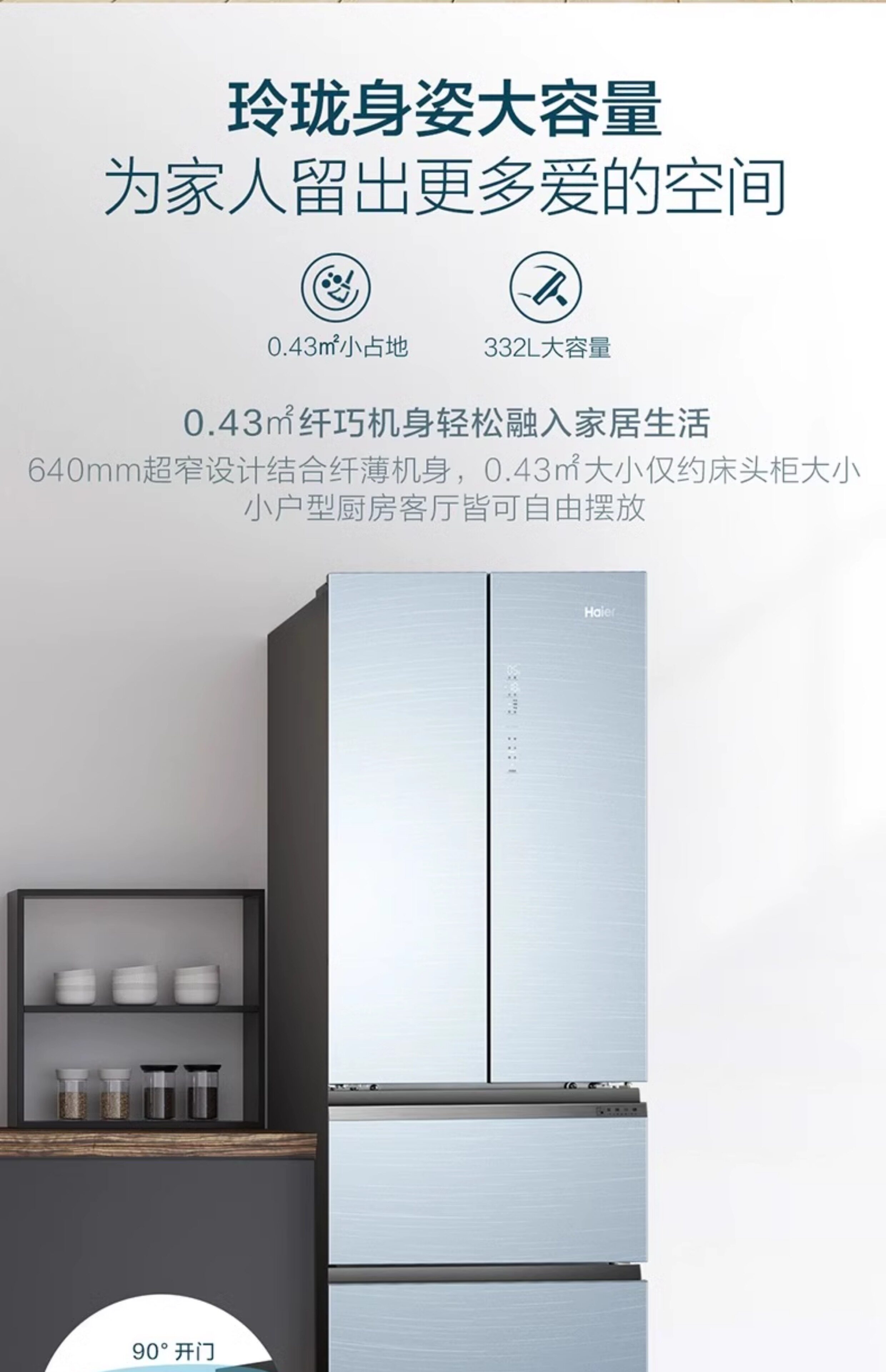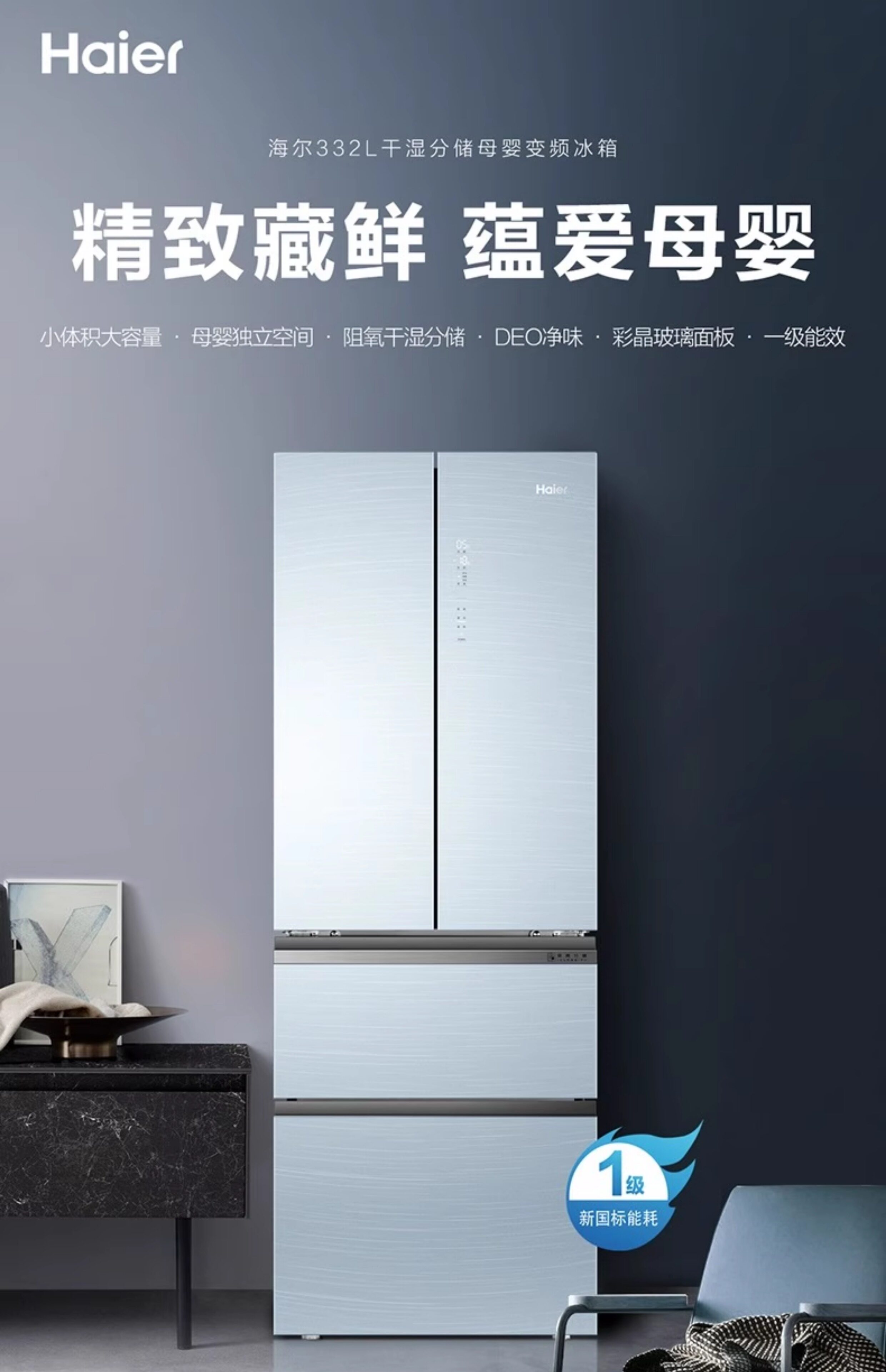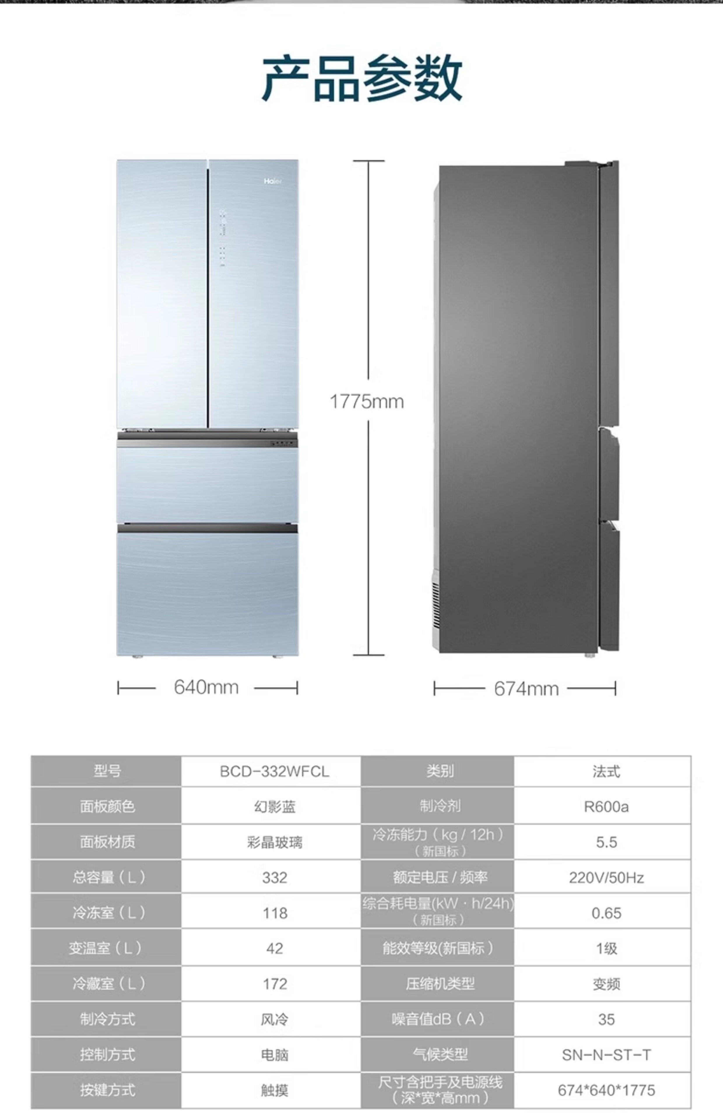 Haier/海尔 BCD-332WFCL法式332L玻璃面板多门双变频净味冰箱