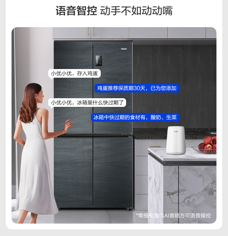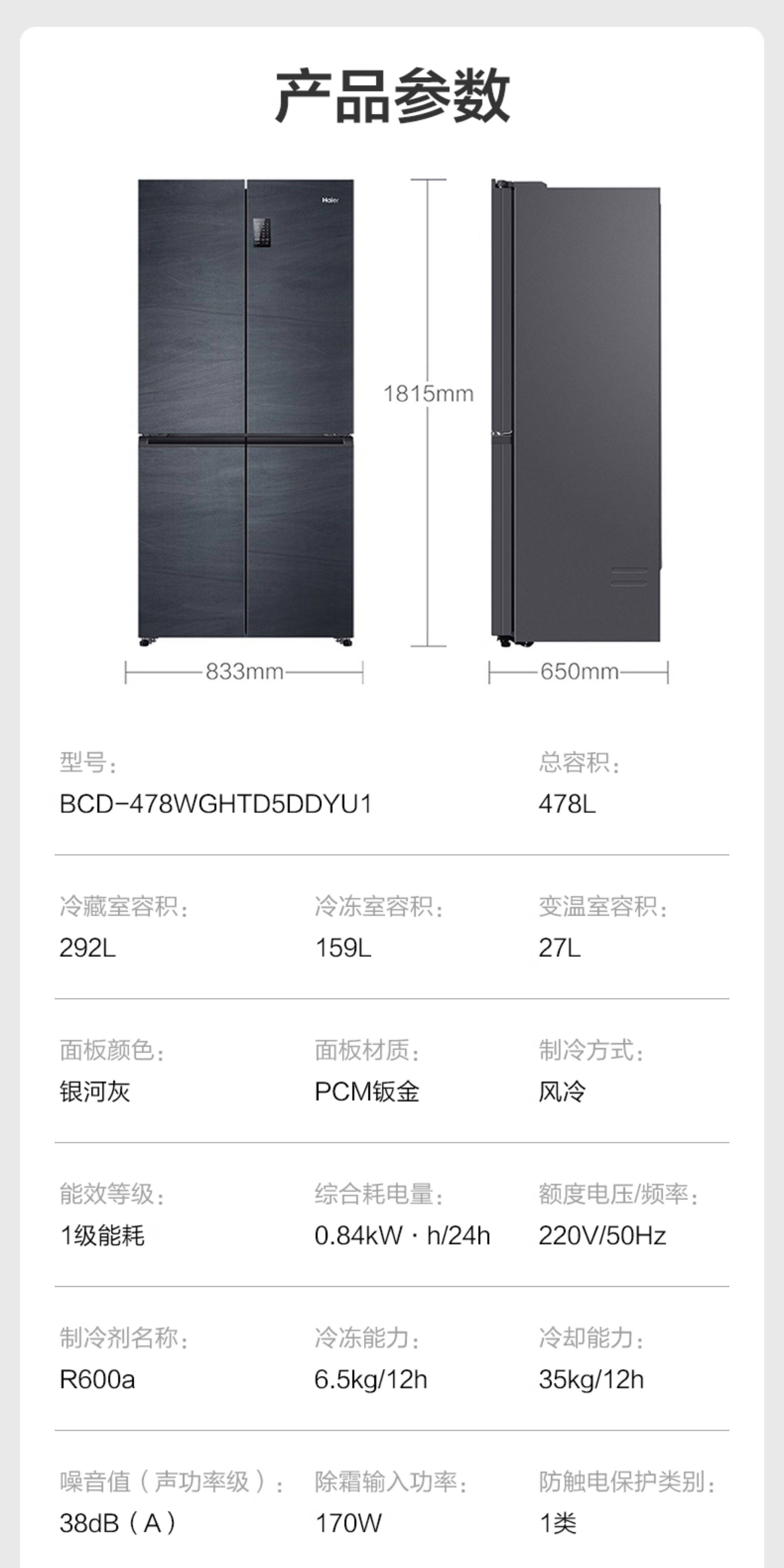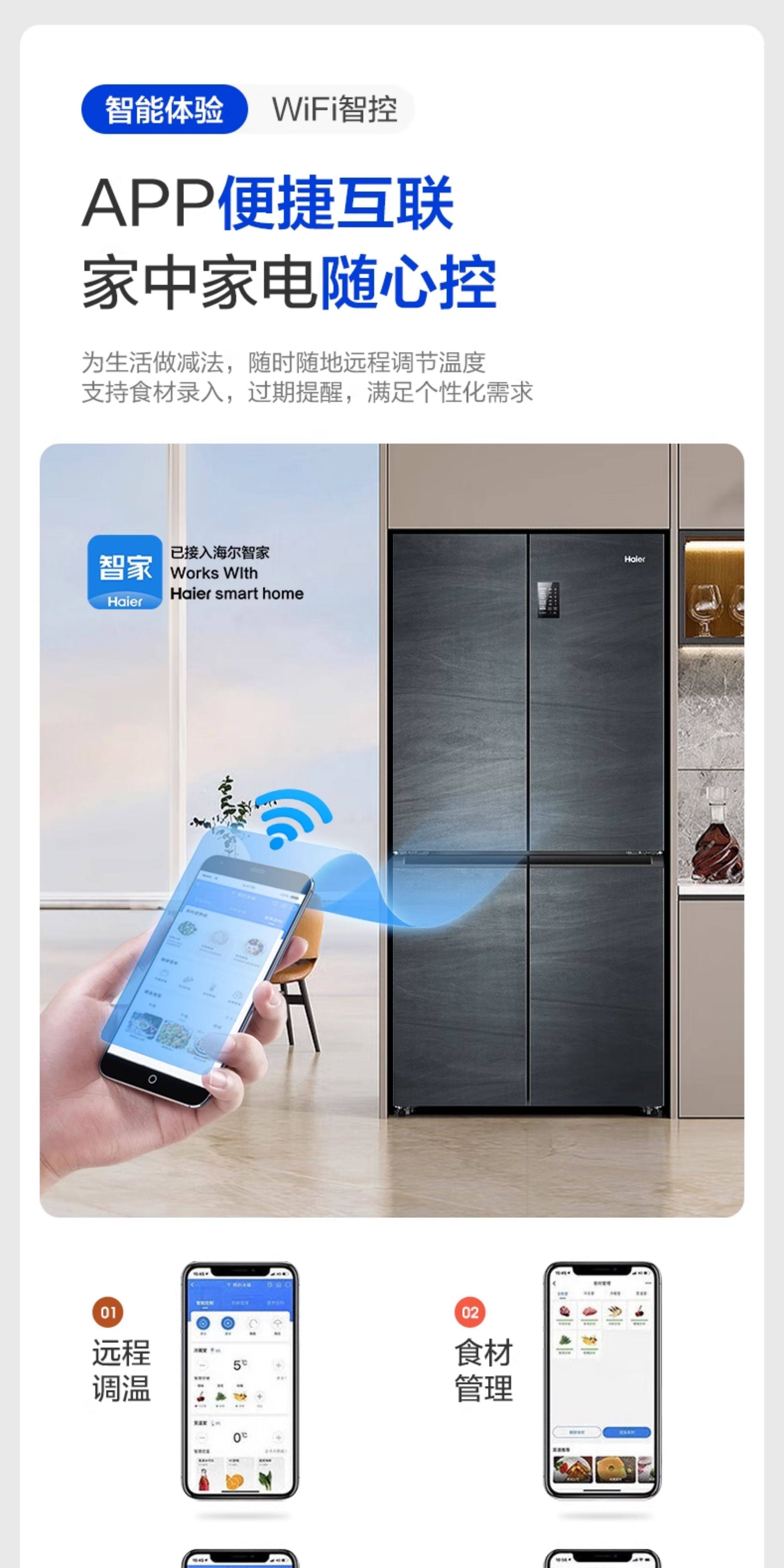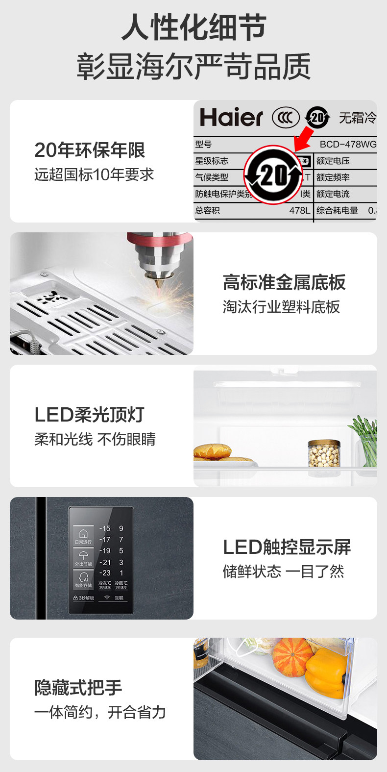 Haier/海尔BCD-478WGHTD5DDYU1变频无霜保鲜智能风冷家用十字冰箱