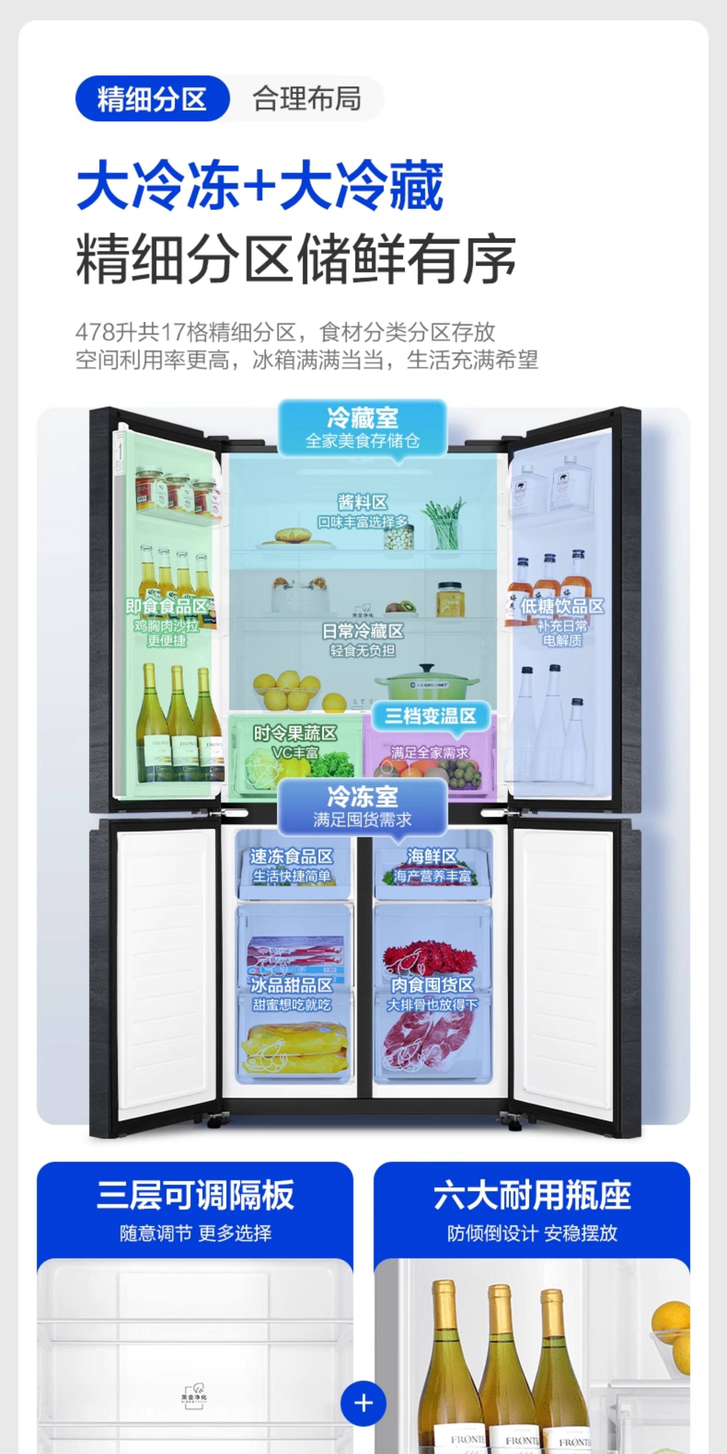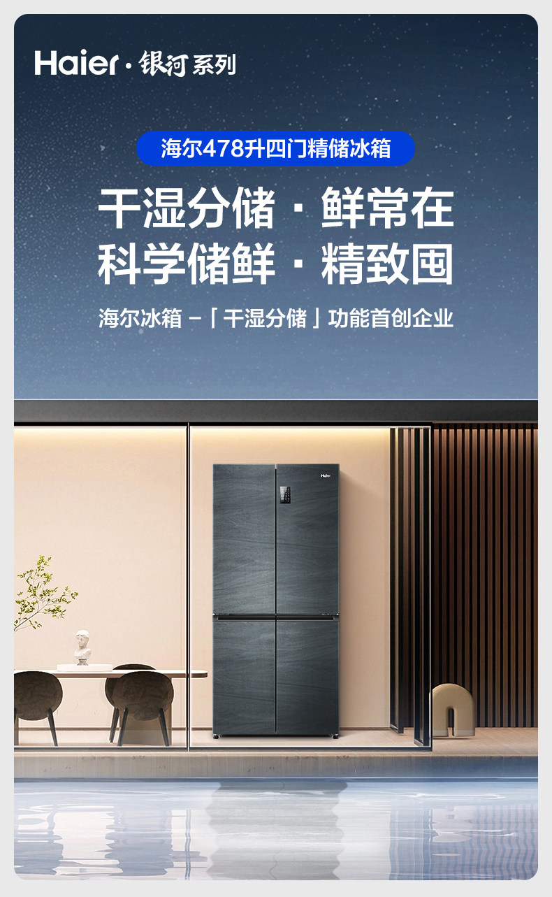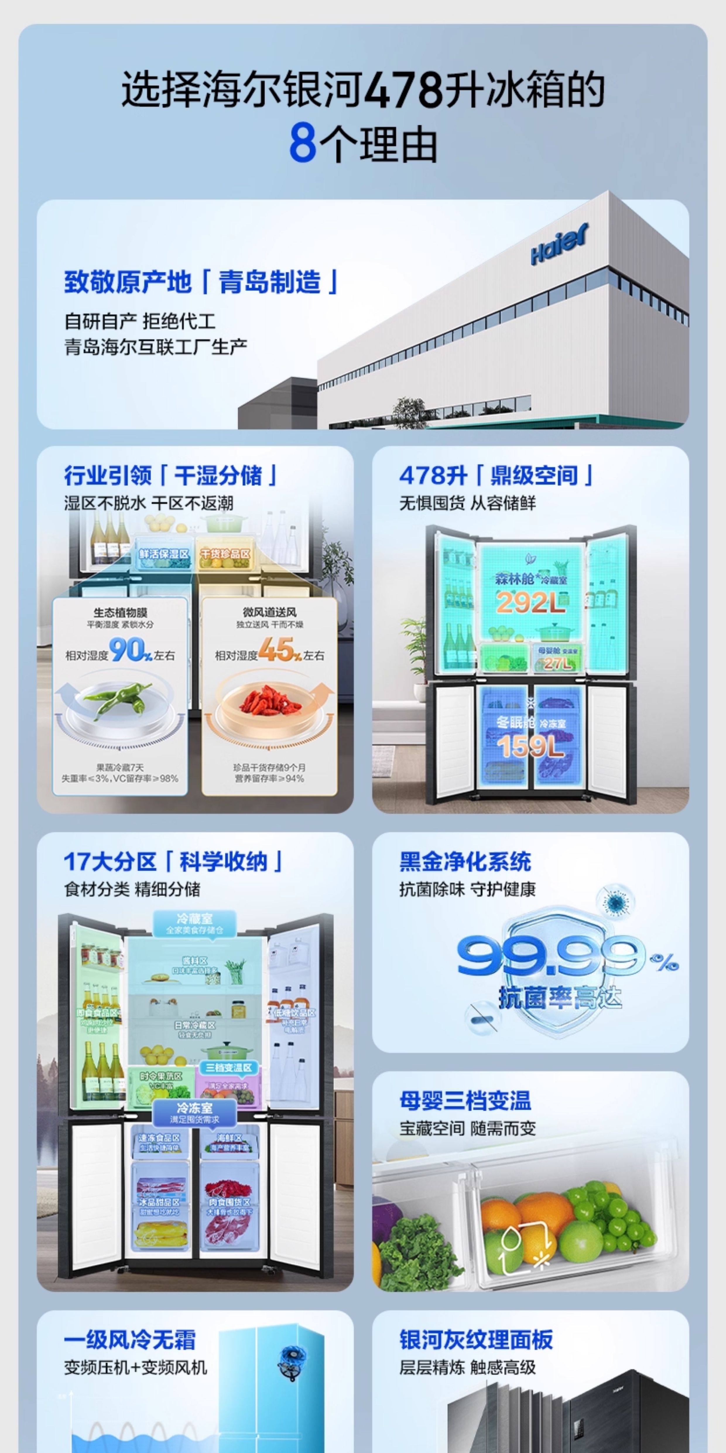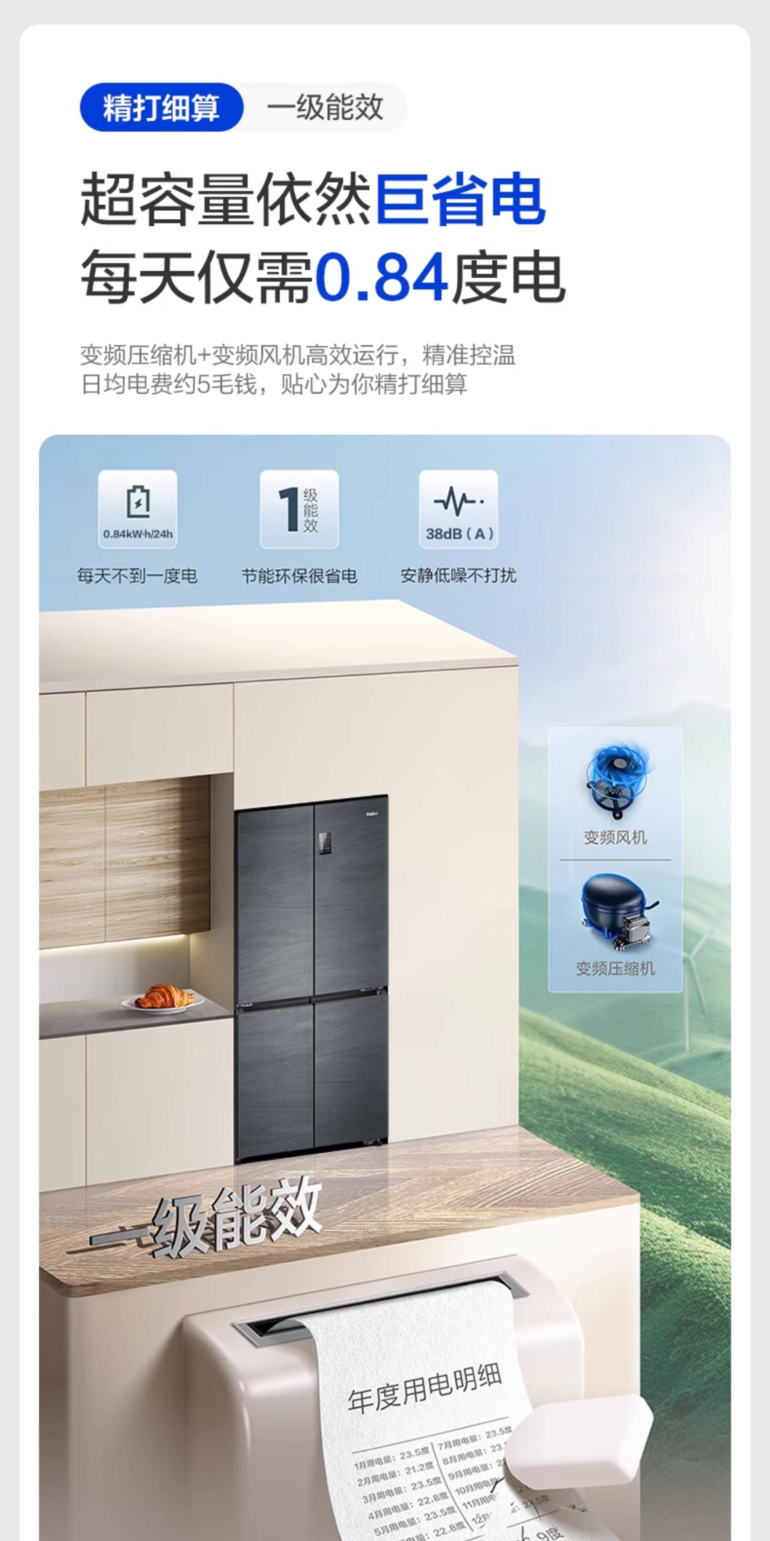 Haier/海尔BCD-478WGHTD5DDYU1变频无霜保鲜智能风冷家用十字冰箱