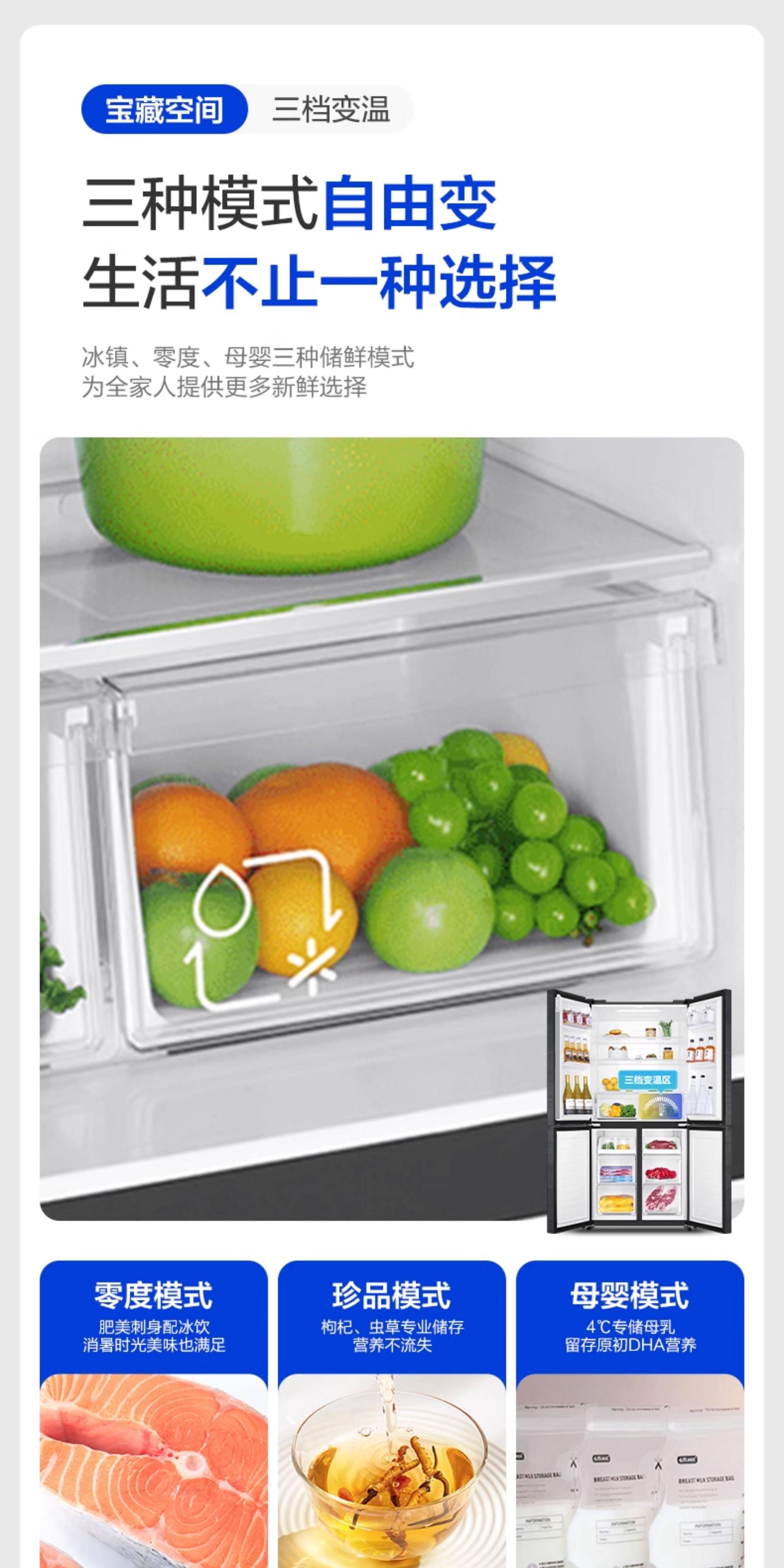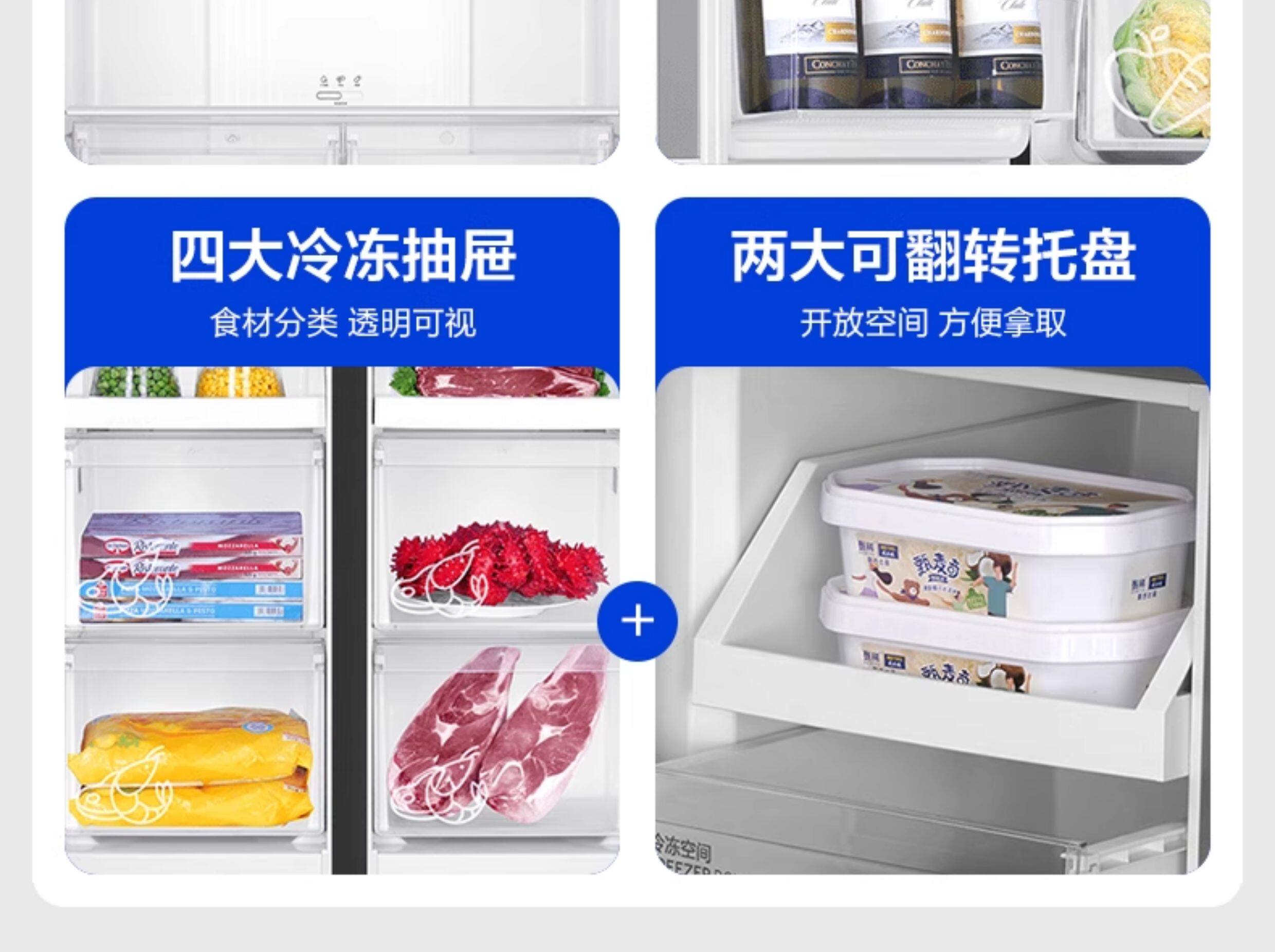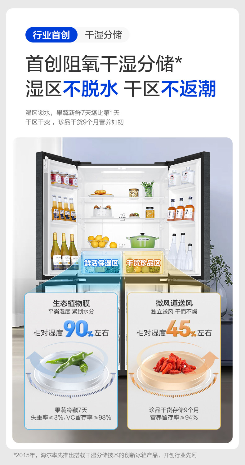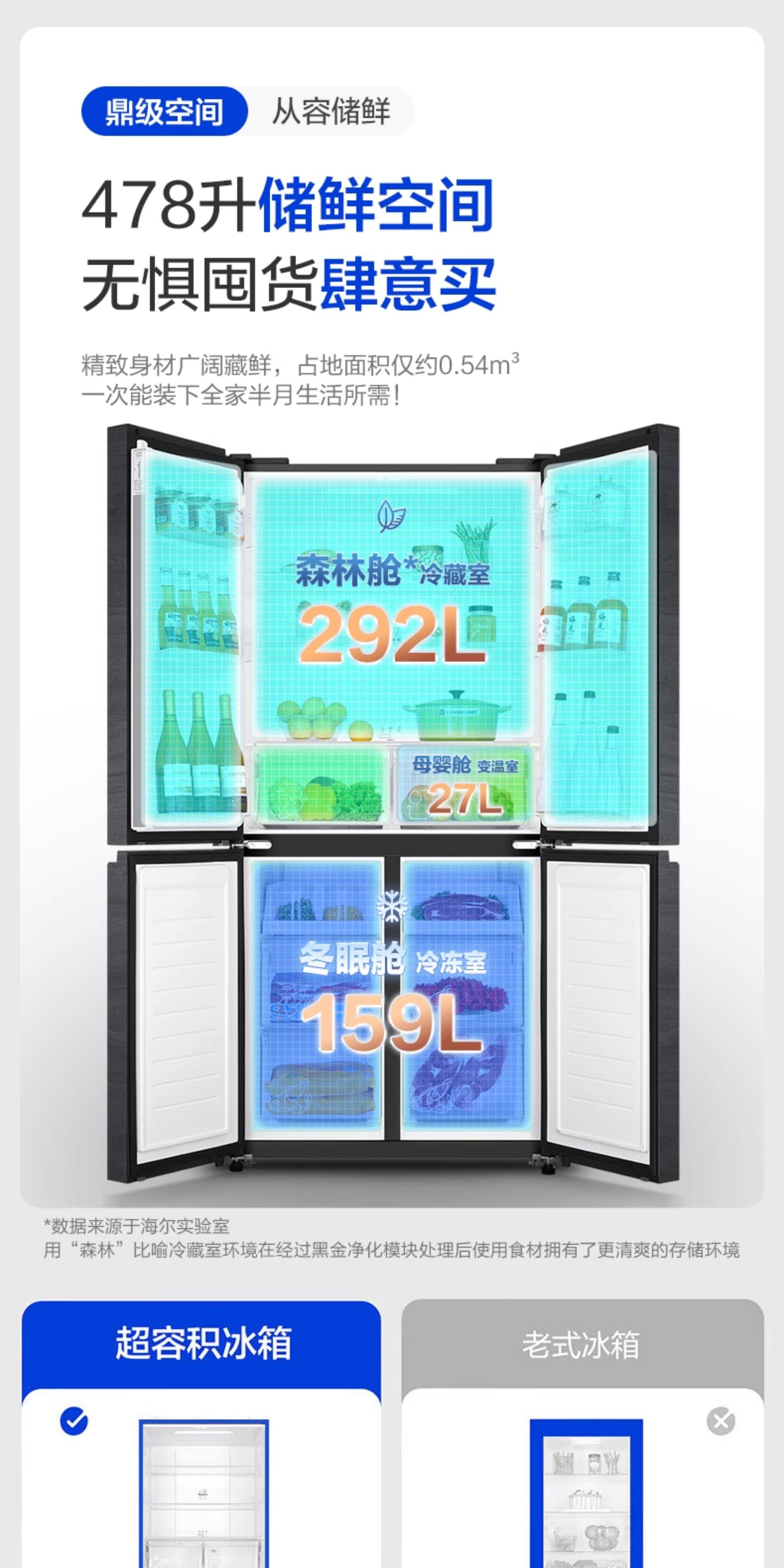 Haier/海尔BCD-478WGHTD5DDYU1变频无霜保鲜智能风冷家用十字冰箱