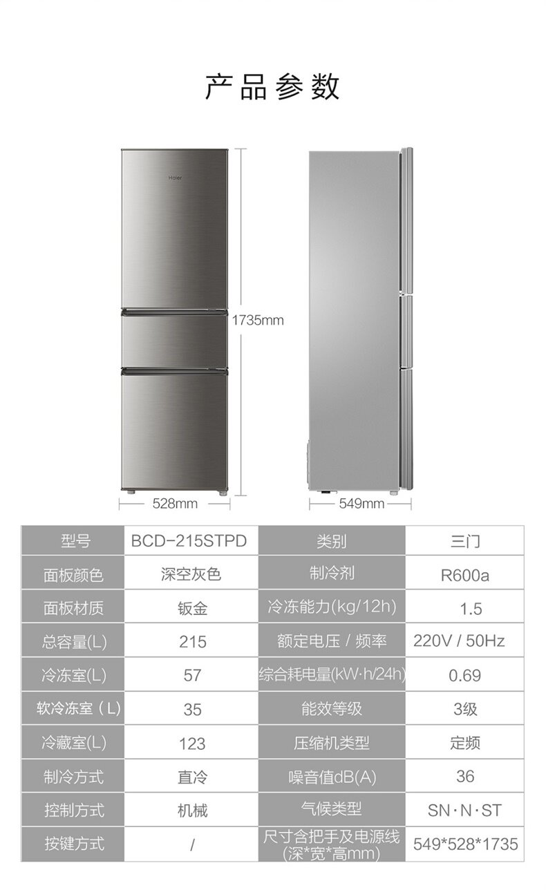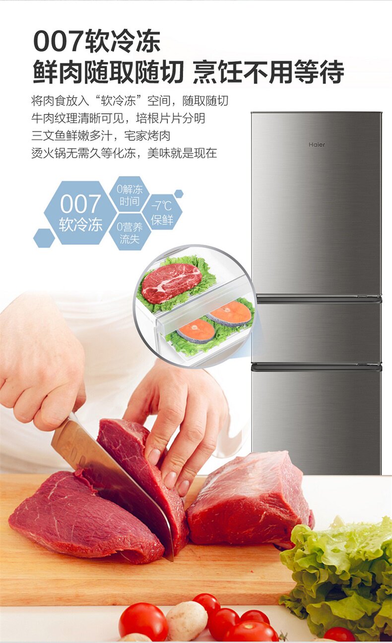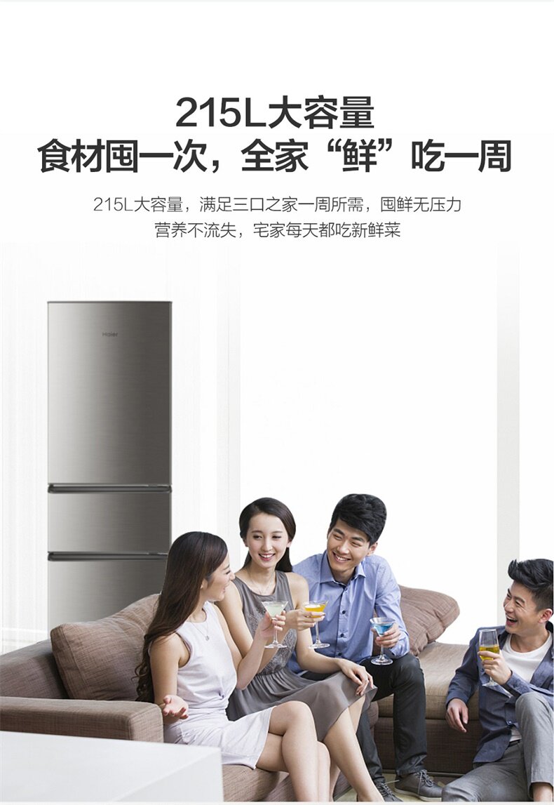 Haier/海尔 BCD-215STPD小型家用官方宿舍租房冷藏冷冻小冰箱三门