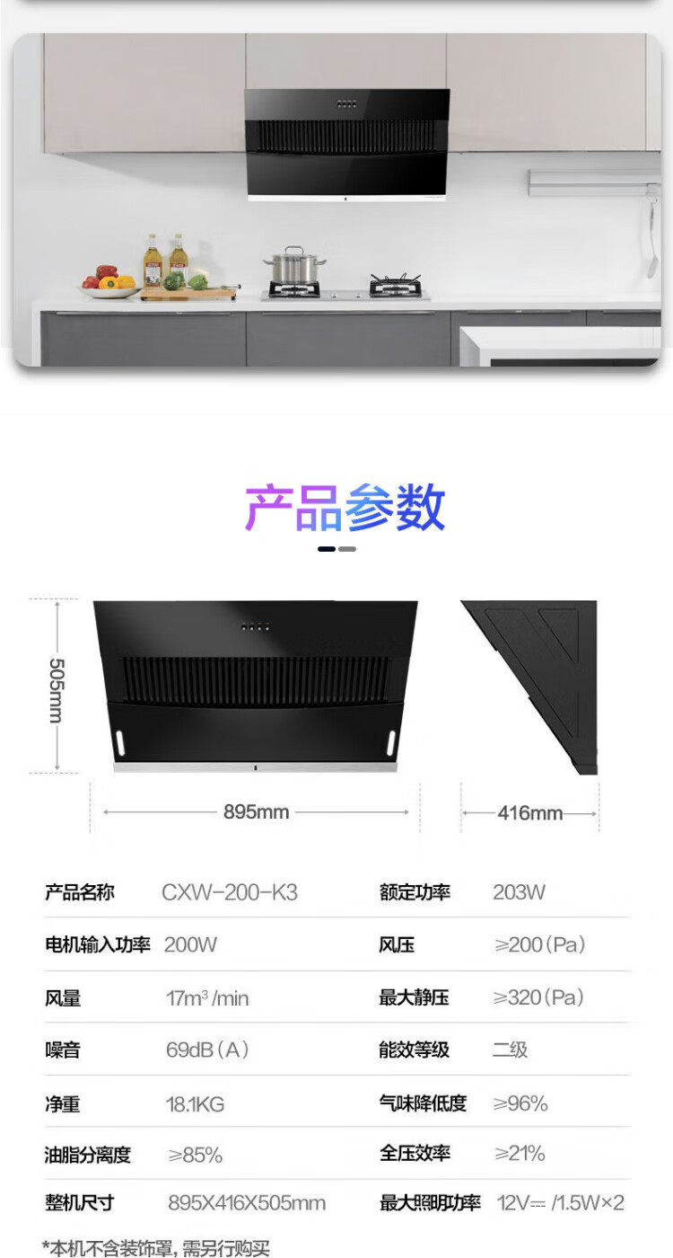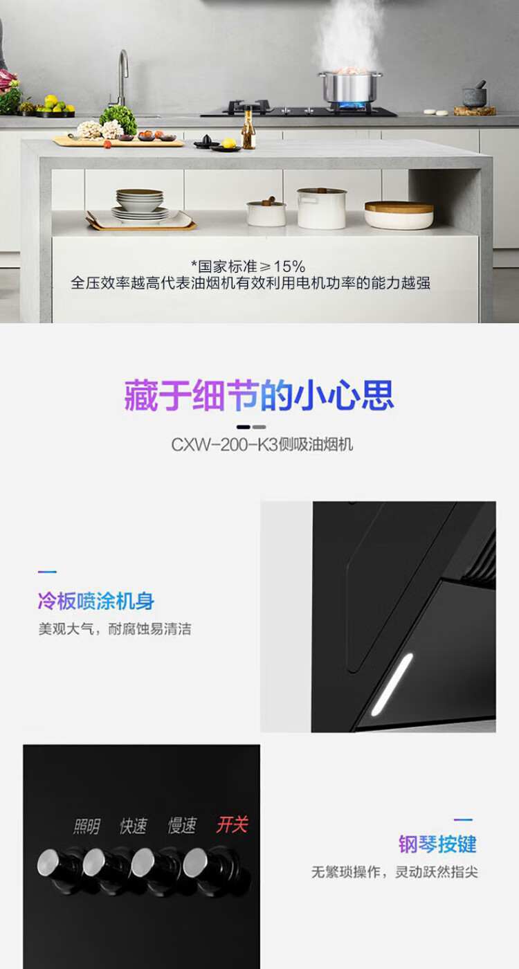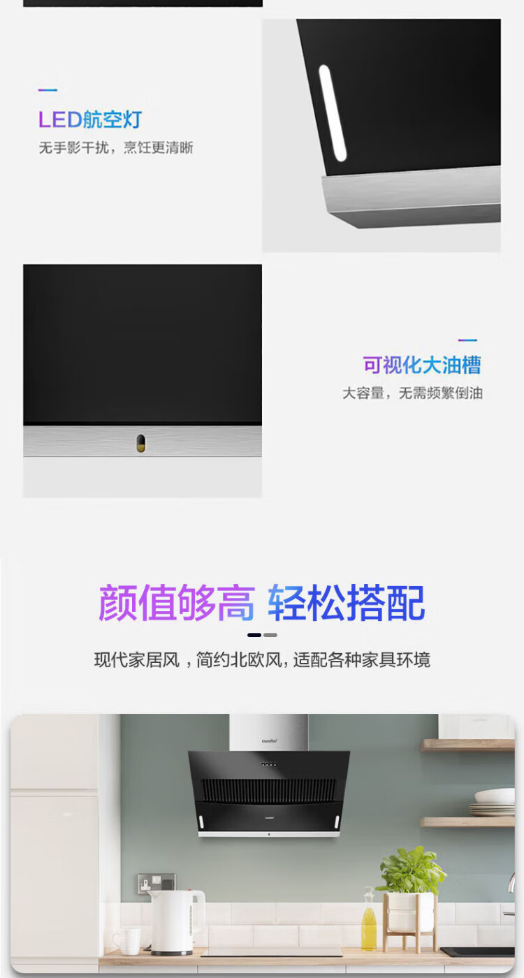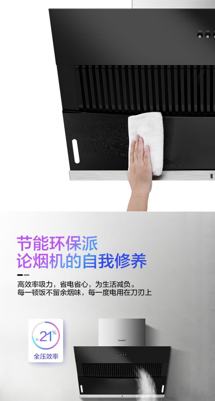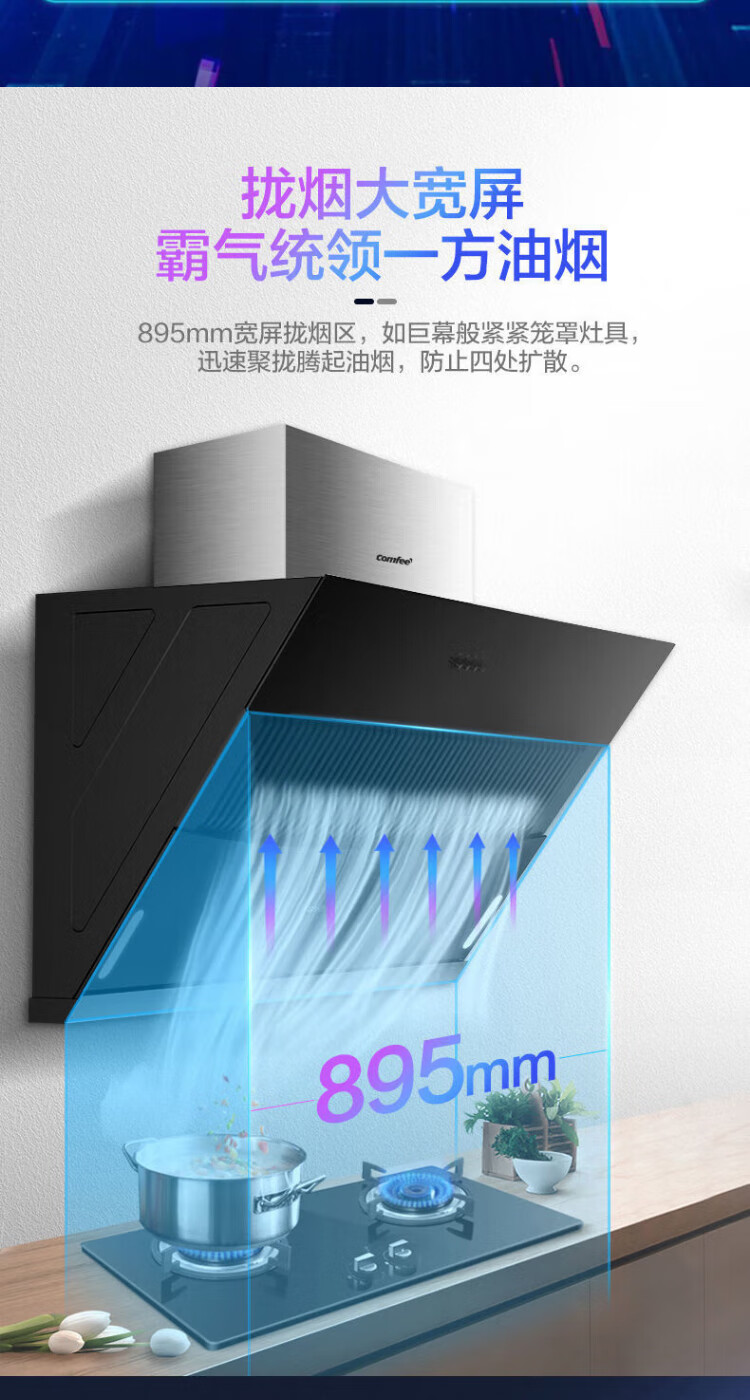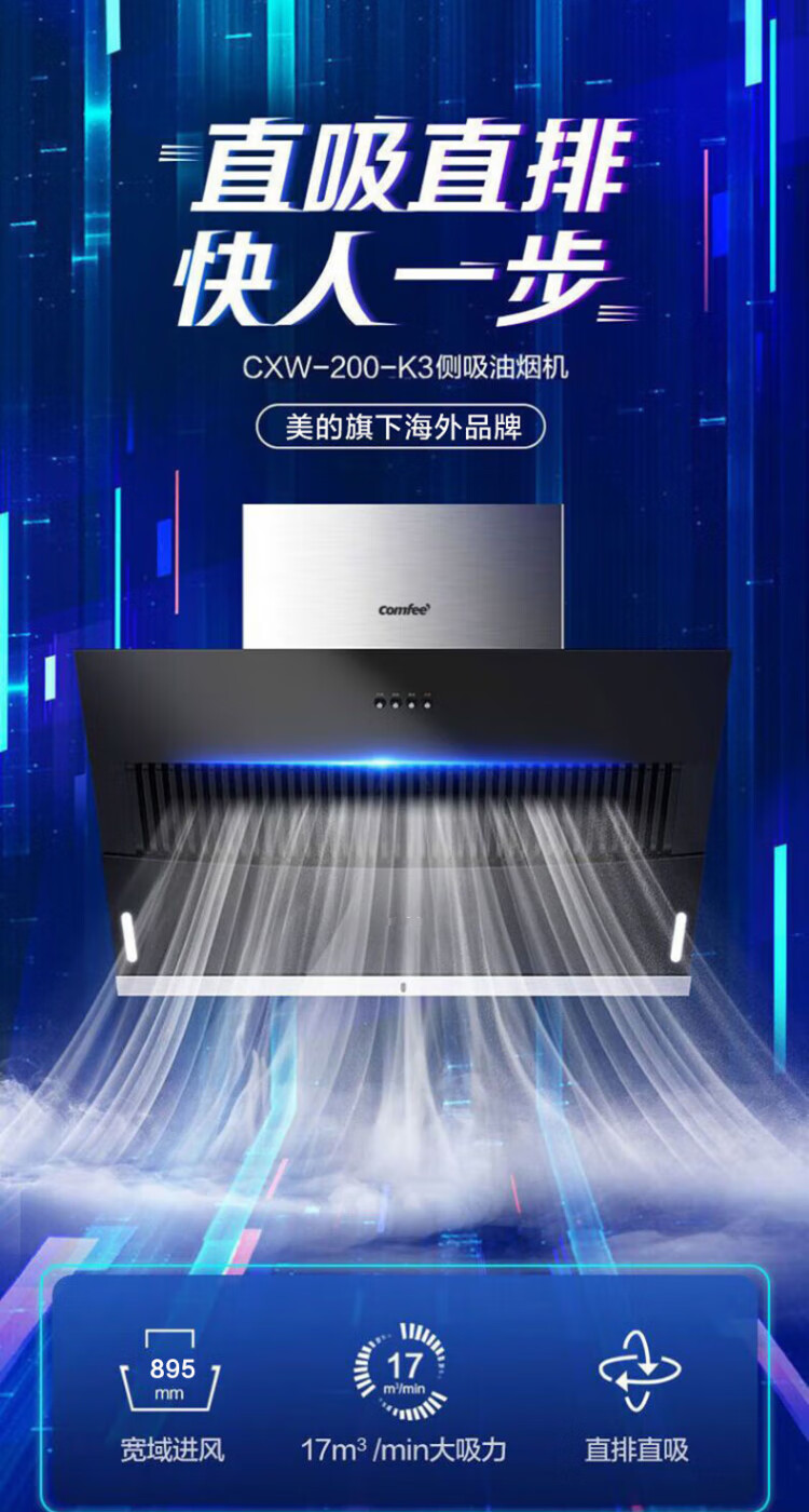 美的(Midea)出品comfee抽油烟机家用侧吸式大吸力双重负压拢烟900mm出租屋厨房吸油烟机17立方立体环吸K3