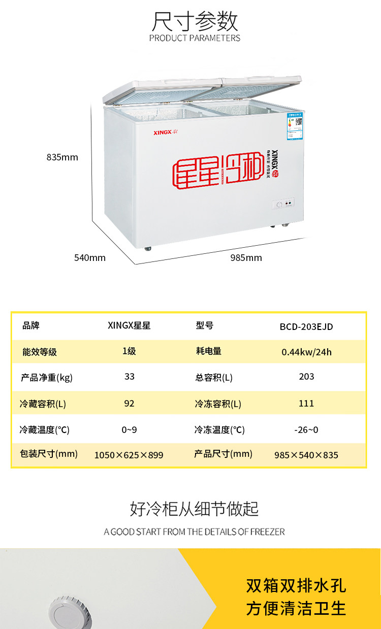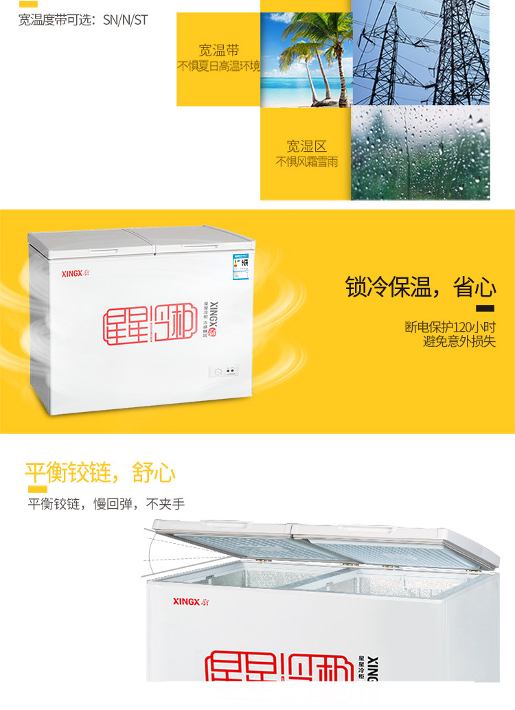 星星(XINGX) BCD-203EJD家用商用冰柜双温冷柜左冷冻右冷藏大容量