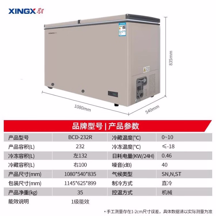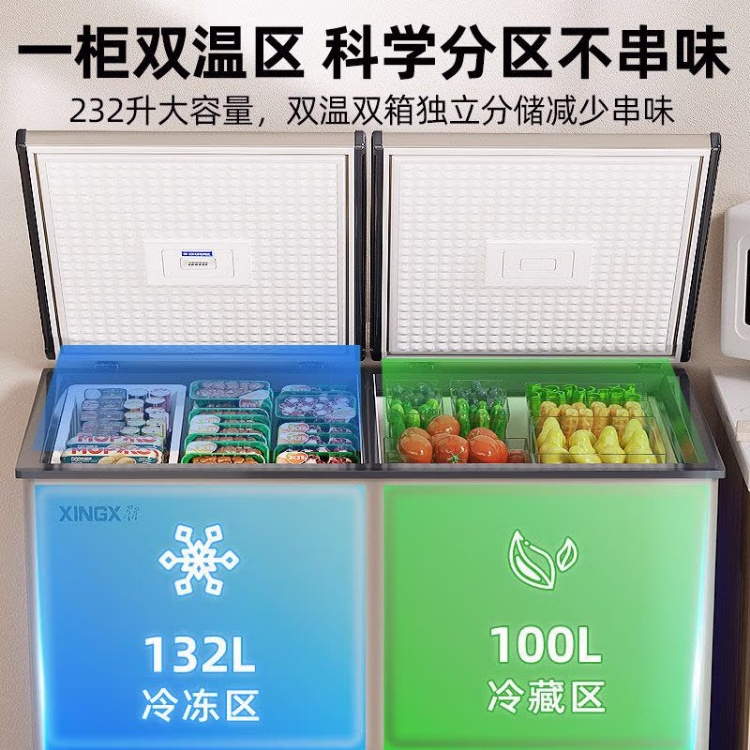 星星XINGX232 升双温双箱冷柜家用商用冷冻冷藏顶开双门BCD-232R