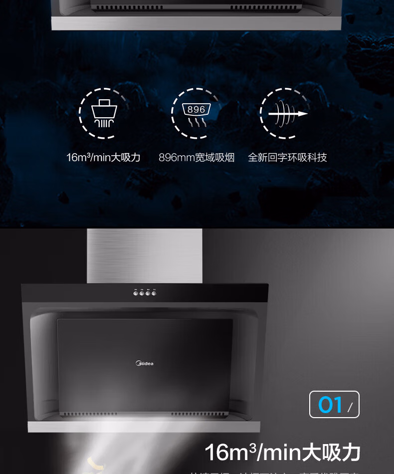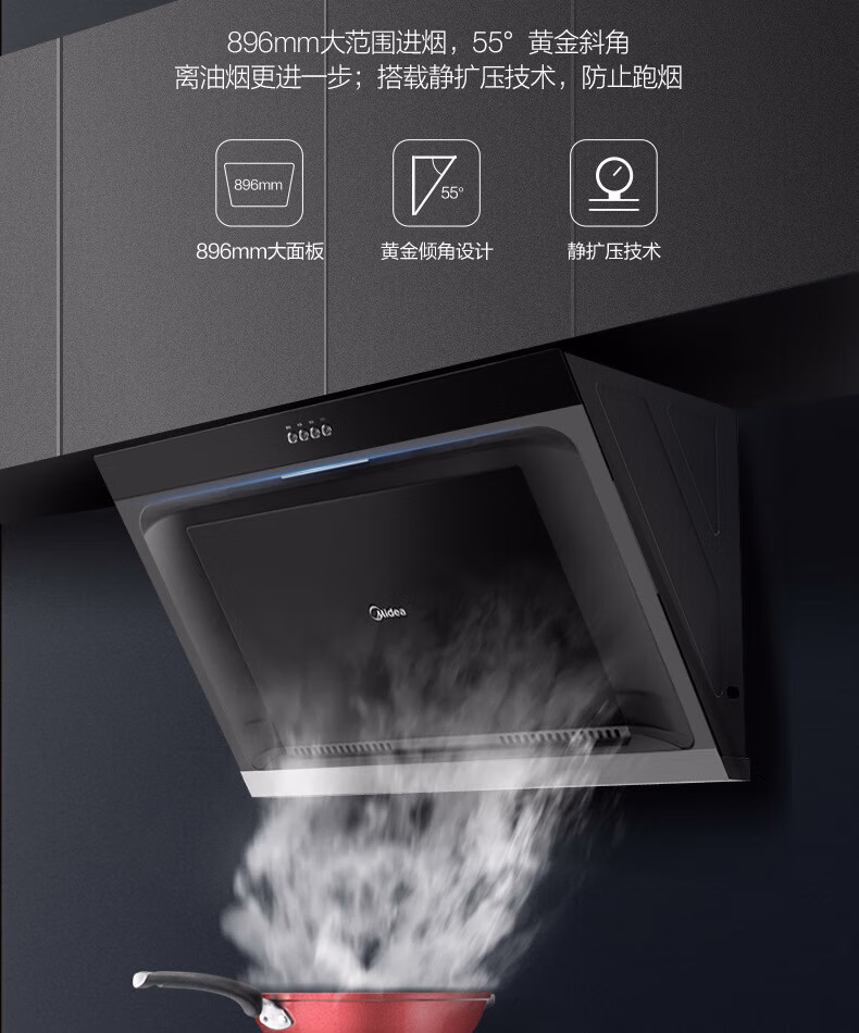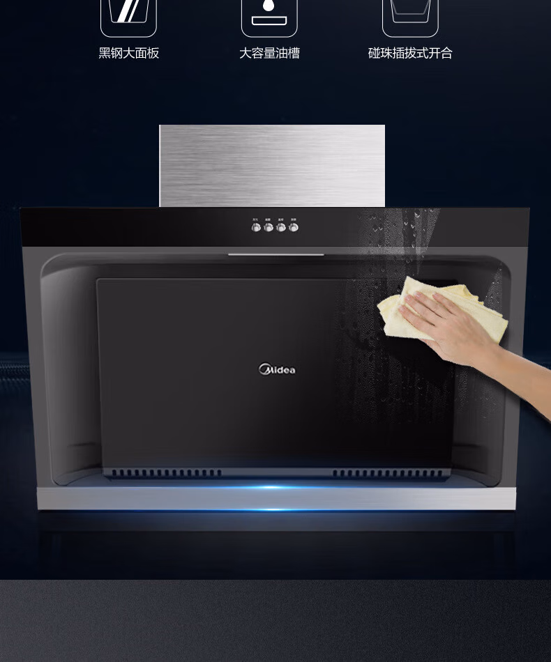 美的JMY1美的油烟机侧吸型按键冷轧板喷涂玻璃大吸力CXW-200-JMY1 美的JMY1全新正品