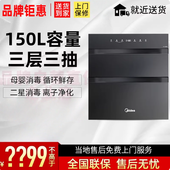 美的消毒柜嵌入式150L大容量烘干一体新款家用婴儿碗柜碗筷150B05