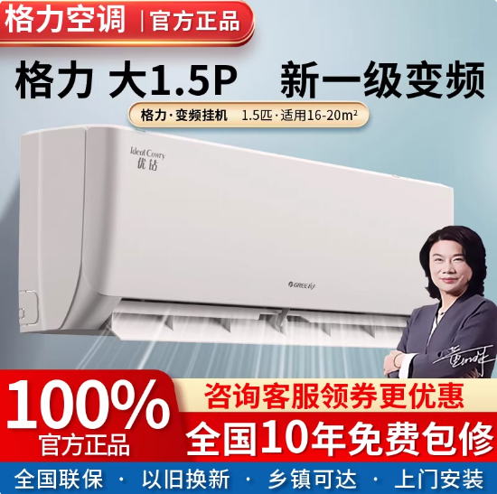 格力空调优钻挂机1.5匹新一级能效冷暖变频卧室家用两用节能省电